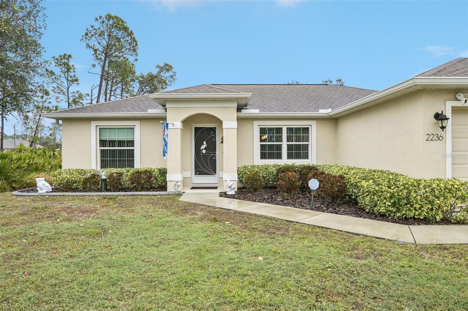 Preferred lender is offering up to $1,200. in closing cost assistance. Built just 6 years ago, this stunning home was designed with excellence in mind. The builder spared no expense, ensuring that every feature was included without the need for costly upgrades. Better yet, the current owners have added even more enhancements, making it better than new! Key Features Added by the Owners Include: Energy Efficient Solar Panels – Reduce your energy costs with an environmentally-friendly solar system. Whole House Reverse Osmosis System – Enjoy pure, clean water throughout the entire home. Fenced Yard – Perfect for privacy Beautiful Landscaping – Customized curbing and stunning curb appeal make this home a standout. Discover your dream home in this stunning 3-bedroom, 2-bathroom, spacious open split floor plan enhanced by vaulted ceilings. This gem is a Gulf Star Home with even more features added by the owners and shows like new. Featuring a state-of-the-art 7.2 KW solar panel array with a 20 KW battery backup, this home ensures you're prepared for any power outage, functioning like a built-in whole-house generator. Enjoy peace of mind with a whole house reverse osmosis system, A Ring alarm system which provides an extra layer of security for your home. It includes features like motion detectors, door/window sensors, and integration with Ring cameras for monitoring. The home boasts PGT impact, insulated low-E windows, complete with window treatments for added convenience. The chef's kitchen features full overlay cabinets, stainless steel appliances, and elegant granite countertops. Beautiful porcelain tile flooring flows throughout, creating a seamless and modern look. Set on a 1/4 acre lot, this property offers a 3-zone irrigation system, gutters and downspouts, and lush landscaping with decorative curbing. Relax in the fenced yard with a screened lanai and a 19x10 uncovered paver patio—perfect for entertaining! Centrally located in North Port's Most Sought-After Neighborhood with easy access to I-75 and US 41, this home is close to shopping, restaurants, golf courses, Cool Today Park, Charlotte Sports Park, beaches, and medical facilities—all in a non-flood zone (Zone X). This beautifully maintained home shows like new and is situated in a quiet neighborhood. The assigned schools, Toledo Blade Elementary School is recognized as a PBIS Platinum Level Model School, Golden School, a Five Star School, and the Sarasota South County Gifted C Luster Site (SOAR Program) and High standardized testing scores. Woodland Middle School has above average standardized testing scores and North Port High School has above average testing scores. This home was carefully designed with high-quality builds and thoughtful upgrades aimed at lowering both insurance premiums and utility costs. The inclusion of solar power ensures nearly free energy, making it an efficient and cost-effective choice for homeowners. Don’t miss your chance to make it yours! Sellers will negotiate and are motivated.