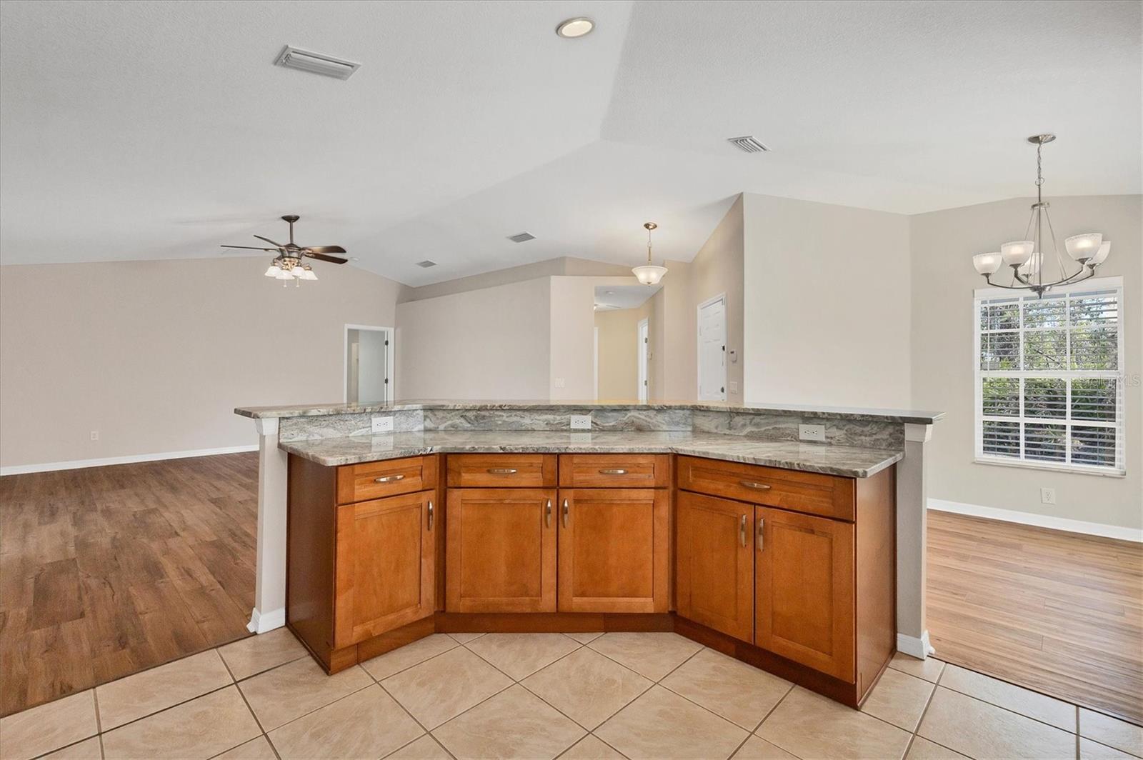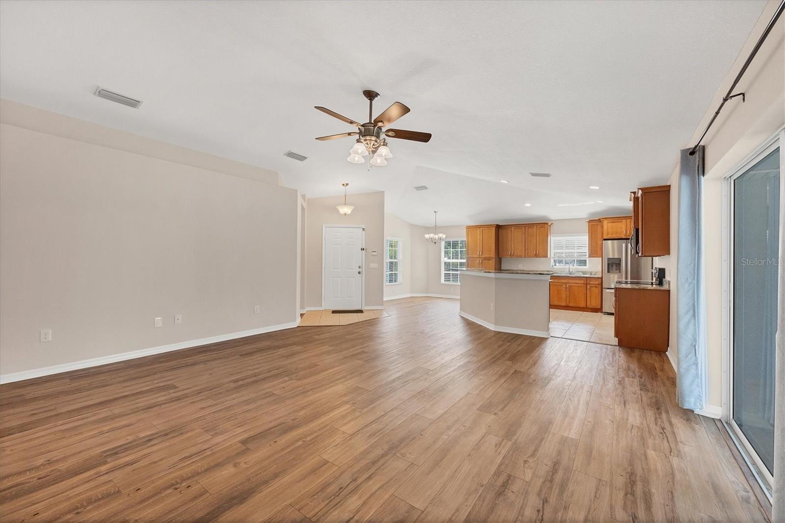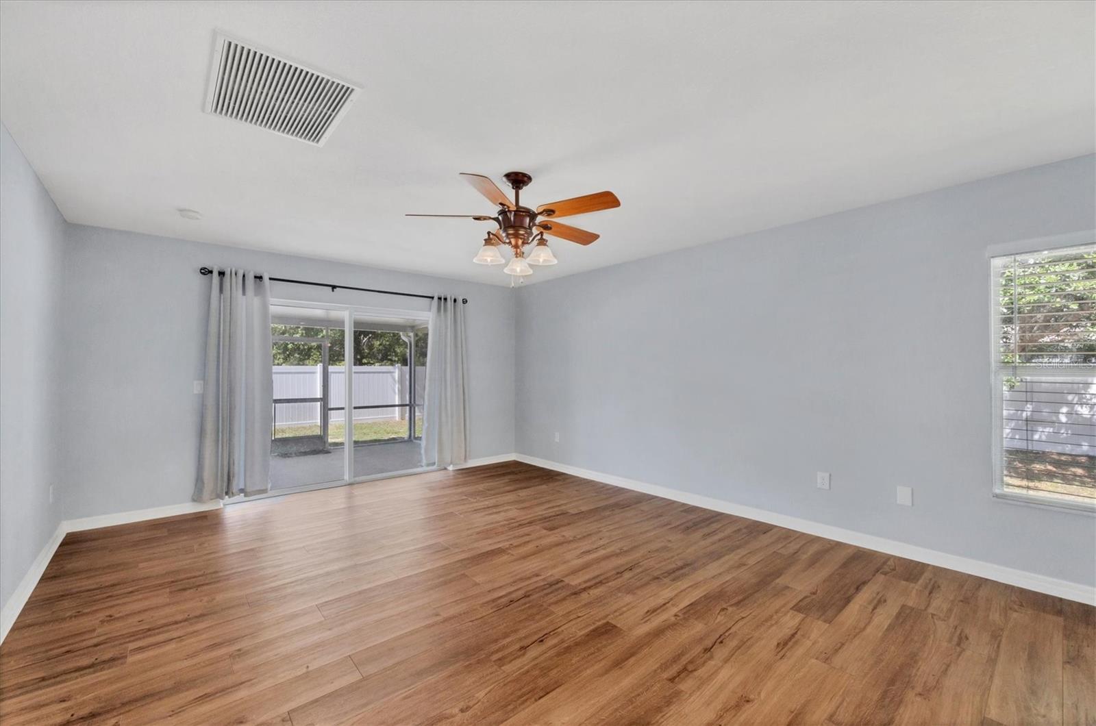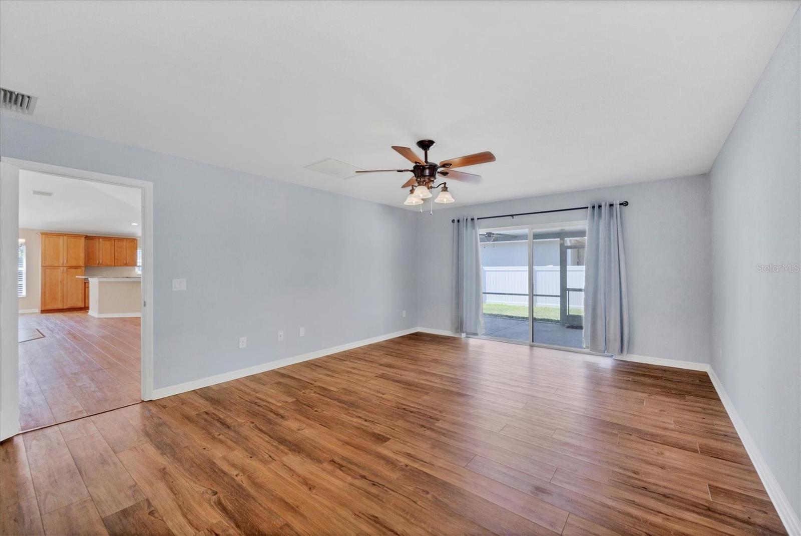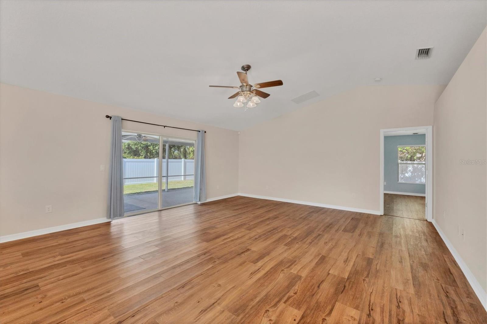 Welcome to this beautifully maintained 3-bedroom, 2-bath home tucked away in a quiet North Port neighborhood—offering privacy, comfort, and convenience. This thoughtfully designed split-bedroom floor plan provides both space and seclusion, ideal for families or those who love to host guests. Step inside and enjoy solid core laminate flooring throughout, combining style and durability for easy maintenance. The open-concept great room is the heart of the home, perfect for gatherings, movie nights, or relaxed evenings in. The recently remodeled kitchen seamlessly flows into the great room, allowing you to stay connected while entertaining. Featuring ample cabinetry, generous counter space, and a versatile island—this kitchen is a chef’s dream for meal prepping and everyday use. Retreat to the spacious primary suite with a large walk-in closet, an additional built-in closet, and a private ensuite bath complete with dual sinks and a separate jetted tub for ultimate relaxation. Enjoy your morning coffee or unwind after a long day in the oversized, newer lanai overlooking the privately fenced backyard. Listen to the birds sing and savor Florida's natural beauty in your own serene outdoor oasis. A backyard shed adds extra storage for lawn tools, beach gear, or hobby items. Located just minutes from shopping, dining, parks, and all the amenities that North Port boasts. Plus, you're just a short drive from Southwest Florida’s world-renowned beaches. Don’t miss this move-in ready gem—schedule your private showing today and make this lovely house your new home!