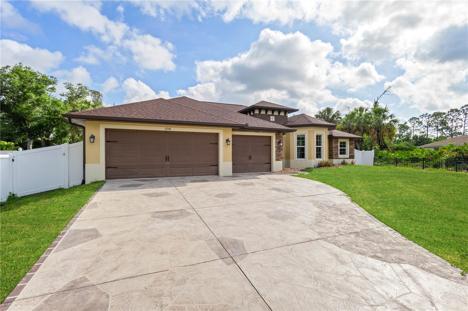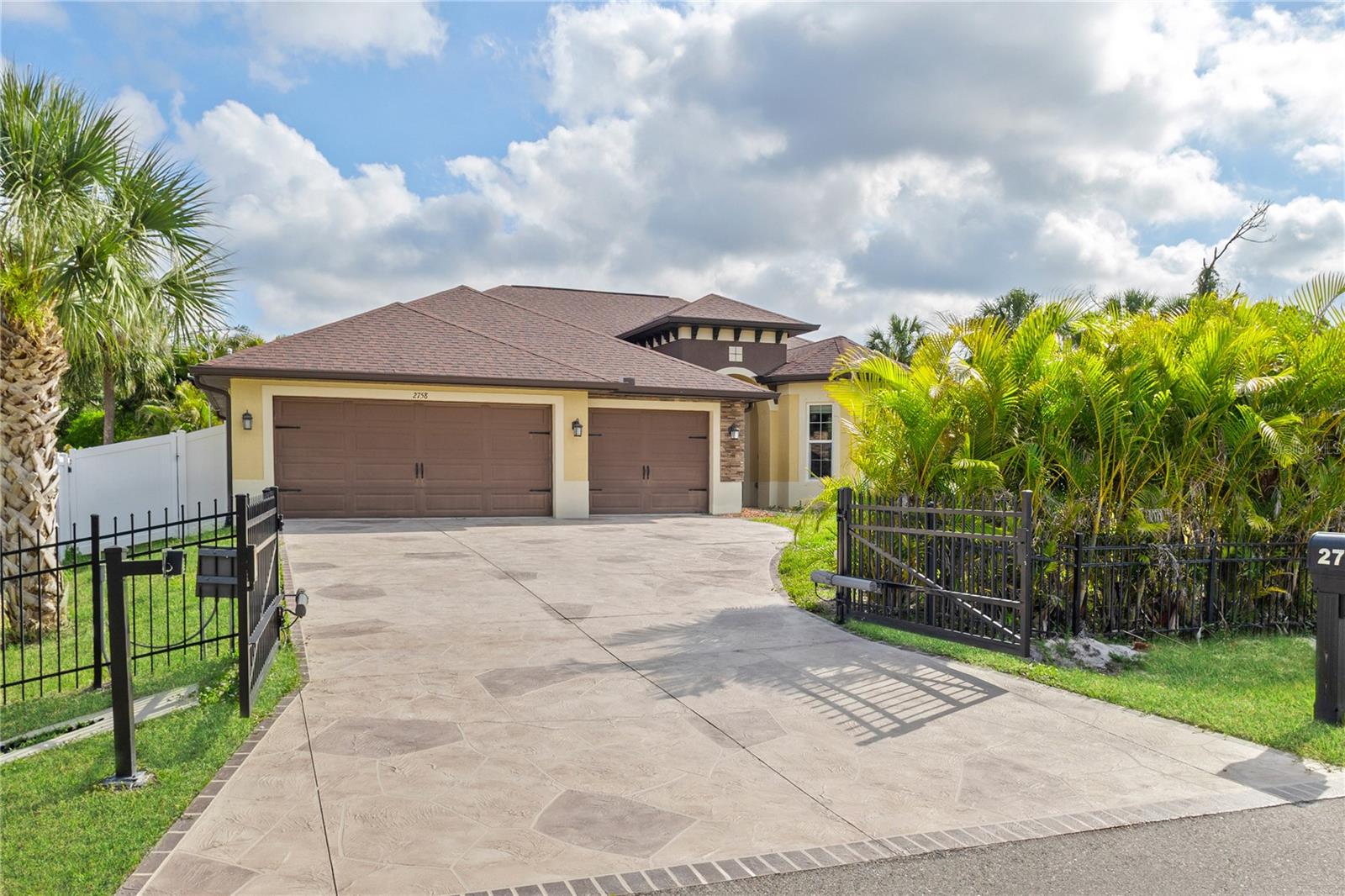 Welcome to your new sanctuary! This beautifully maintained 3-bedroom, 2-bath home offers comfort, privacy, and functionality in one perfect package. From the moment you arrive, the private driveway gate and fully fenced yard set the tone for peace of mind and seclusion. Inside, enjoy a spacious open floor plan designed for modern living, complete with a bright and airy living area, a well-appointed kitchen, a den, and a cozy dining space—perfect for everyday living and entertaining guests. The primary suite features a privacy door with bath and 2 generous closet spaces, while two additional bedrooms offer flexibility for family, guests, or a home office. A rare find, the 3-car AIR CONDITIONED garage provides ample storage and parking, ideal for hobbyists, vehicles, or extra belongings. Whether you're relaxing indoors or enjoying the outdoor space, this home offers the perfect blend of comfort, style, and practicality. Don’t miss your chance to own this move-in ready gem—schedule your showing today!