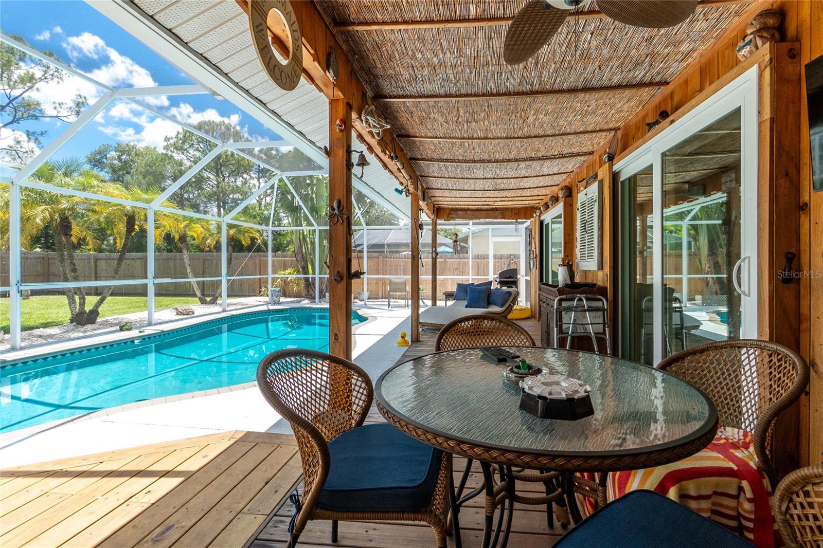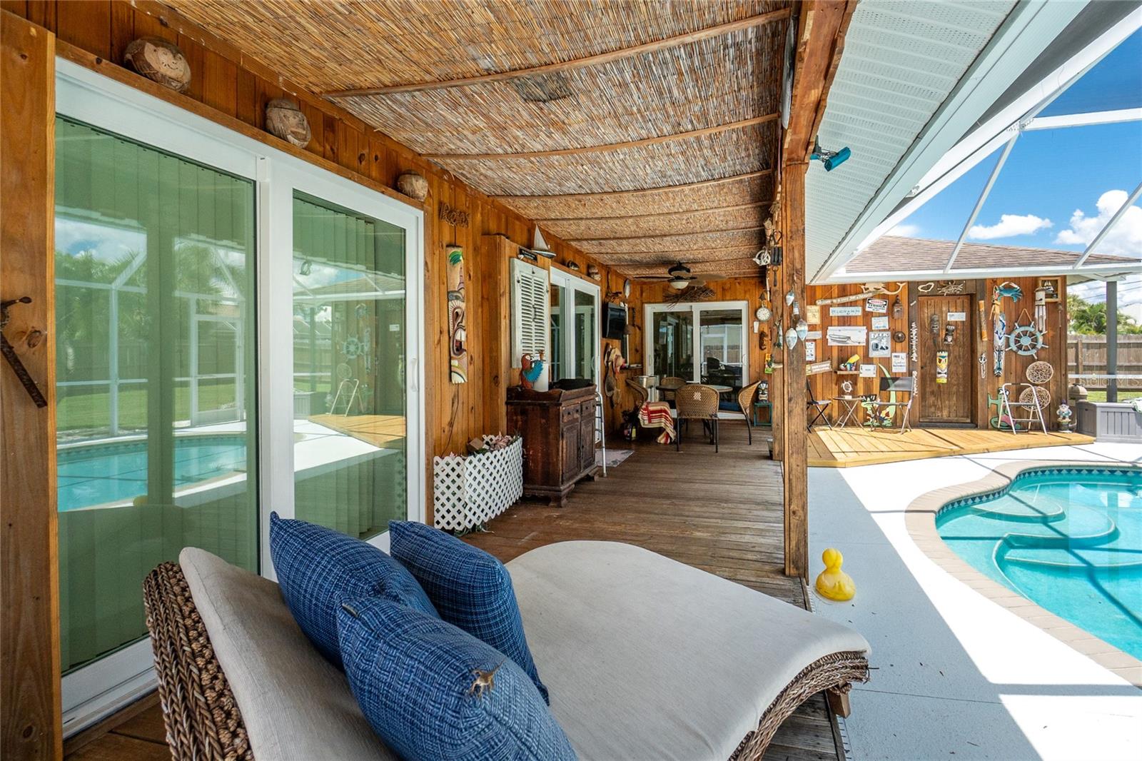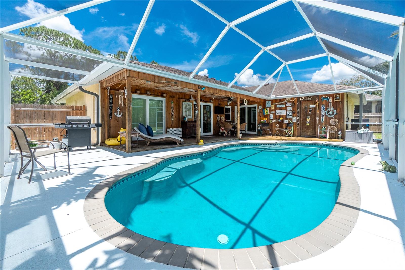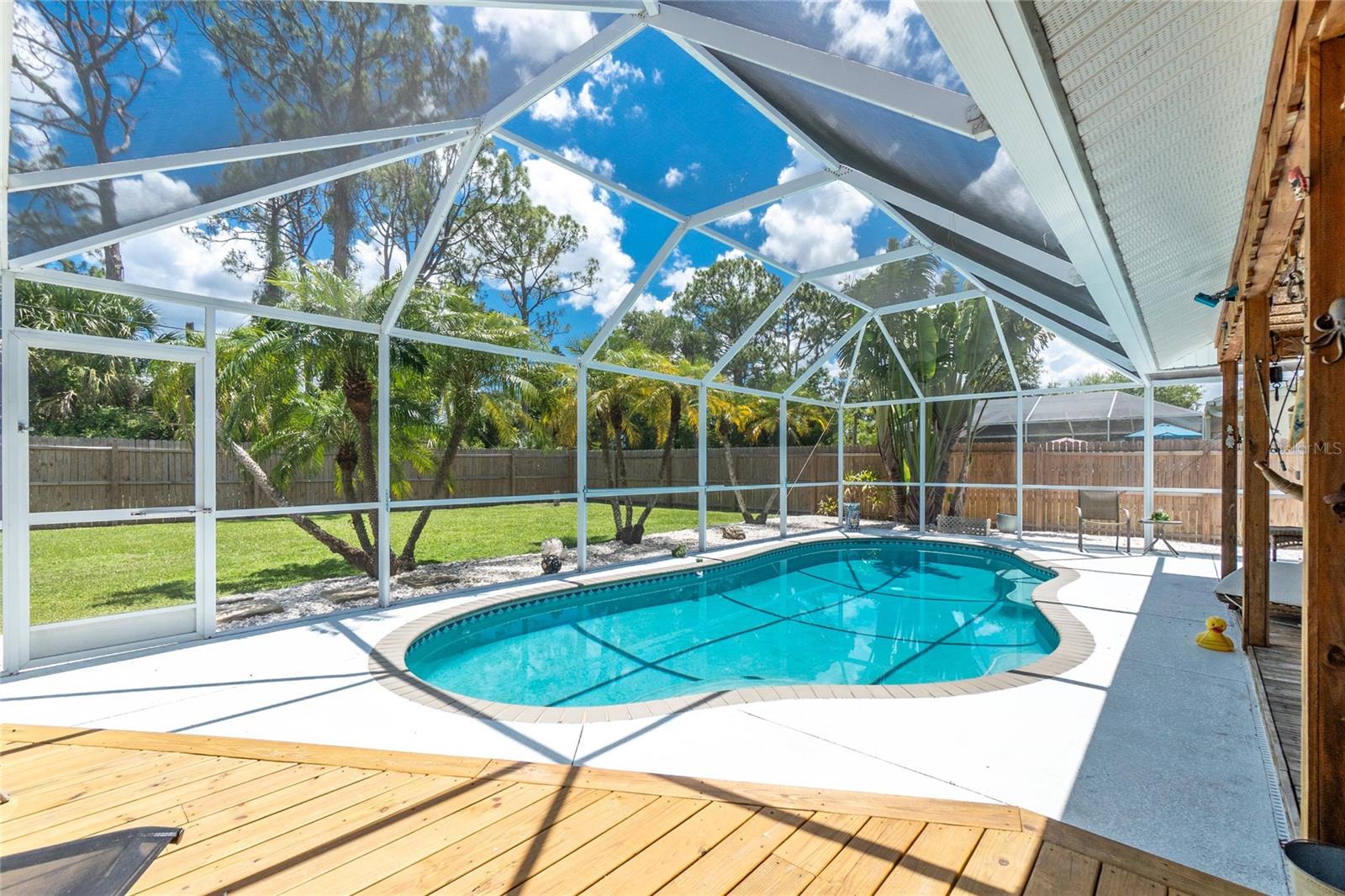 Exceptional 3-Bedroom Pool Home in the Heart of North Port, Florida. Welcome to this beautifully maintained 3-bedroom, 2-bathroom, 2-car garage pool home, ideally situated with easy access to nearby shopping, restaurants and I-75. The spacious open floor plan is designed for both comfortable living and entertaining. Step inside to discover hurricane impact windows and doors, split-bedroom layout, and expansive living and family rooms that provide versatile space for relaxation or hosting guests. The well-appointed kitchen is a chef’s dream, featuring ample counter space, stainless steel appliances, and a pass-through window overlooking the inviting pool deck. The primary suite offers a private retreat with a generous walk-in closet and en suite bathroom complete with a walk-in shower. The second and third bedrooms, located off the family room, have easy access to the pool area and share a full guest bathroom, which also serves as a convenient pool bath. Enjoy Florida’s outdoor lifestyle in your private backyard oasis! The heated pool is surrounded by Tiki-style décor, a fenced yard, and plenty of space for gatherings and fun in the sun. Whether hosting a party or unwinding after a long day, this backyard is perfect for it all. Additional highlights: Hurricane impact windows and doors for year-round peace of mind; New POOL Heater 2024 New POOL PUMP September 2025 No flood insurance required (not located in a flood zone); Seller is offering a 1-year Home Warranty. Furniture negotiable under separate agreement Don't miss the opportunity to own this incredible home! Schedule your private showing today and discover the best of North Port living.