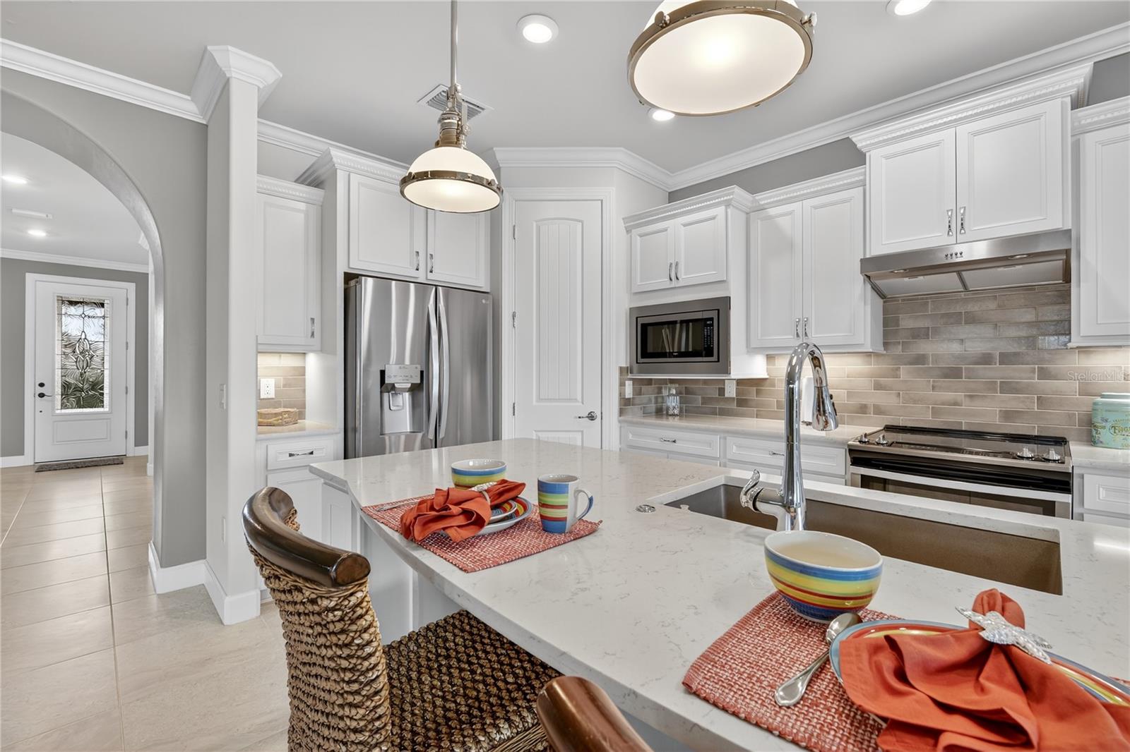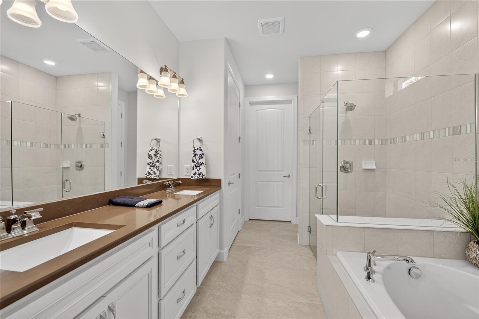 Welcome to 1745 Hyssop Loop, located in the desirable Del Webb Cypress Falls at The Woodlands, a 55+ active adult gated community offering resort-style amenities and a vibrant, social lifestyle. This spacious 1,997 SQFT Summerwood model features 3 bedrooms, 2 bathrooms, and a large den, all with attractive curb appeal. Inside, you'll find an inviting foyer, a guest bedroom with access to a full bath that includes an executive-height vanity, quartz countertops, and upgraded tub-to-ceiling tile. A versatile den provides the perfect space for a home office or additional guest room. The open-concept living area is ideal for entertaining, with a beautifully appointed kitchen offering a large extended island, 42" upgraded bright cabinetry, a premium appliance package, and quartz countertops. The full-size laundry room includes ample shelving for storage. Step outside to a covered lanai overlooking a peaceful lake — perfect for relaxing or hosting gatherings. The spacious primary suite also enjoys lake views and features a luxurious en-suite bathroom with dual sinks, a frameless glass shower, a soaking tub with floor-to-ceiling upgraded tile, quartz counters, and a large walk-in closet. The extended 2-car garage offers a 4' extension, high ceilings, a utility sink, pull-down screen, epoxy floors, and plenty of room for storage. As a resident of Cypress Falls, you’ll enjoy access to a clubhouse, resort-style pools, a fitness center, tennis and pickleball courts, bocce ball, horseshoes, and a full calendar of social events coordinated by a full-time activities director. This is low-maintenance, active community at its finest — come see what makes this home and community truly exceptional!