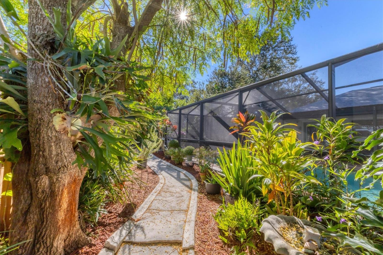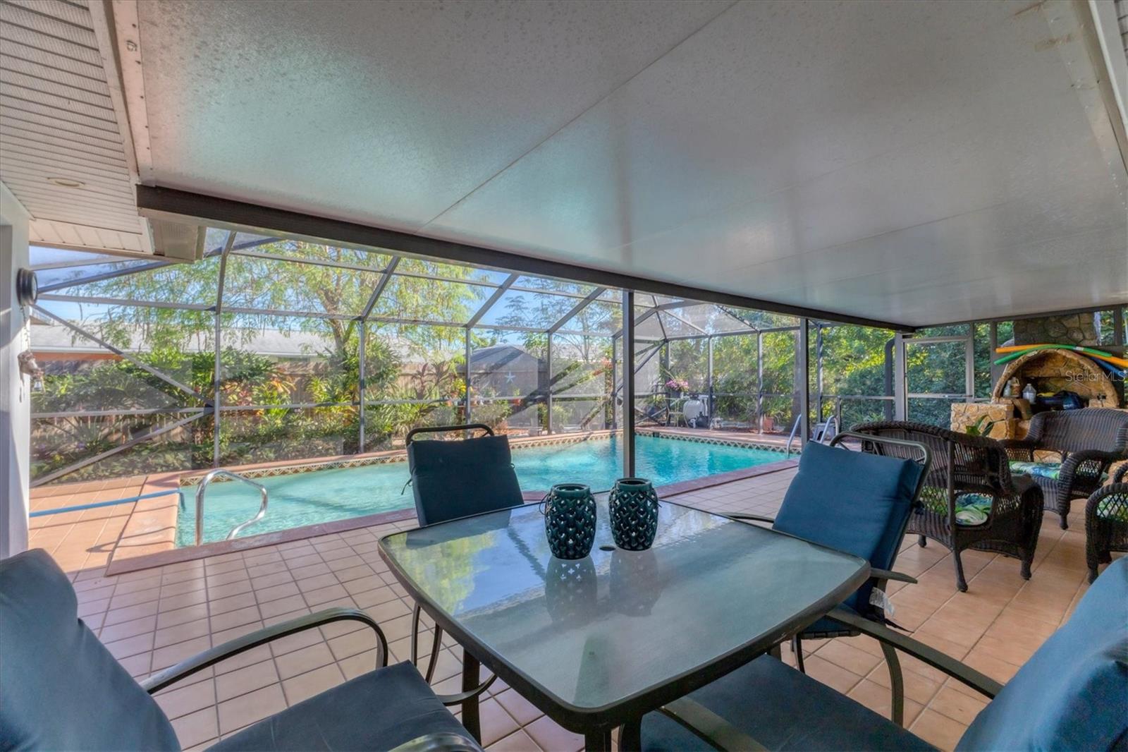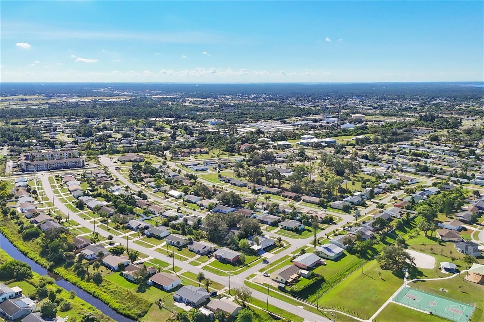 Tucked into an established North Port neighborhood, this spacious 3-bedroom, 2-bath pool home sits proudly on a beautifully landscaped corner lot where mature greenery creates a sense of privacy and calm the moment you arrive. With no HOA, no flood zone, and public water and sewer, this is Florida living without the fine print. Step inside to a bright, welcoming layout anchored by a well-appointed kitchen, overlooking the pool area, and featuring a generous closet pantry. The primary suite feels like a true retreat, offering direct access to the lanai and a walk-in tiled shower designed for comfort and ease. Out back is where this home truly shines. The large screened pool lanai is a peaceful escape, ideal for morning coffee, evening swims, or relaxed gatherings with friends. Lush landscaping frames the space, creating a tranquil, private atmosphere that feels worlds away from the day’s noise. A new pool pump keeps everything running smoothly, so you can focus on enjoying the moment. Recent upgrades add confidence and value, including A/C systems replaced in 2020 and 2021, a 2023 roof, and updated electrical. The former garage has been thoughtfully converted into a versatile den, perfect for a home office, media room, or hobby space, with additional storage tucked neatly behind the original garage door. A 2-car carport provides ample covered parking. Convenience is right outside your door with public transportation nearby, a community park close by, and Warm Mineral Springs just minutes away. You are also near shopping, dining, top-rated schools, CoolToday Park, Wellen Park, beaches, Port Charlotte Mall, and major routes including I-75 and U.S. 41. Peaceful, practical, and perfectly positioned, this home offers the space, upgrades, and outdoor serenity that make everyday life feel like a getaway.