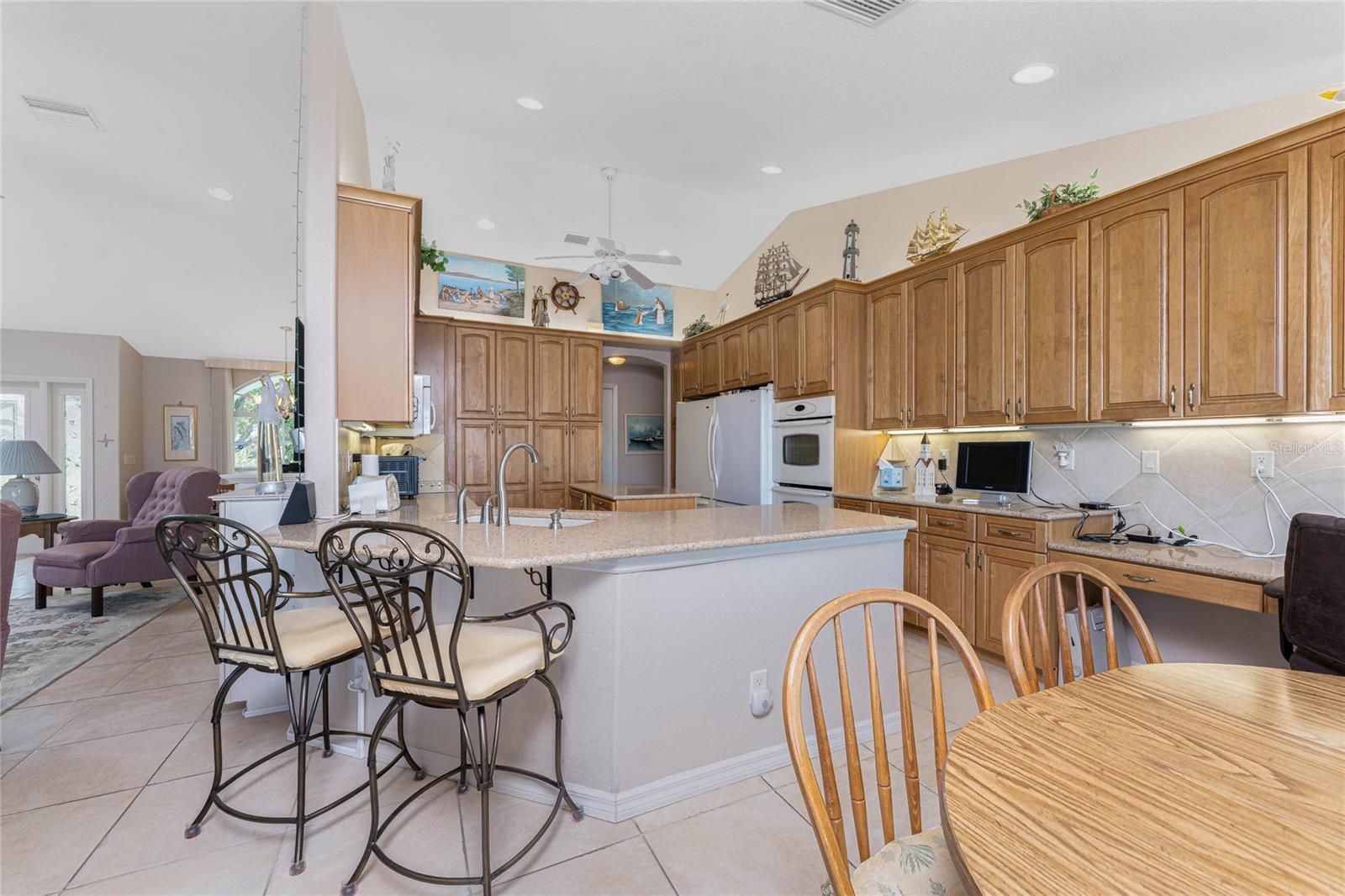 Welcome to Lakefront Living! Discover this charming and picturesque lakefront home nestled in the heart of North Port, Florida. From the moment you arrive, you’ll be captivated by the serene beauty of the property, featuring mature oak trees and stunning waterfront views. This spacious 3-bedroom, 2-bath home sits on over a third of an acre, offering ample space both inside and out. Centrally located with quick access to I-75 and just minutes from golf courses, shopping, dining, and everyday conveniences — this home combines tranquility with convenience. Step inside and be wowed by the breathtaking lake views visible from most rooms in the house. Designed with comfort and quality in mind, this home features wheelchair accessibility, a large kitchen with custom Amish-built solid wood cabinets, double pantry, double refrigerators/freezers and double ovens, a 6-sided concrete safe room and hurricane-impact windows and sliding glass doors for peace of mind and durability. See the attached Features Sheet for more details. Whether you're enjoying quiet mornings by the water or entertaining guests in your spacious living areas, this well-built home offers the perfect blend of beauty, function, and Florida lifestyle.