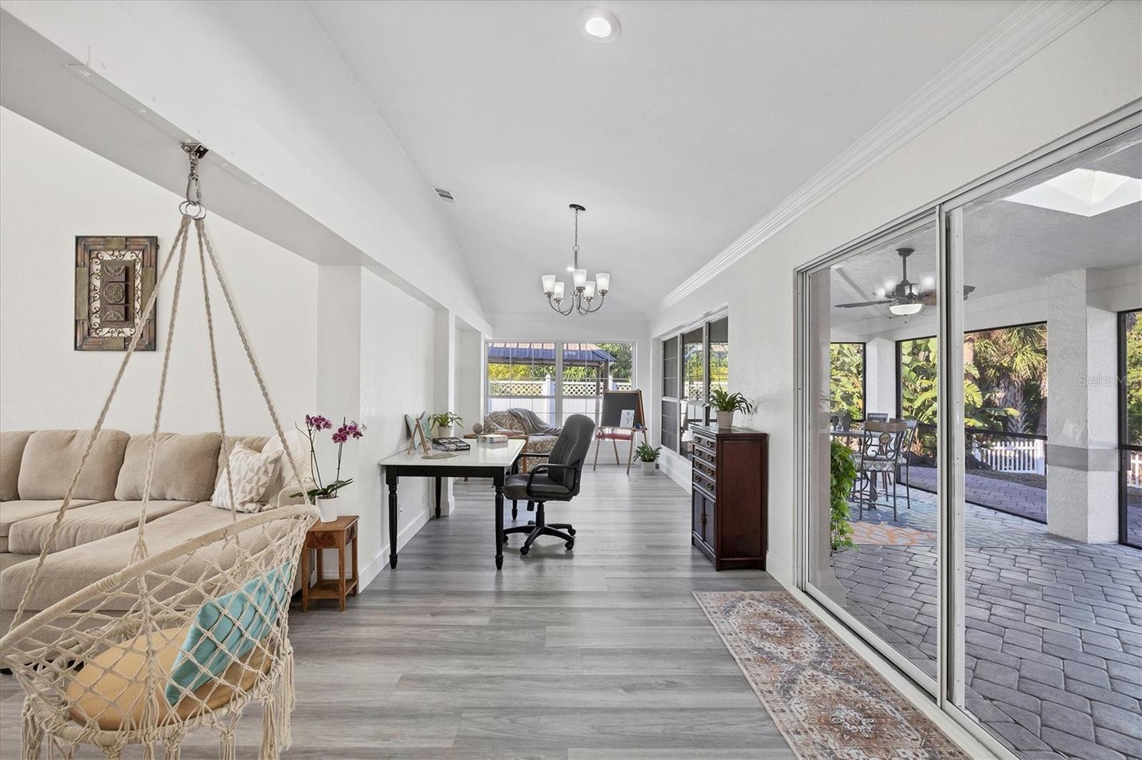 Live Your Best Florida Waterfront Life—with no HOA and a worry-free new metal roof! This beautifully updated, move-in-ready home blends modern comfort with the laid-back charm of coastal living—just 30 minutes from Gulf beaches and minutes from top restaurants, shopping, arts, entertainment, farmers markets, and medical facilities. Inside, you’ll enjoy a surprisingly spacious layout, featuring an extra family room that provides plenty of room to relax, entertain, or spread out. A versatile front flex room adds even more possibilities, use it as an additional bedroom, study, office, hobby room, or whatever fits your lifestyle. The kitchen offers both style and function with granite countertops, a breakfast bar, and newer appliances that make everyday living effortless. The insulated garage with mini-split A/C adds year-round comfort and convenience. Step outside to your expansive almost 700 sq. ft. screened lanai, private dock, and tranquil Koi pond—perfect for morning coffee or entertaining guests. The property also includes RV parking with water and electric hook-ups, PVC fencing, and a generous 0.28-acre lot with 120 ft. of canal frontage. Experience the best of the Florida lifestyle—sun, space, water, and serenity—with no HOA restrictions and just minutes from everything you need!