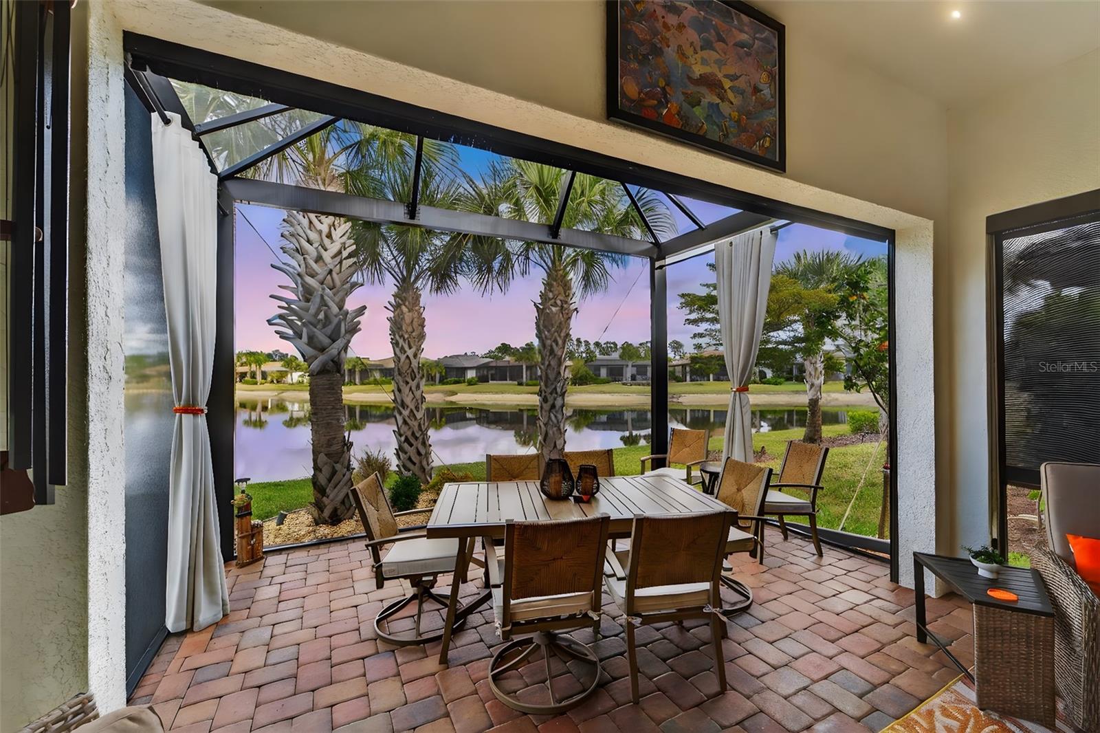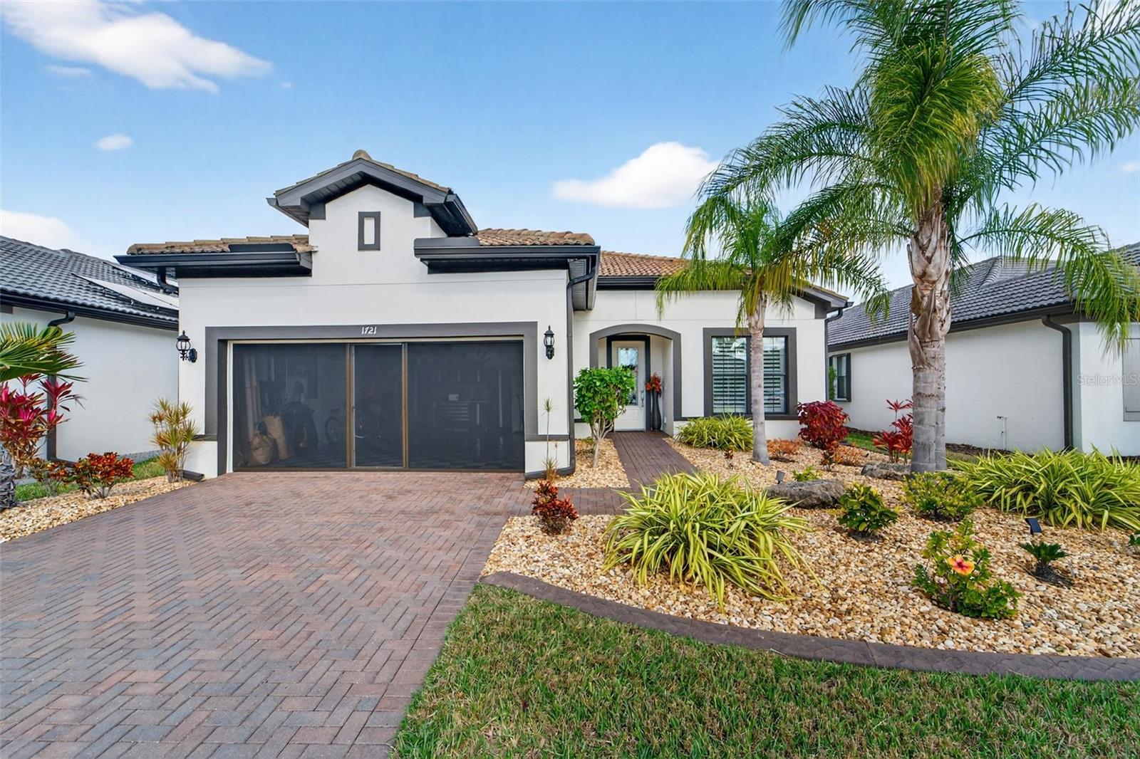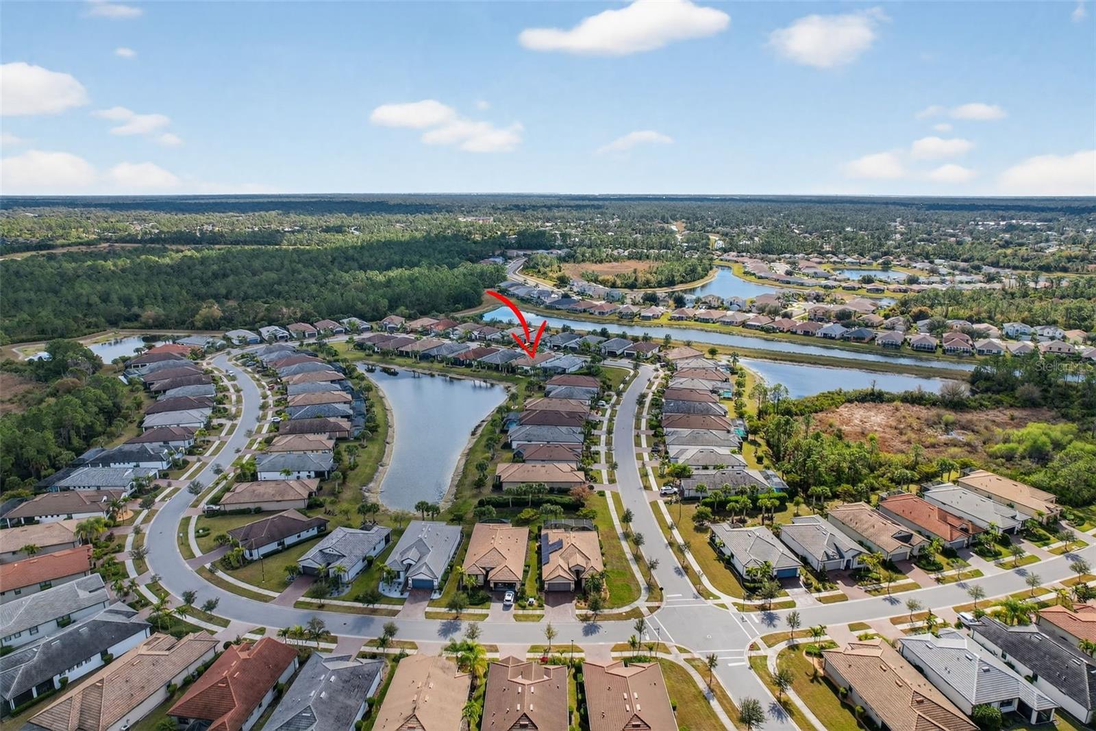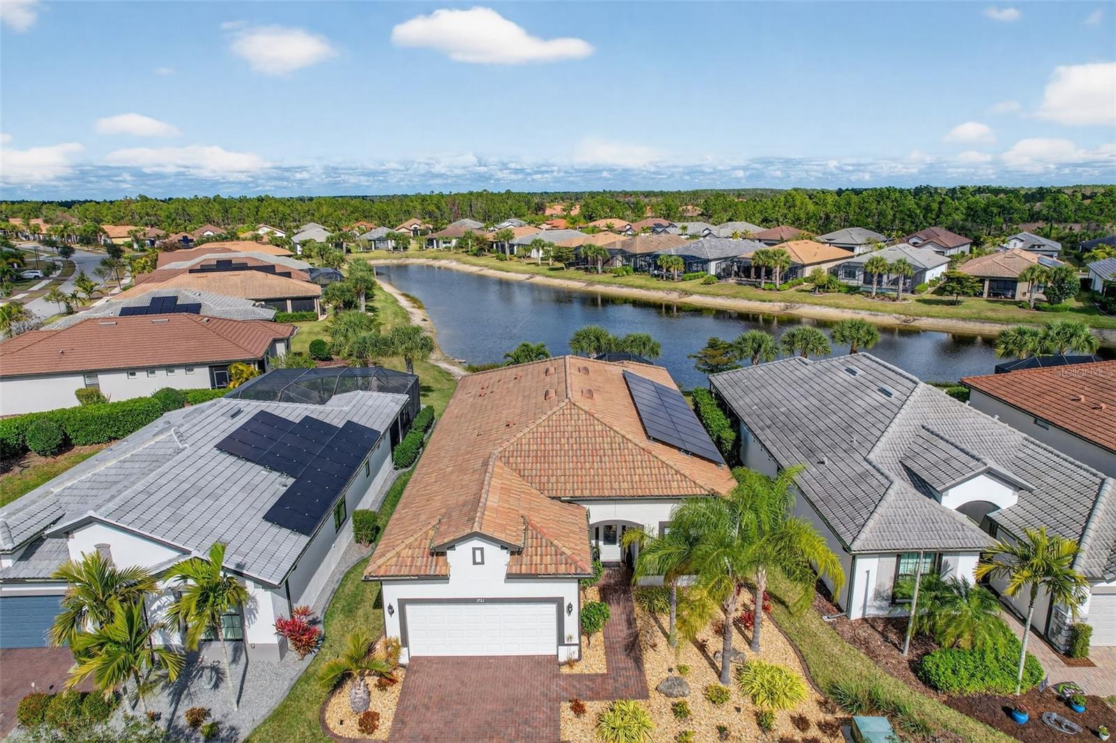 Luxury Living in Cypress Falls at The Woodlands Prepare to be dazzled. From the moment you arrive, the meticulous attention to detail is evident. Expertly manicured landscaping and custom curbing surround the entire property, leading you to a stunning etched-glass custom entry door. A Masterpiece of Design & Light Inside, the foyer opens to a massive, light-filled living space with 10'+ ceilings. The Great Room is anchored by a striking custom coffer ceiling and enhanced by designer custom lighting that sets the tone throughout. Gourmet Kitchen: A chef’s dream featuring sleek quartz countertops, 42" soft-close cabinetry, a custom backsplash, and premium built-in appliances. Butler’s Pantry: This space is second-to-none, featuring matching quartz counters and floor-to-ceiling custom-built cabinetry. Flex Room: A large, versatile room with private doors—ideal for a high-end home office or library. Elegant Accommodations Primary Suite: A secluded retreat featuring a custom-built walk-in closet and a luxury en-suite complete with tall upgraded cabinetry and elegant granite countertops. Guest Wing: Two generous bedrooms served by a stylish bath featuring upgraded tile, tall vanities, and premium granite counters to ensure a five-star experience for your guests. Your Private Oasis Transition seamlessly to outdoor living on the massive extended lanai. The View: Enjoy your morning coffee overlooking the peaceful, serene pond. Premium Protection: Features a 4' undercover extension, an additional sun deck, and electric hurricane shutters for effortless security and peace of mind. The Cypress Falls Lifestyle Beyond the home, discover a vibrant, gated neighborhood designed for an active and social lifestyle: Premier Healthcare: Ideally located near the new Sarasota Memorial Hospital North Port campus, currently under construction, bringing state-of-the-art medical facilities to your doorstep. Social Hub: A full-time activities director, clubhouse, and state-of-the-art fitness center. Recreation: Resort-style pool, hot tub, pickleball, tennis, horseshoes, and bocce courts. Social Calendar: From book clubs to themed social nights, this is more than a home—it’s a community. Luxury Features Premium Finishes: The entire home is finished with premium paints and custom window treatments. Stone Surfaces: Quartz countertops in the kitchen and pantry; Granite in all bathrooms. Architectural Detail: 10'+ ceilings, custom coffer details, and designer lighting fixtures. Custom Storage: Custom-built cabinetry in the pantry and primary walk-in closet.