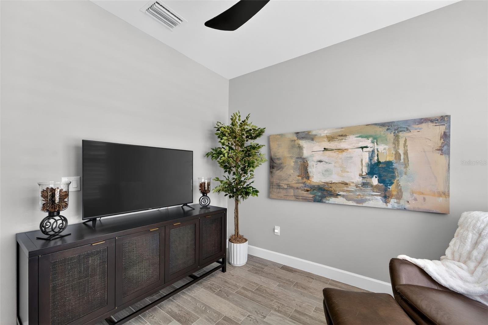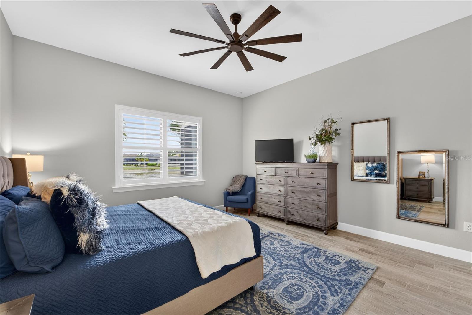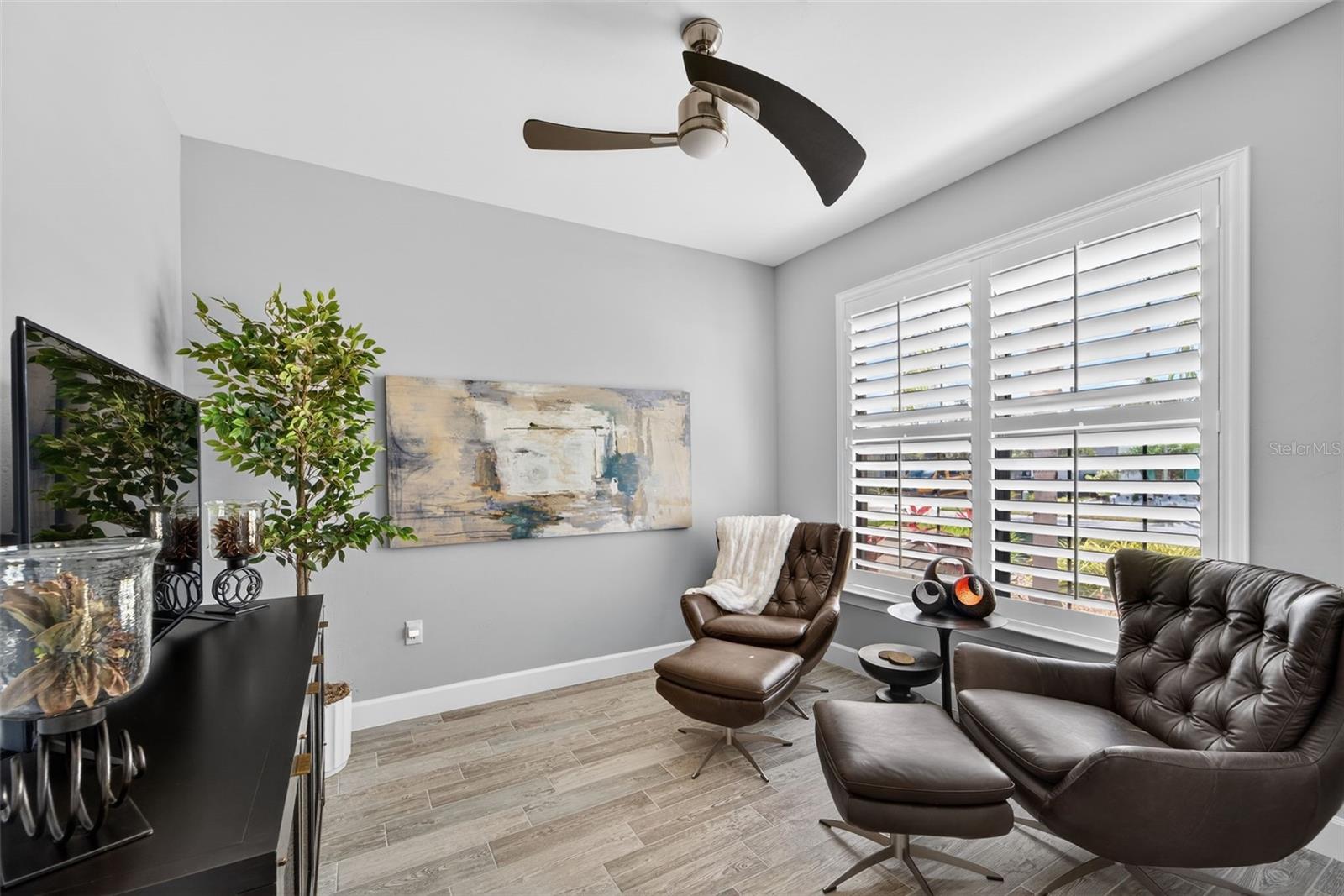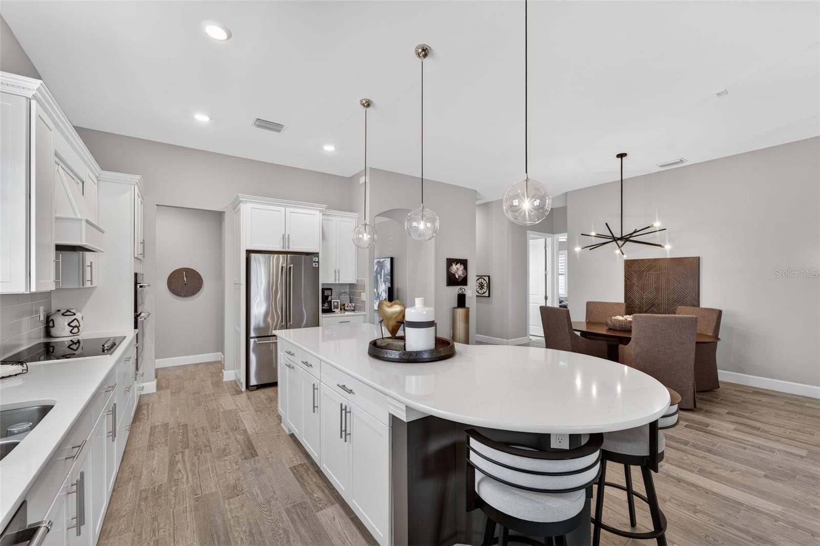 Luxury Living in Cypress Falls at The Woodlands Prepare to be dazzled. From the moment you arrive, the meticulous attention to detail is evident. Expertly manicured landscaping and custom curbing surround the entire property, leading you to a stunning etched-glass custom entry door. A Masterpiece of Design & Light Inside, the foyer opens to a massive, light-filled living space with 10'+ ceilings. The Great Room is anchored by a striking custom coffer ceiling and enhanced by designer custom lighting that sets the tone throughout. Gourmet Kitchen: A chef’s dream featuring sleek quartz countertops, 42" soft-close cabinetry, a custom backsplash, and premium built-in appliances. Butler’s Pantry: This space is second-to-none, featuring matching quartz counters and floor-to-ceiling custom-built cabinetry. Flex Room: A large, versatile room with private doors—ideal for a high-end home office or library. Elegant Accommodations Primary Suite: A secluded retreat featuring a custom-built walk-in closet and a luxury en-suite complete with tall upgraded cabinetry and elegant granite countertops. Guest Wing: Two generous bedrooms served by a stylish bath featuring upgraded tile, tall vanities, and premium granite counters to ensure a five-star experience for your guests. Your Private Oasis Transition seamlessly to outdoor living on the massive extended lanai. The View: Enjoy your morning coffee overlooking the peaceful, serene pond. Premium Protection: Features a 4' undercover extension, an additional sun deck, and electric hurricane shutters for effortless security and peace of mind. The Cypress Falls Lifestyle Beyond the home, discover a vibrant, gated neighborhood designed for an active and social lifestyle: Premier Healthcare: Ideally located near the new Sarasota Memorial Hospital North Port campus, currently under construction, bringing state-of-the-art medical facilities to your doorstep. Social Hub: A full-time activities director, clubhouse, and state-of-the-art fitness center. Recreation: Resort-style pool, hot tub, pickleball, tennis, horseshoes, and bocce courts. Social Calendar: From book clubs to themed social nights, this is more than a home—it’s a community. Luxury Features Premium Finishes: The entire home is finished with premium paints and custom window treatments. Stone Surfaces: Quartz countertops in the kitchen and pantry; Granite in all bathrooms. Architectural Detail: 10'+ ceilings, custom coffer details, and designer lighting fixtures. Custom Storage: Custom-built cabinetry in the pantry and primary walk-in closet.