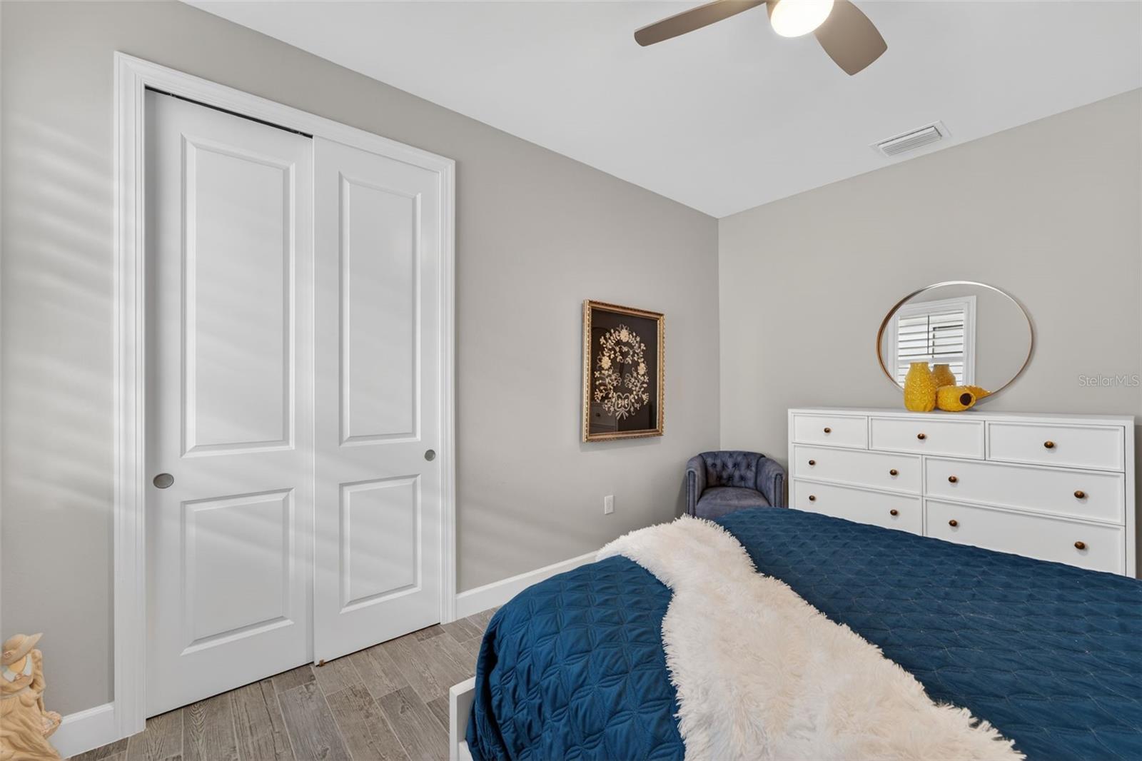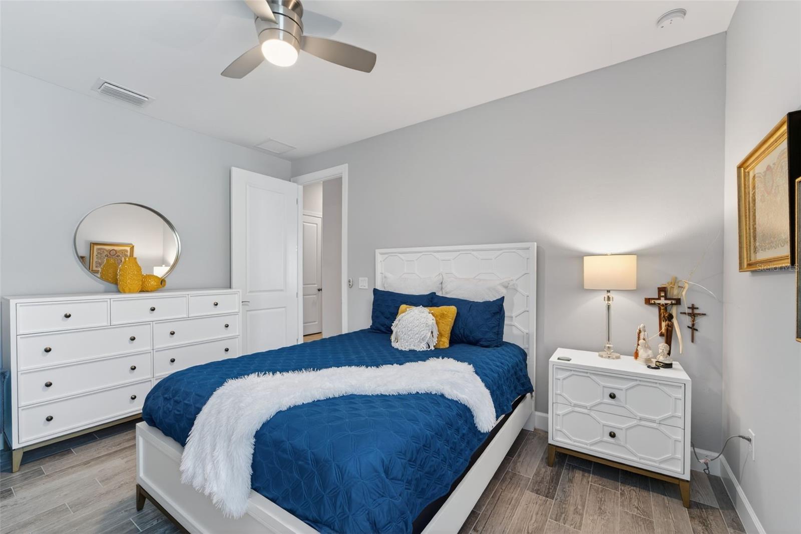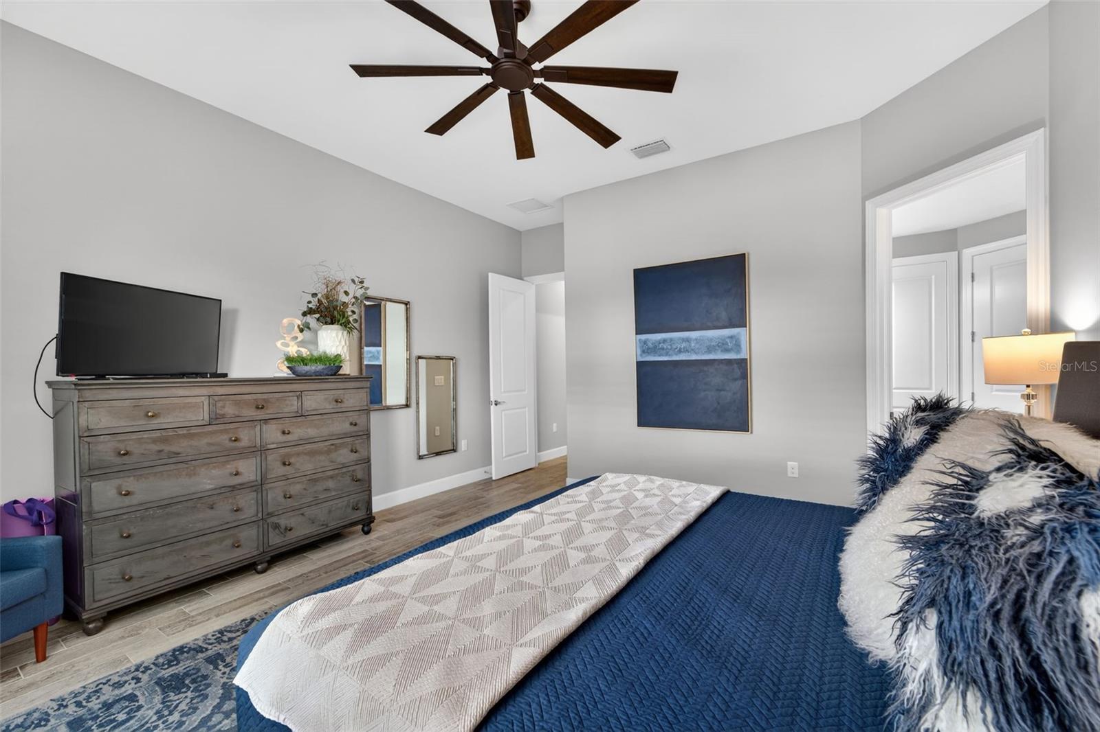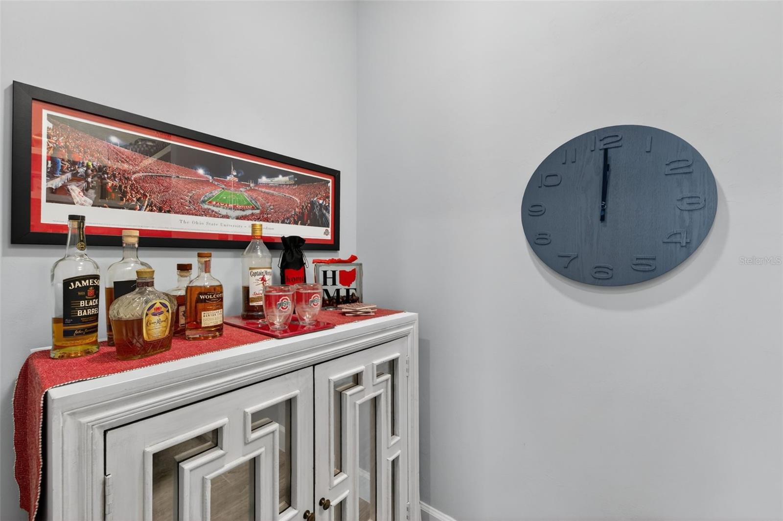 Luxury Living in Cypress Falls at The Woodlands Prepare to be dazzled. From the moment you arrive, the meticulous attention to detail is evident. Expertly manicured landscaping and custom curbing surround the entire property, leading you to a stunning etched-glass custom entry door. A Masterpiece of Design & Light Inside, the foyer opens to a massive, light-filled living space with 10'+ ceilings. The Great Room is anchored by a striking custom coffer ceiling and enhanced by designer custom lighting that sets the tone throughout. Gourmet Kitchen: A chef’s dream featuring sleek quartz countertops, 42" soft-close cabinetry, a custom backsplash, and premium built-in appliances. Butler’s Pantry: This space is second-to-none, featuring matching quartz counters and floor-to-ceiling custom-built cabinetry. Flex Room: A large, versatile room with private doors—ideal for a high-end home office or library. Elegant Accommodations Primary Suite: A secluded retreat featuring a custom-built walk-in closet and a luxury en-suite complete with tall upgraded cabinetry and elegant granite countertops. Guest Wing: Two generous bedrooms served by a stylish bath featuring upgraded tile, tall vanities, and premium granite counters to ensure a five-star experience for your guests. Your Private Oasis Transition seamlessly to outdoor living on the massive extended lanai. The View: Enjoy your morning coffee overlooking the peaceful, serene pond. Premium Protection: Features a 4' undercover extension, an additional sun deck, and electric hurricane shutters for effortless security and peace of mind. The Cypress Falls Lifestyle Beyond the home, discover a vibrant, gated neighborhood designed for an active and social lifestyle: Premier Healthcare: Ideally located near the new Sarasota Memorial Hospital North Port campus, currently under construction, bringing state-of-the-art medical facilities to your doorstep. Social Hub: A full-time activities director, clubhouse, and state-of-the-art fitness center. Recreation: Resort-style pool, hot tub, pickleball, tennis, horseshoes, and bocce courts. Social Calendar: From book clubs to themed social nights, this is more than a home—it’s a community. Luxury Features Premium Finishes: The entire home is finished with premium paints and custom window treatments. Stone Surfaces: Quartz countertops in the kitchen and pantry; Granite in all bathrooms. Architectural Detail: 10'+ ceilings, custom coffer details, and designer lighting fixtures. Custom Storage: Custom-built cabinetry in the pantry and primary walk-in closet.