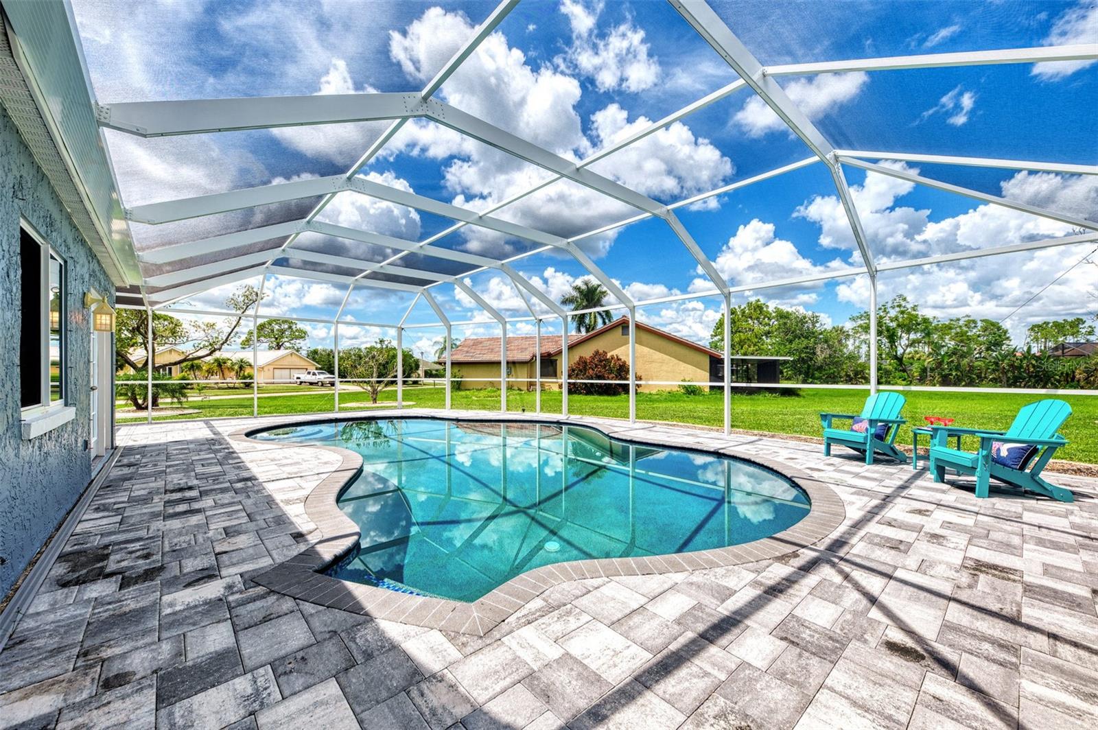 COUNTRY CLUB ESTATES 3 bed 2 bath charmer on sprawling .49 acre lot with Fabulous RENOVATED POOL /New ROOF /New Lanai/ New Interior & Exterior paint/ New flooring/ updated AC / Electric panel /Water Heater / whole house GENERAC GENERATOR and complete Hurricane Protection, on PUBLIC WATER and SEWER and soooo much more!! So PLEASE S-T-0-P SCROLLING Your search is over!!!! If you are tired of looking at overpriced cookie cutter homes in trendy new developments coated with construction dust wedged in like leggo pieces or old tired homes in" your price range " that were just "touched up" to sell... this is the property for you. Literally ...Everything has been done ... no need to fear a failed inspection here.. This absolute GEM of a home will renew your faith that dreams really do come true ! She's located in the heart of North Port just minutes from Coco plum shopping district, Wellen Park, The Braves spring training stadium, miles of walking paths and bike trails, Walmart ,Lowes, Home Depot and US 41 with easy access to I-75. Want to enjoy Country Club amenities with out all the HIGH HOA and CDD fees ??.. well you are just a short golf cart ride across the street to Heron Creek Golf and Country Club that offers semi private golf access, low membership options and fine and casual dining. This home has been lovingly maintained and thoughtfully renewed over the past three years and you can't help but feel that joyful vibe from the minute you step inside ! With just under 1800 sq feet of living area this home lives large ...she's well suited to easy living and entertaining alike with a desirable split bedroom floor plan, OPEN CONCEPT great room, generous Florida Room /Flex room, ample dining area options, updated kitchen with newer SS appliances, farm sink, large pantry, rich wood cabinetry and exotic granite counters, a private 2 bedroom guest wing with full bath and a spacious master bedroom with en-suite bath and double closets. The expansive lanai and fabulous free form heated pool (with 10' depth) offers an unexpected oasis of endless outdoor fun.... Lots of deck area for dining and sunbathing or enjoying an evening under the stars around the fire pit and OHHH BOY is the adjacent open air paver patio ever a Griller's BBQ dream station !! As much as I hate the you must "see it to believe it" tag lines .... it most certainly applies to this home..... Interior appointments include new heathered laminate flooring, Plantation shutters on all windows and doors, 5" baseboards, all new toilets, shower upgrades, cushion close kitchen cabinetry, new interior drywall and paint (2024). She's oh so smart with MY-Q garage door, Smart AC thermostat, keyless entry front door, RING doorbell and comes with pre wired security cameras. Your lush green yard will be the envy of the neighborhood as this home boasts a full yard irrigation system upgraded in 2022 including private well with new well pump and Rainbird Control panel This home is priced to sell so DO NOT HESITATE ..... Country Club Estates is a deed restricted community with only an OPTIONAL $25.00 annual membership fee (seriously). .