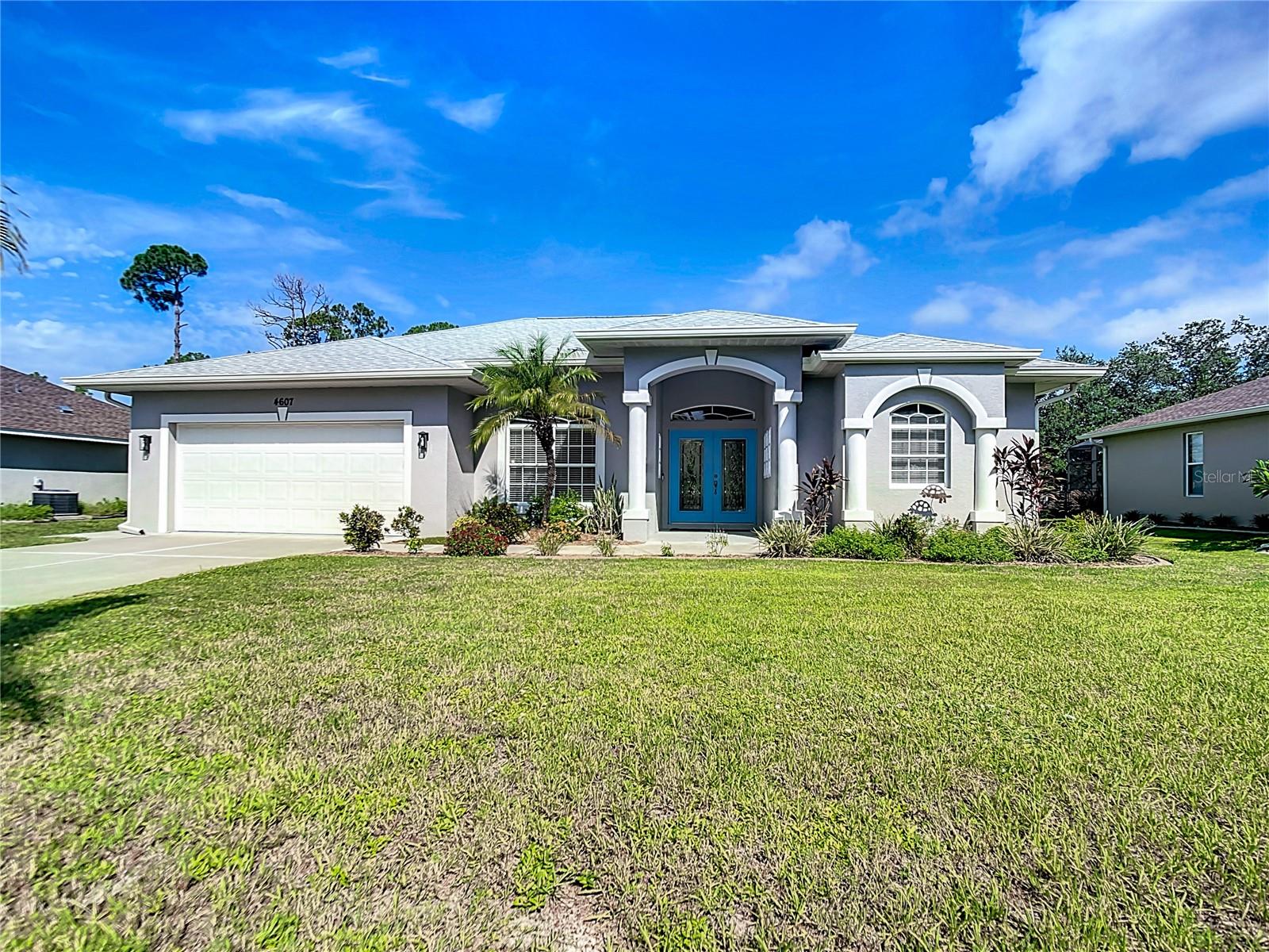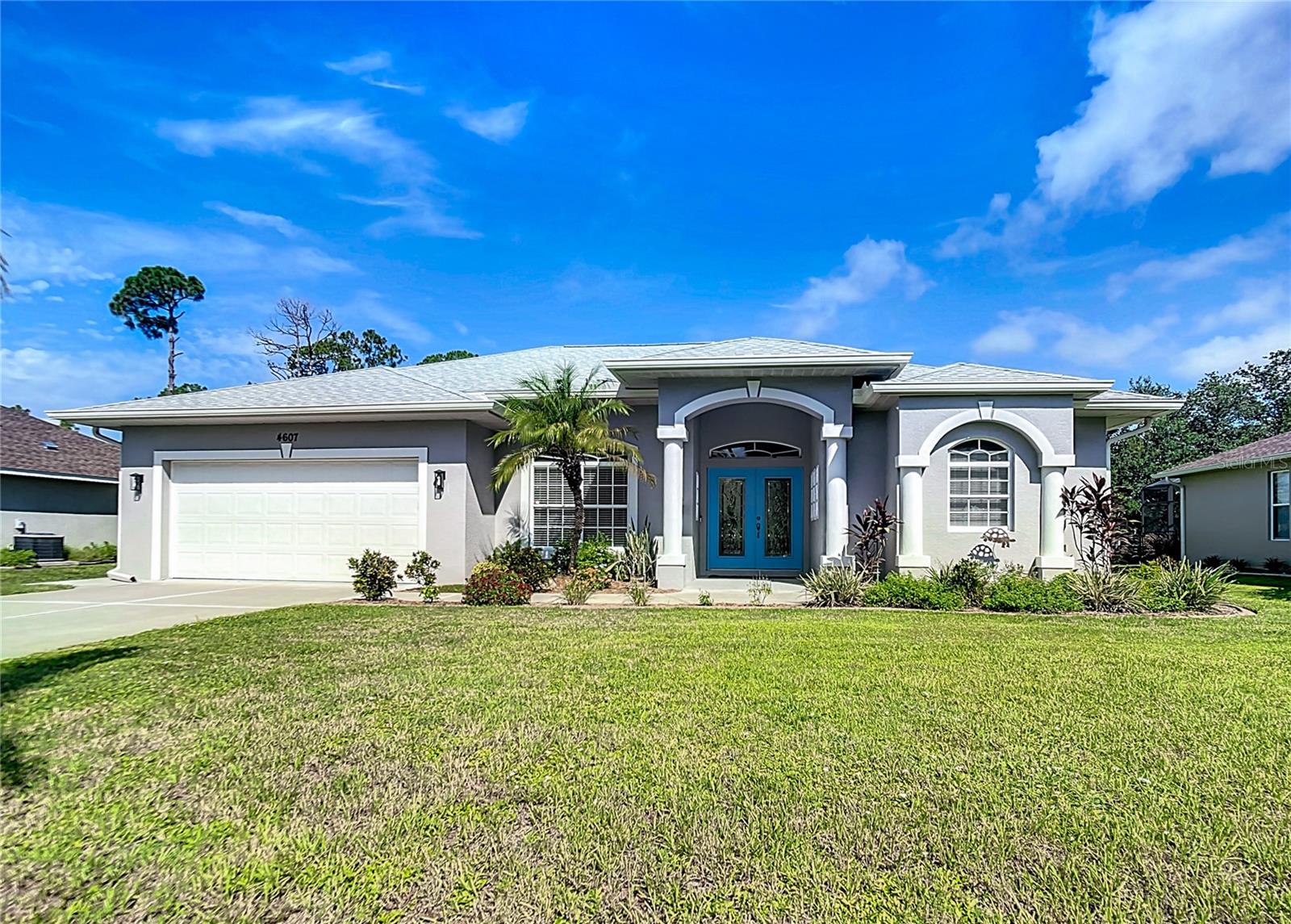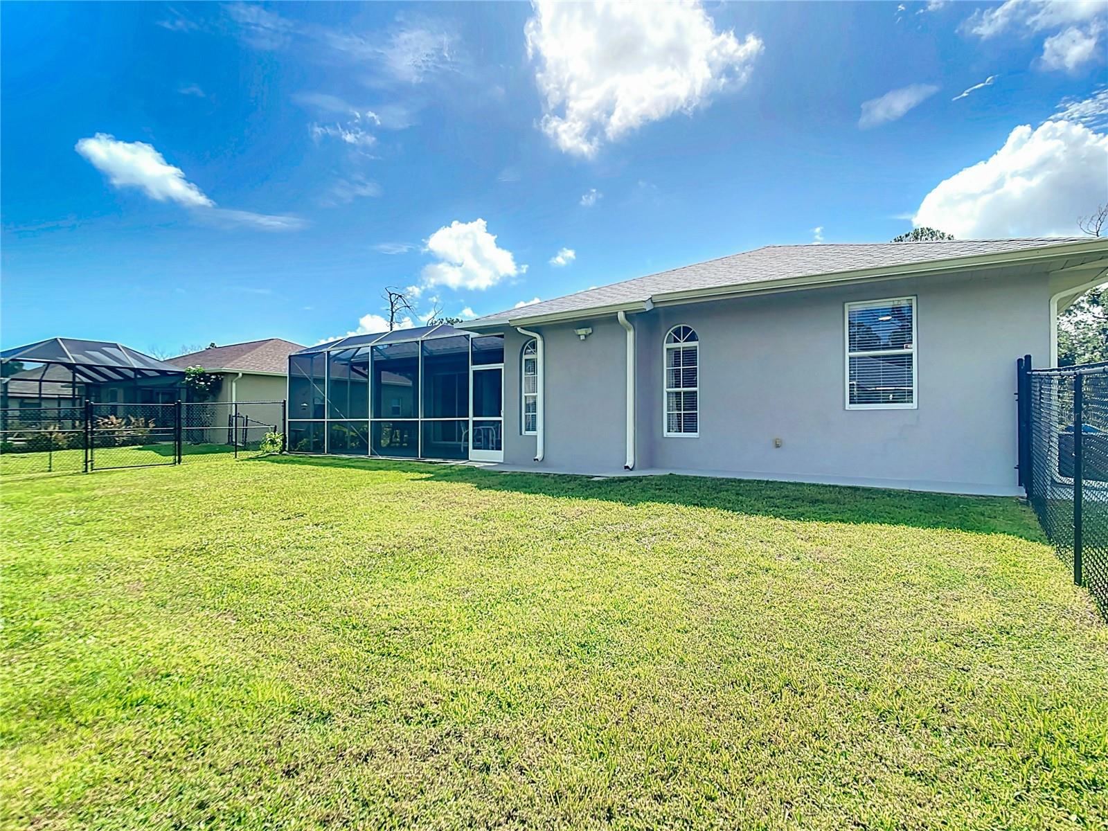 Ready for your slice of paradise? This impeccably maintained home is nestled in North Port, and certain to please the most discerning of tastes! Featuring an open-concept floorplan with 3 bedrooms, 2 bathrooms, 2-car garage and multiple living areas, this like-new residence showcases beautiful craftsmanship and meticulous attention to detail. You'll also enjoy peace of mind with new roof (2023), newer hot water tank (2022), newer AC (2018), and NO flood zone! Enter through the etched glass double doors and you'll notice the light, bright feeling created by volume ceilings, oversized windows and three sets of sliding doors leading to the extended lanai. This split floorplan features a formal dining room, living room and family room which bring multiple living areas to this highly versatile floorplan, while tile floors in main living areas allow easy care while creating an elegant atmosphere. The kitchen is 'the heart of the home' and features crisp shaker-style cabinets, upgraded stainless steel appliances, quartz countertops, reverse osmosis water filter, tile backsplash, and large center island. When it's time to unwind, the oversized primary suite is the perfect oasis with double walk-in closets, sliding doors to lanai, and wood-look tile floors. The primary suite also offers a full en suite bathroom with double vanity, linen closet and walk-in shower with frameless glass door. Outside, the 10,000 sq. ft. lot with fully fenced backyard provides the perfect space for outdoor fun, showcasing an extended lanai cage with ample room for entertainment. The beautifully landscaped surroundings create a lush Florida oasis, allowing privacy while offering the ideal setting to take in the breathtaking sunsets. Conveniently positioned near Cocoplum Plaza and the new Wellen Park, this property provides easy access to dining, shopping, and entertainment. Whether exploring area beaches or enjoying the sanctuary of your own backyard... this home offers a perfect blend of comfort and luxury in a highly desirable location. This home is located in a non-deed restricted neighborhood, allowing you the freedom to enjoy your property, your way. Call for your private showing today!