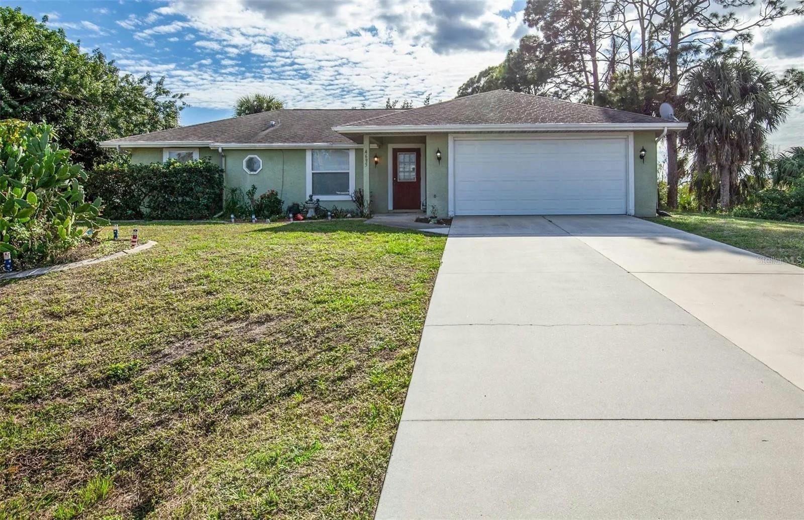 PERFECT INCOME PRODUCING PROPERTY AS A SEASONAL OR ANNUAL LEASE!!! Delightful and well-maintained re-piped 3 bedrooms, 2 bath POOL home on an oversized lot with a 2-car garage in North Port that comes with a 1-year home warranty! This wonderful home that has an open floor plan, split bedrooms, vaulted ceiling, NEW electrical panel, NEWER water heater, and slider that lead out to the expansive screened and partial covered lanai with a gorgeous pool. There is ceramic tile in the main living areas, and bathrooms, with laminate flooring in the bedrooms. The entry from the front door leads to the living room and dining room as well as the spacious kitchen with an island, breakfast bar, and closet pantry. The sizable primary bedroom features a walk-in closet, ceiling fan, and an en-suite bathroom with a floor to ceiling tiled walk-in shower. The other two guest bedrooms and guest bath with a tub and shower combo are located the other side of the home, which provides some privacy for relatives or friends that are living there or visiting. The outdoor oasis allows for privacy due to the woods located in the back. Come and see this home that is centrally located to schools, shopping, restaurants, golf, water park, parks, and local events at North Port City Hall.