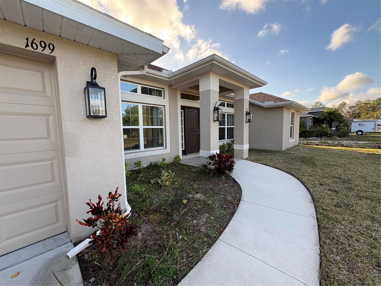 Absolutely stunning 4-bedroom, 2-bathroom, 2-car garage home built in 2019, offering 2,138 sq. ft. of beautifully designed living space in a quiet and desirable area of North Port, FL. This home combines modern style with functionality, featuring a formal dining room, a dedicated office space, and a spacious covered patio—perfect for relaxing or entertaining. Inside, you’ll find granite countertops, walk-in closets, and elegant french doors leading to the backyard from the family room and two additional bedrooms, creating an airy and inviting atmosphere. The kitchen is equipped with a reverse osmosis water system for the best-tasting water, and the home boasts an automated irrigation system to keep the landscaping pristine. With easy access to I-75, shopping, dining, and entertainment, this home offers both convenience and tranquility. Don’t miss this opportunity—schedule your showing today!