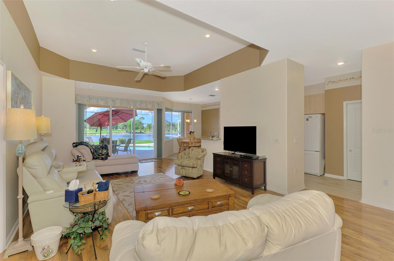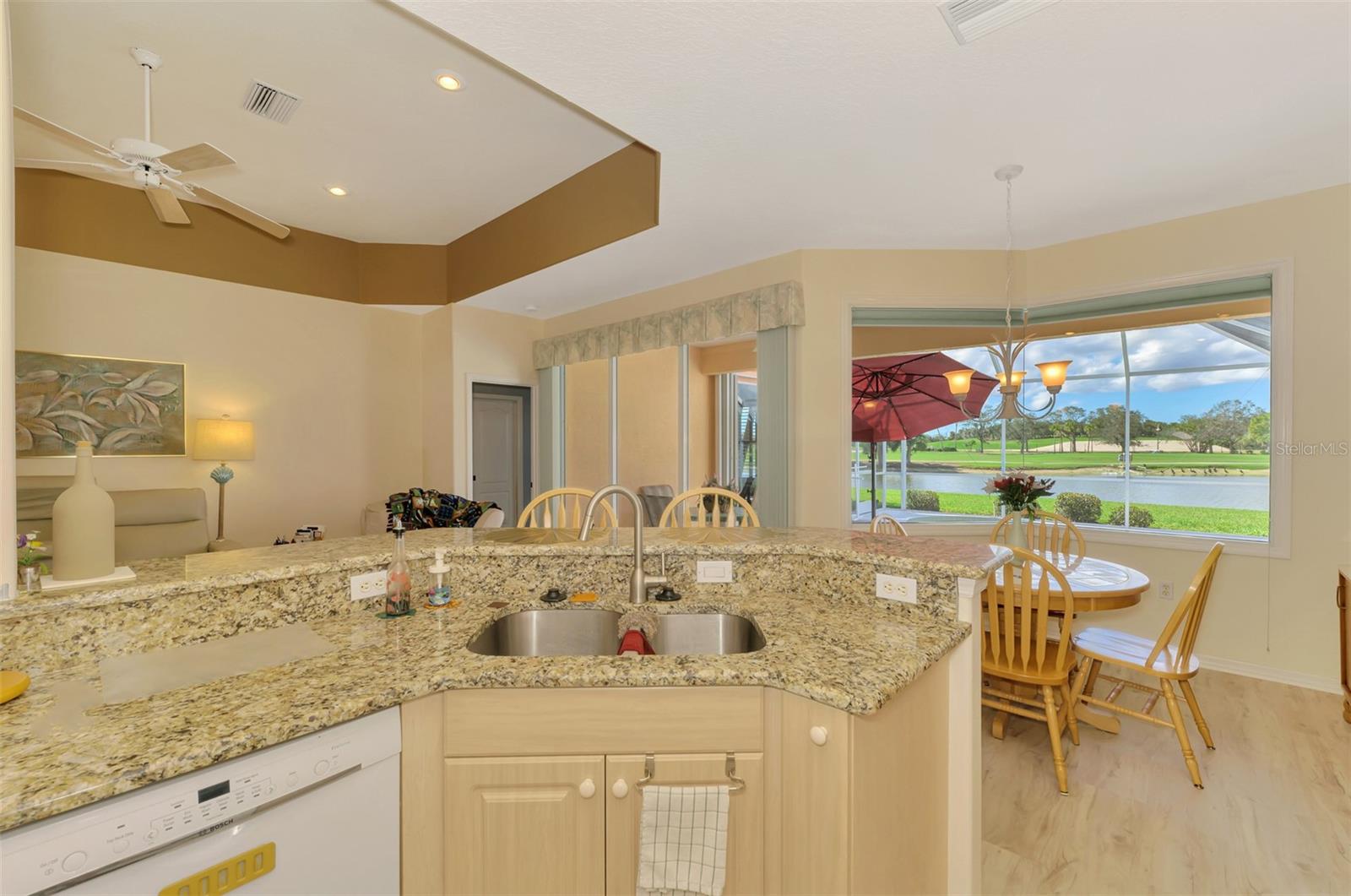 **HERON CREEK GOLF AND COUNTRY CLUB** Don’t miss this snappy One-Owner 3-bedroom Single family POOL home with sweeping WATER & GOLF VIEW! ** NEW ROOF** Great location within the community close to main entrance, Clubhouse and fabulous community amenities. This quality built Schroeder home boasts a thoughtfully designed floor plan that is just under 1800 square feet.. not too big ..not too small just perfectly suited to easy living and entertaining alike. This home has been lovingly maintained by the original owners, and it is full of warmth and charm from the outside in! Vibrant tropical foliage surrounds this happy home and her curb appeal will make you smile! She exudes a distinctive Floridian vibe with a classic Barrel tile roof, a soft coral exterior paint palette, triple bay windows and high arched entry. Nothing says welcome in like a double entry glass door that leaves the main living areas awash in natural light. The desirable great room floorplan immediately delivers simply breathtaking water and golf view from the minute you step through the doorway and boasts 2 guest bedrooms with adjacent full bath, an expansive private owners retreat with ample room for sitting area, easy access to pool/lanai, an extra deep walk-in closet and ensuite bath with raised dual sink vanities and large easy entry shower. The main space features a designated dining area, Great Room with Media wall, High Tray ceilings and a fabulous kitchen outfitted with tall 42” cabinetry, tumbled tile backsplash, exotic granite counter tops, double door pantry & built in desk. There is a separate laundry room with additional cabinetry for storage and convenient laundry sink. There is a sun filled dinette overlooking the pool with a picture-perfect aquarium glass window. Cascading triple sliders open to the lanai and heated pool where there is plenty of covered space for dining as well as ample deck space to soak up the restorative Florida rays. This home is casual move in ready ..features easy care LVT and engineered hardwood flooring, a cheerful color palette of coastal hues, and some furnishings may even be available under separate contract. Guest bedroom#2 doubles as a great flex room with a double door opening to the great room and a single door opening to the hallway and bath. Could be an office, hobby room or artist gallery (the current owner is an artist and has shared a bit of her artistic magic throughout the home :) ) . The front guest bedroom has a wonderful space-saving Murphy bed which will stay as well. If you act quickly you can cast off the winter blues and start living the good life in Heron Creek “where Nothing Compares” Heron Creek Golf & CC offers a spectacular clubhouse, an amazing array of social activities, 27-hole Authur Hills championship golf course & practice facility, Tennis, fitness center & resort style pool. Required membership starting as low as 268/month. HOA fees INC: all ground maintenance, irrigation, Cable, High Speed Internet & guarded gate entry! Hurry "Nothing Compares" the only thing this home is missing is you! Heron Creek is centrally located w/ easy access to I-75, only a short commute to the new SMH Health care facility, gulf beaches, downtown Venice, COSTCO, Wellen Park, the Braves stadium & local airports LOW HOA quarterly fees INC: cable, internet, ground maintenance, irrigation,& mulching. NO CDD+FLOOD ZONE X no flood insurance required+
