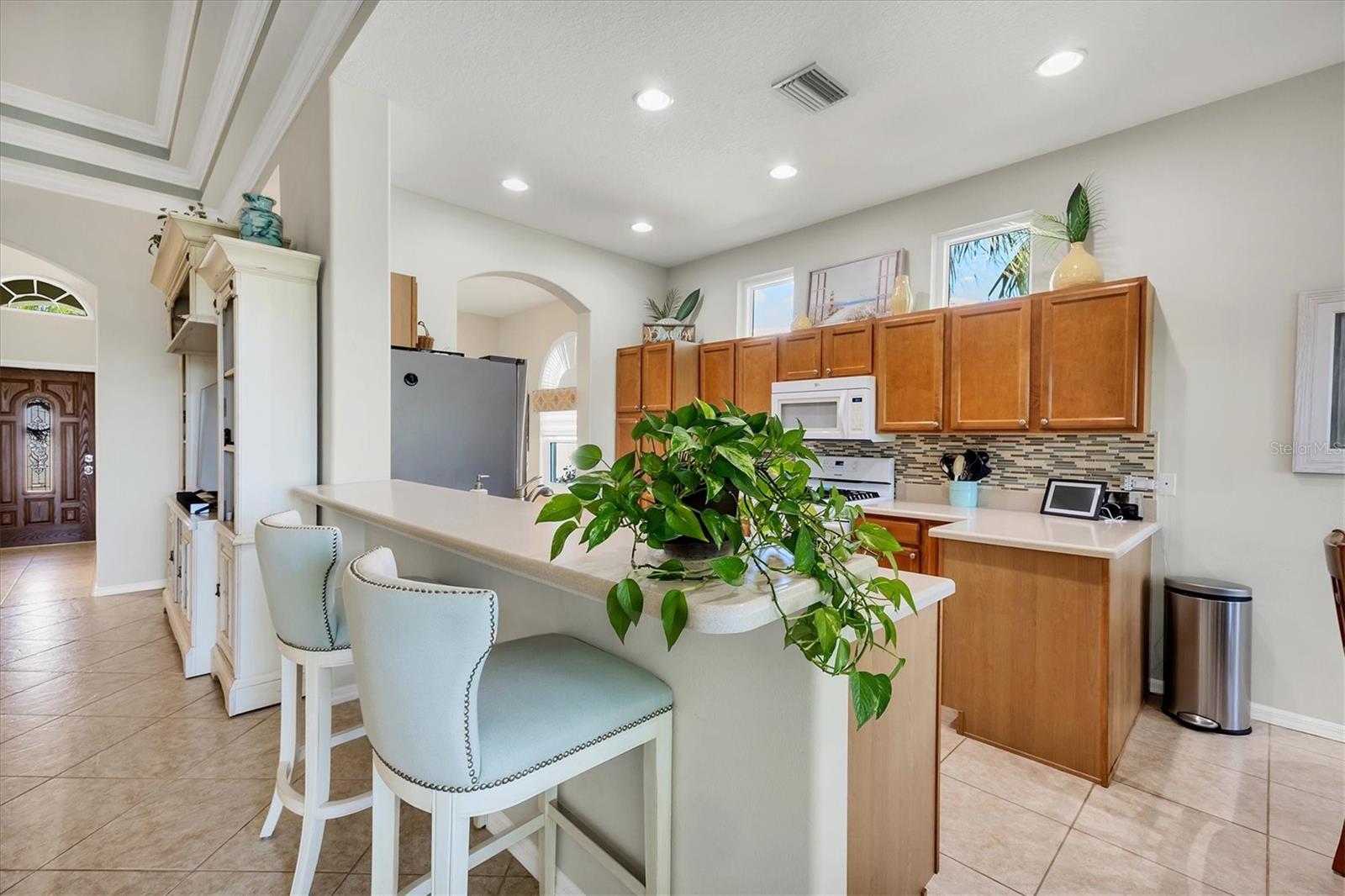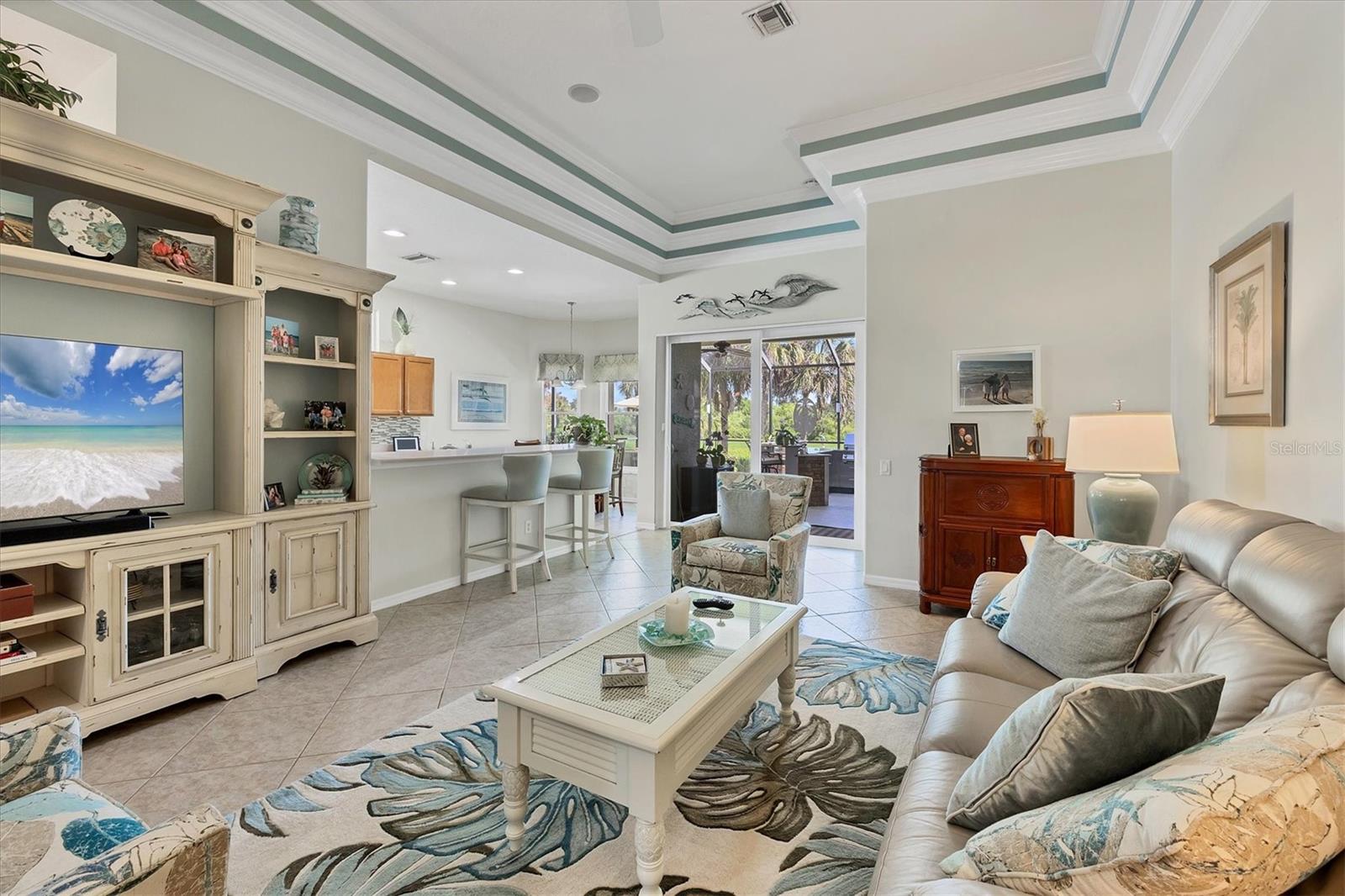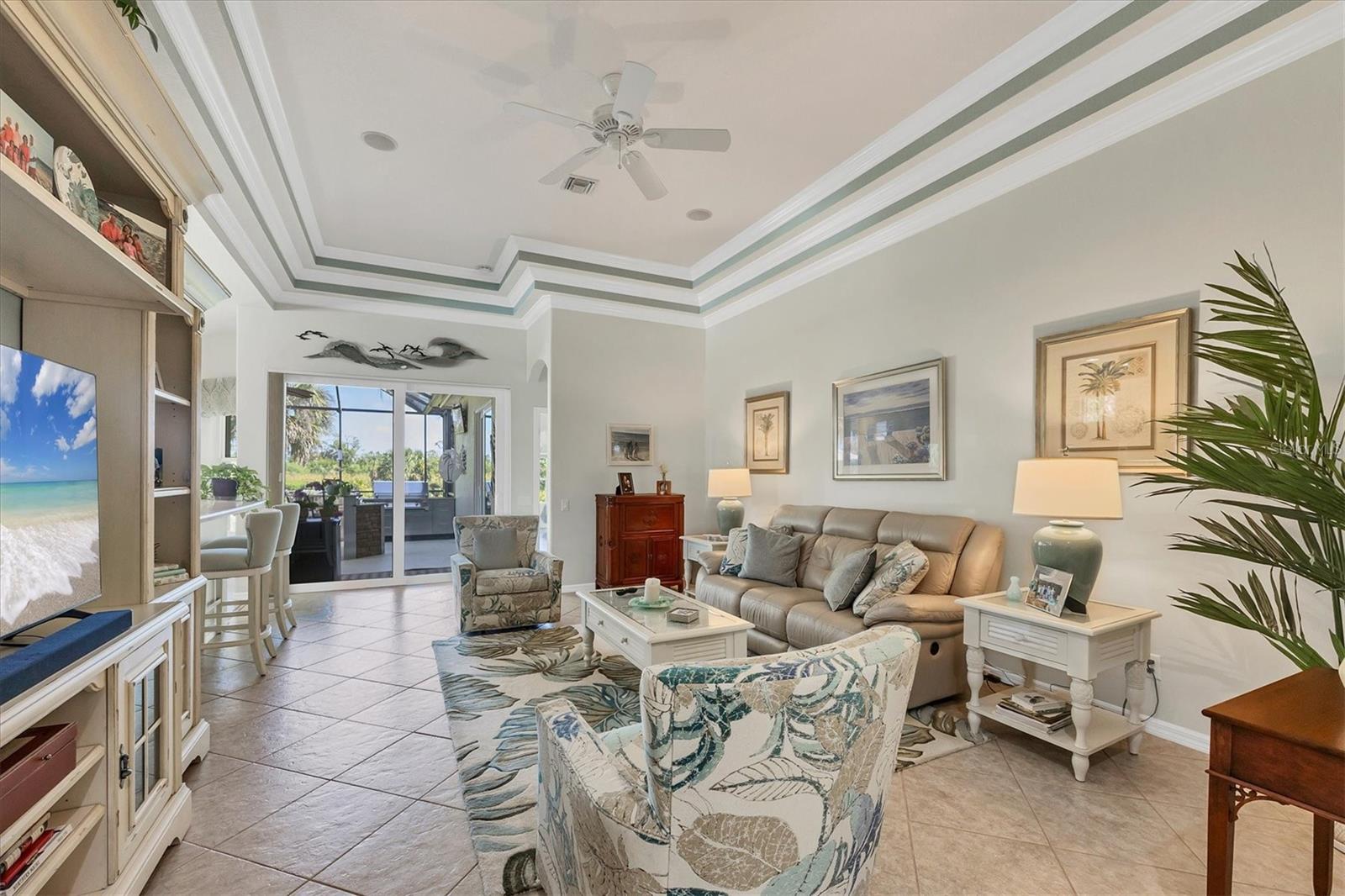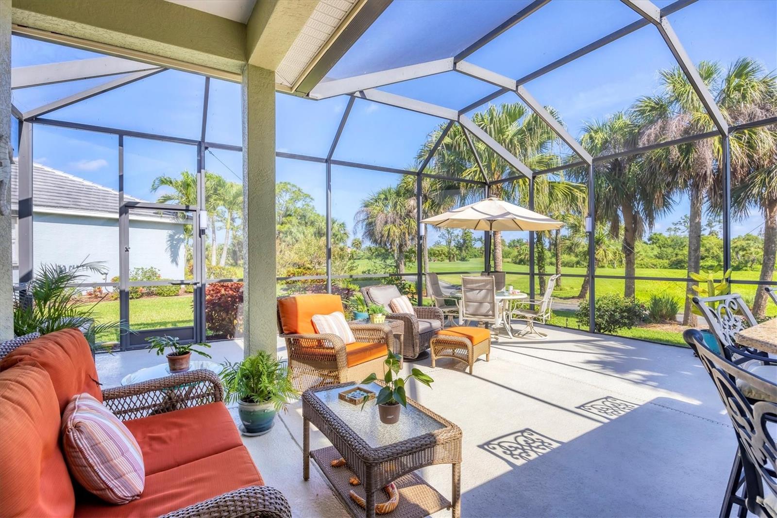 *HERON CREEK GOLF & CC* IMMACULATE 2 BED +DEN Single family home on quiet Cul-de-Sac PANORAMIC GOLF VIEW overlooking #3 of the Marsh course. This home is as sweet as the sprawling 1/4 ACRE PIE SHAPED LOT she sits on and is filled with delectable UPDATES & UPGRADES including a *NEW ROOF 2024* IMPACT WINDOWS & SLIDING DOORS* and an ahhmazzzzzing AWARD-WINING SUMMER KITCHEN! Fantastic location just a short walk or cart ride to the Clubhouse, Pool and Fitness Center. This home has been, well-loved meticulously maintained and pride of ownership shows from the outside in and inside out. Her curb appeal shines bright with a lovely decorative stamped concrete driveway, custom curbing around the planting beds, and lush tropical landscaping including swaying palms, vibrant hibiscus & Ixora bushes & annual flowers. Once you step through the stunning wood and leaded glass entry door you can leave your worries behind as you enter your own private oasis.. your piece of paradise! This quality built NOHL CREST home has a wonderful coastal vibe, at just under 1700 sq ft she's not too big, not too small and perfectly suited to laid back living and entertaining alike! This floor plan features a spacious open Great room with a fabulous triple tray ceiling, cool diagonal ceramic tile on the diagonal, arched doorways, a perfectly sized kitchen with ample rich maple wood cabinetry, classic solid surface counter and glass tile backsplash, an island with raised breakfast bar, and there is both a designated dining room and a sun filled dinette. Family and friends will love the privacy of the guest bedroom and bath. After a long day of entertaining can retire to the .. your own sanctuary with it's spa worthy ensuite bath boasting high vanities, dual sinks, garden tub & walk in shower. The ensuite also has high clerestory windows leaving it awash in natural light ! The Primary bedroom has a huge walk-in closet w/ custom built-ins and easy access to the lanai. There is a versatile DEN/OFFICE at the front of the home that can easily be converted to a third bedroom as it has a handsome Murphy Bed wall unit at the ready to accommodate additional guests! The Great room opens wide to the fabulous EXTENDED LANAI and SUMMER KITCHEN ! It is wonderful and would make many of the BIG BIG homes jealous! This custom summer kitchen has everything you need for outdoor entertaining including, stackstone wraparound bar w/granite countertops, SOLARE grille , SS drawers and storage. The lanai is outfitted with specialty remote controlled lighting around the perimeter perfect for setting the ambiance for evening entertaining! The lanai over looks the lush green of the golf course with no homes on the horizon and will delight nature lovers with the parade of birds and native wild life! Heron Creek offers exceptional amenities including a 21,000 sq ft clubhouse, 27 holes of Championship golf Arthur Hills design, resort style pool & spa, a robust social activity calendar, fitness center, Tennis courts & formal & casual dining options! Club Membership is required with 3 membership levels offered beginning at $278/month *NO CDD FEES * LOW HOA FEES include lawn care, trimmings, mulching, irrigation, FIBER OPTIC/ TV/ HIGH-SPEED INTERNET & Gated entry, conveniently located w/easy access to I-75 & US-41, Cocoa Plum Shopping ,Myakkahatchee Creek trails, WELLEN PARK, Braves Stadium, COSTCO & will be just 3 miles to the new 507 Million SMH Hospital Coming to I-75 and Sumter Blvd!