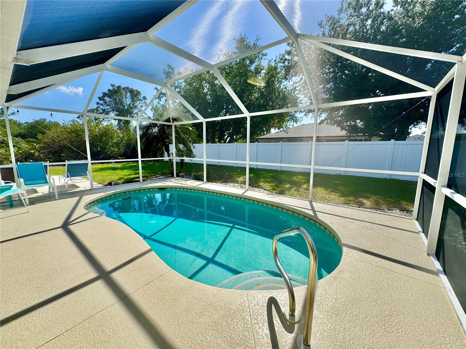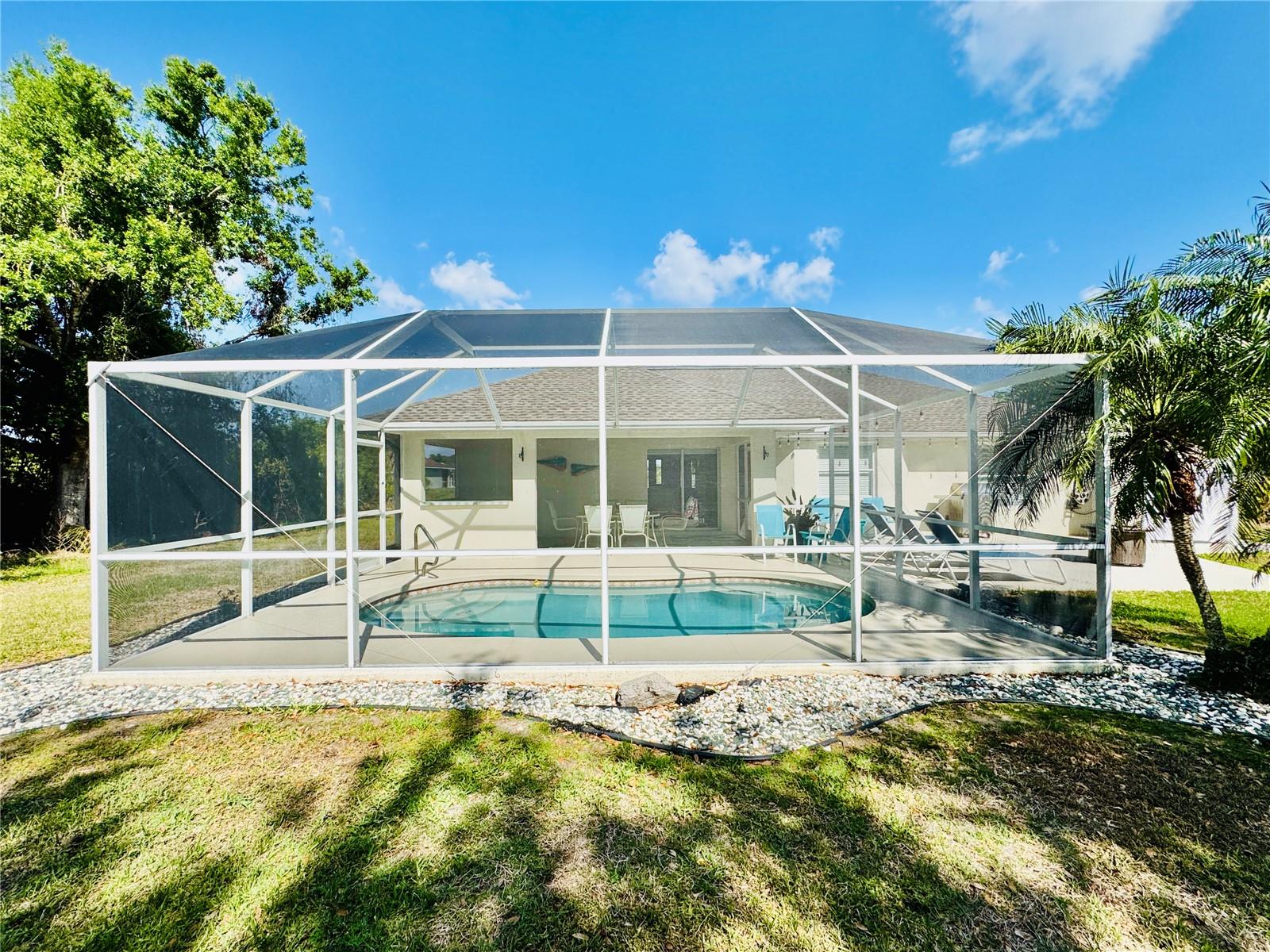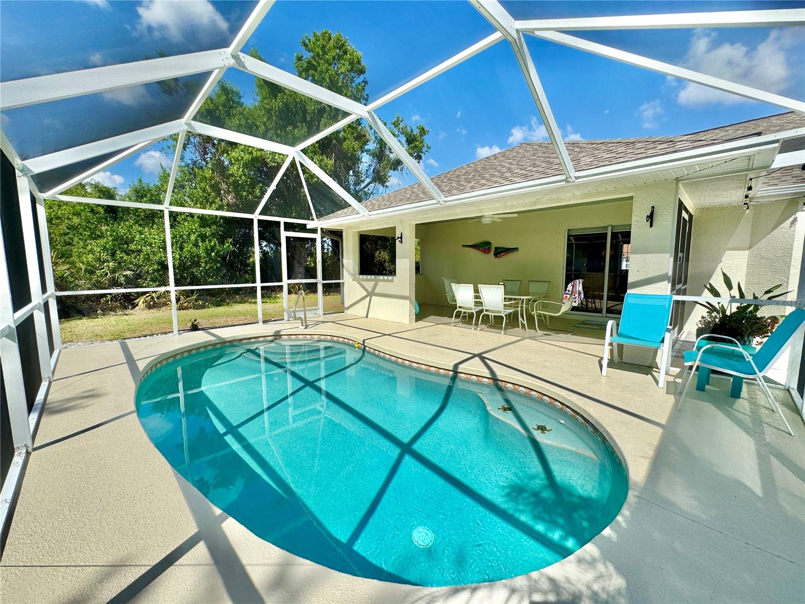 Beautiful Place to call your Florida home! This 3/2/2 has all the bells and whistles! From the stunning yard with it's lush greenery, to the refreshing heated pool. The Newer back fence and two vacant lots on each side of home make it a nice space for privacy. Large concrete patio and sidewalk for those nights you want to grill outside! New Roof as of 2024. Pool Heater 2024! New Softener 2025. Newer Painted Pool Decking 2025! New Lanai & Pool Cage Screen as of 2023! Newer fencing around pool equipment and water system. Upon entering this adorable Florida Retreat, you will be greeted by professional decorating throughout. Each room so well taken care of and immaculate! Large Breakfast Bar for Entertaining! Interior of Home was Newly Remodeled in 2012! Enjoy the Den as a hobby room or office or use as a 4th bedroom! Come and Enjoy seeing how refreshing this house is!