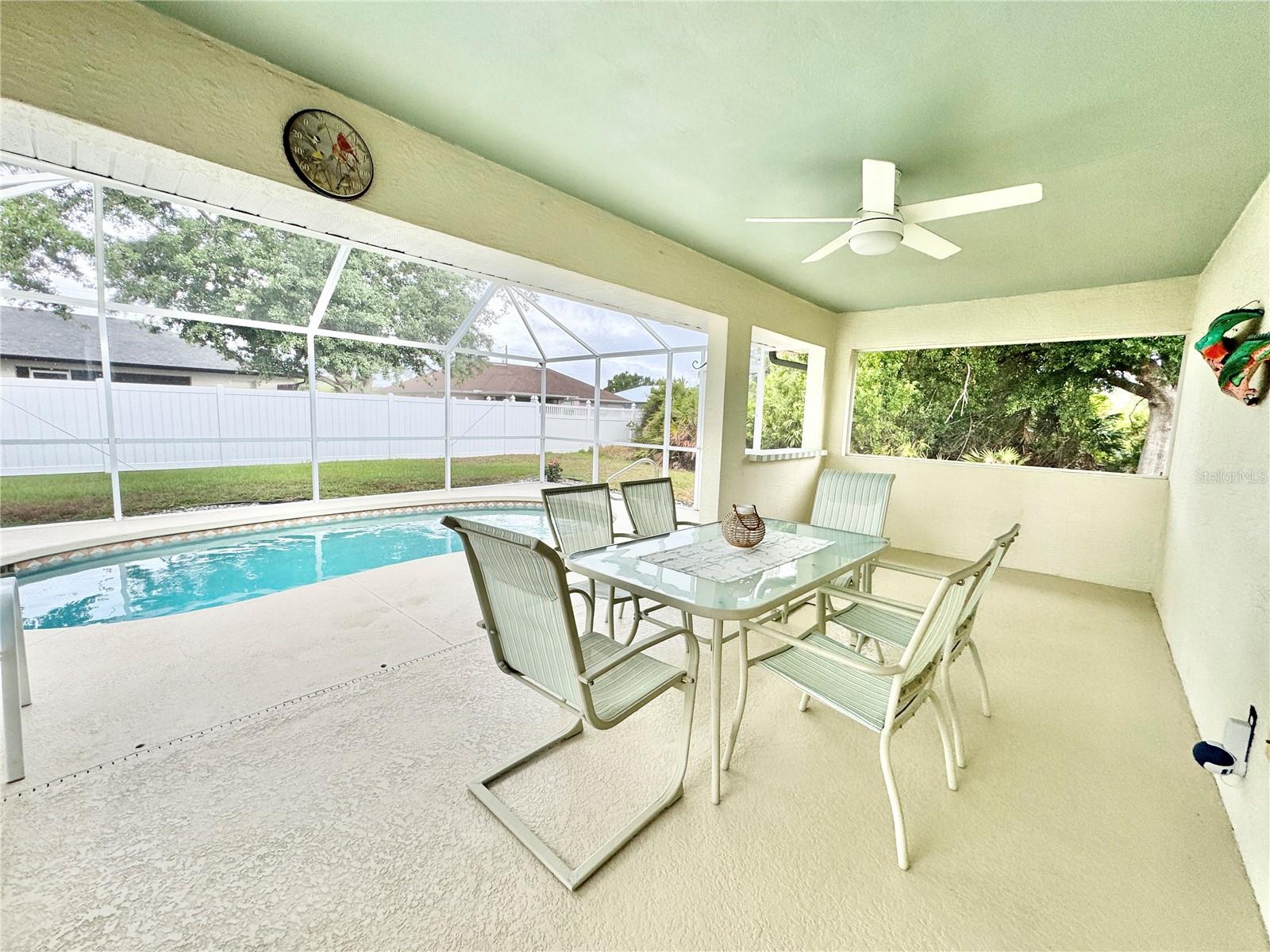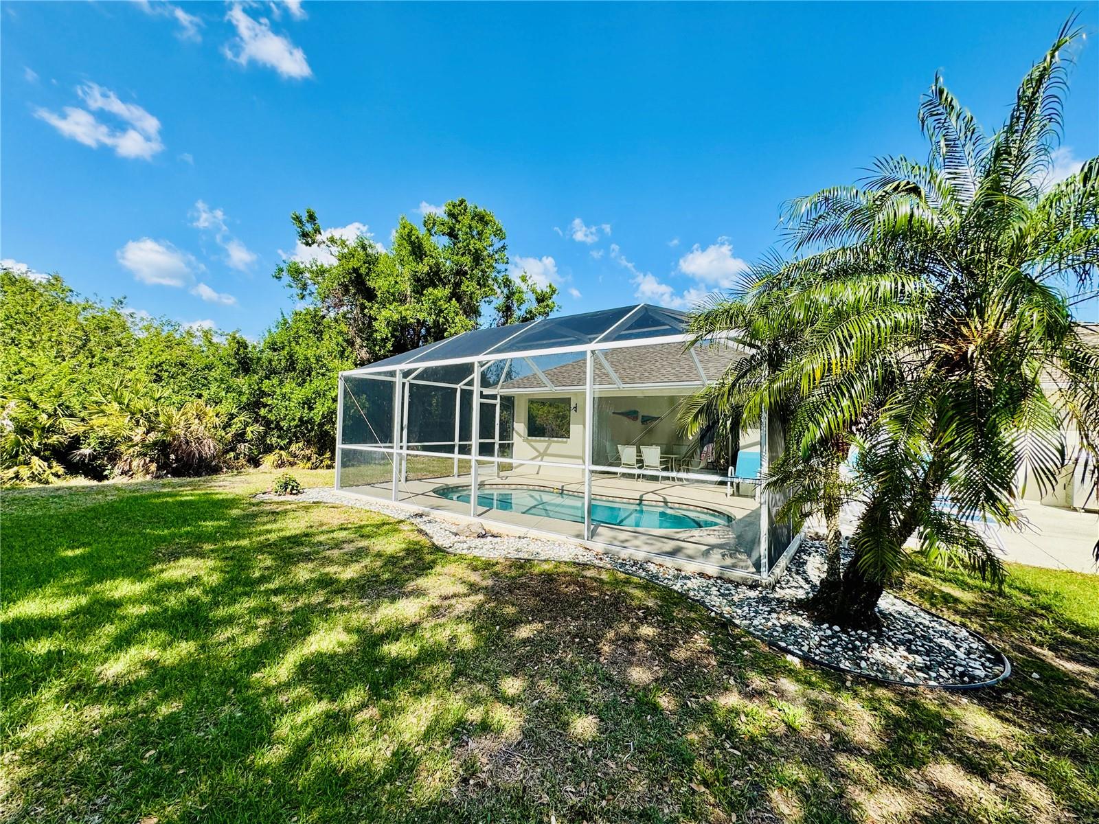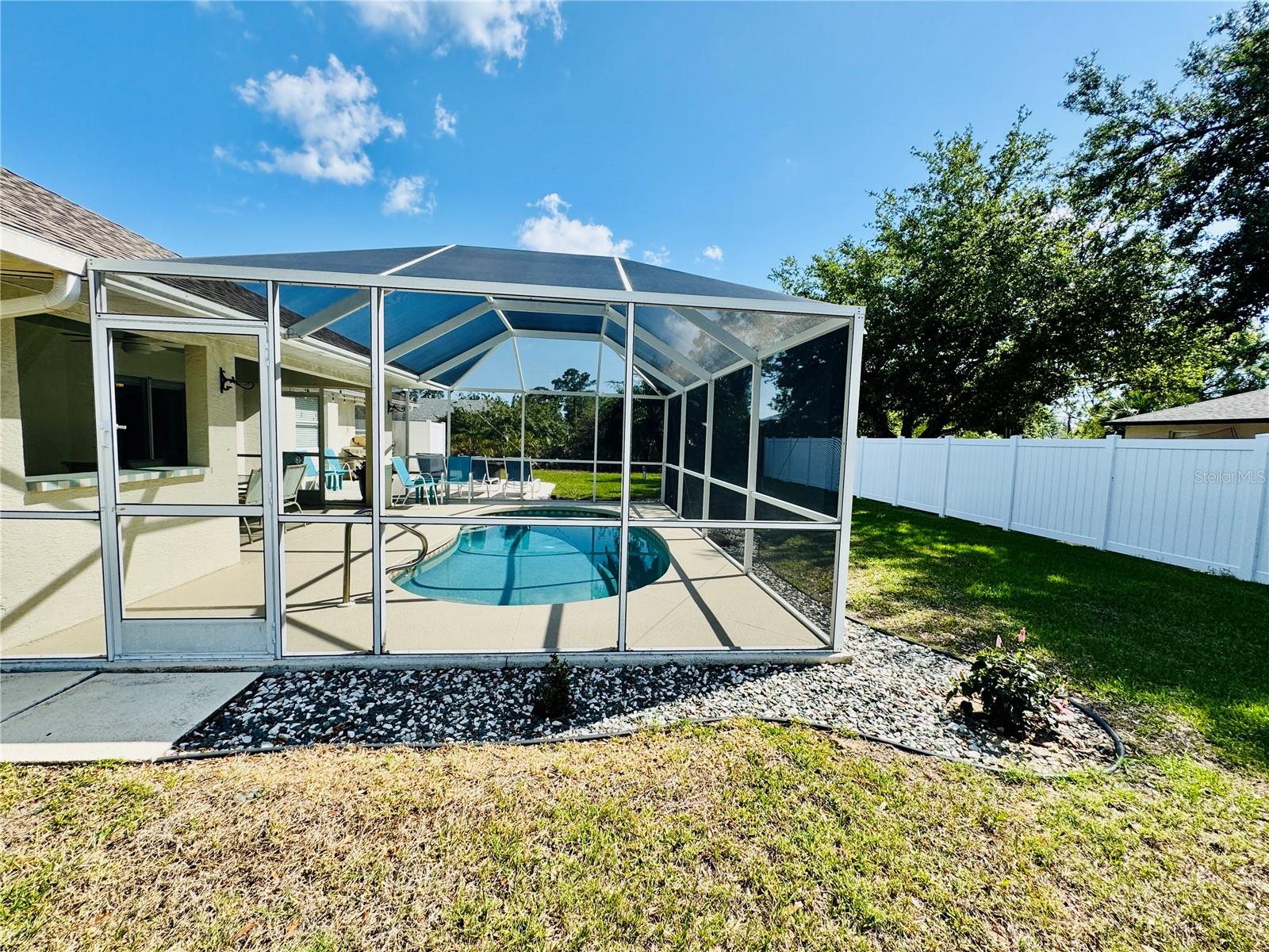 Beautiful Place to call your Florida home! This 3/2/2 has all the bells and whistles! From the stunning yard with it's lush greenery, to the refreshing heated pool. The Newer back fence and two vacant lots on each side of home make it a nice space for privacy. Large concrete patio and sidewalk for those nights you want to grill outside! New Roof as of 2024. Pool Heater 2024! New Softener 2025. Newer Painted Pool Decking 2025! New Lanai & Pool Cage Screen as of 2023! Newer fencing around pool equipment and water system. Upon entering this adorable Florida Retreat, you will be greeted by professional decorating throughout. Each room so well taken care of and immaculate! Large Breakfast Bar for Entertaining! Interior of Home was Newly Remodeled in 2012! Enjoy the Den as a hobby room or office or use as a 4th bedroom! Come and Enjoy seeing how refreshing this house is!
