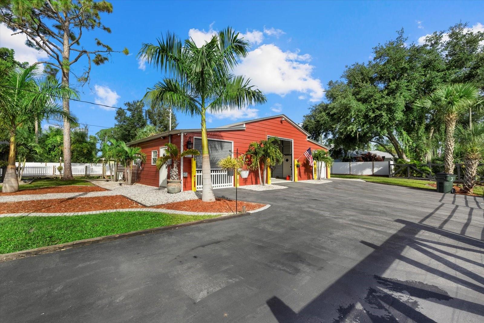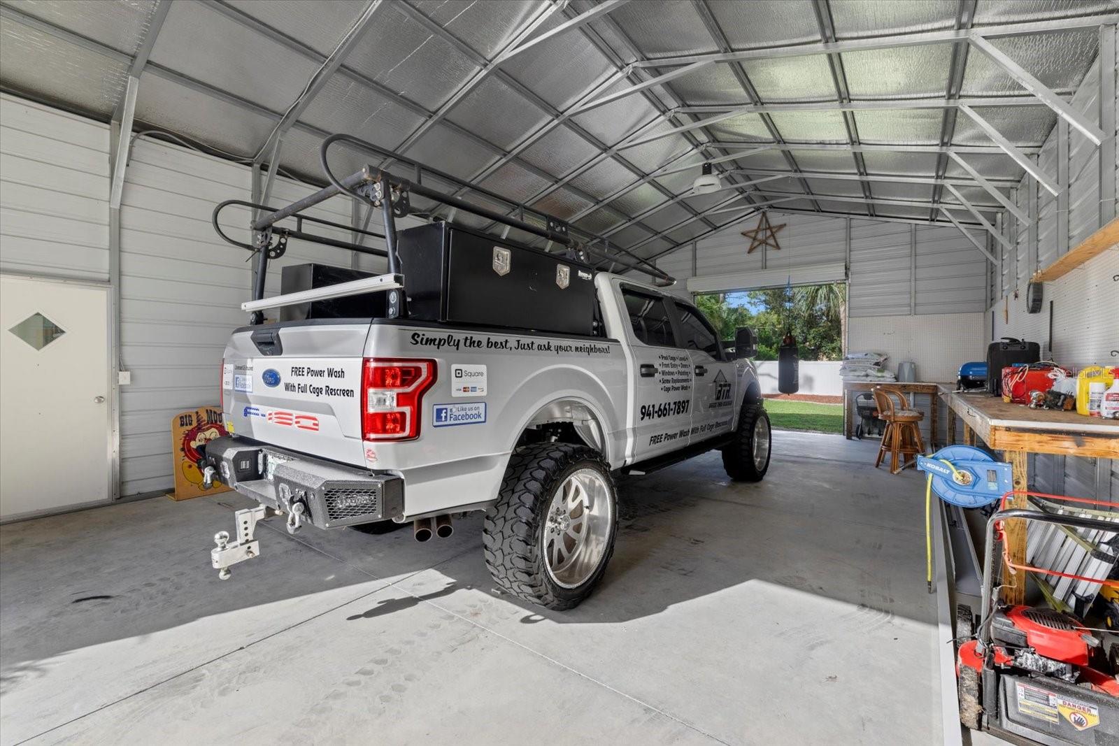 THE BEST VALUE IN NORTH PORT FLORIDA! Spacious pool home with land, detached workshop, and luxury upgrades. NO HOA and a private guest apartment with bath in the detached garage. This stunning North Port property sits on 0.69 acres (three lots) and offers 2,130 square feet of open-concept living space with 2 bedrooms, 2 bathrooms, and exceptional Florida lifestyle features. Step inside to elegant porcelain plank tile flooring, vaulted ceilings, and a bright, open design that connects the updated kitchen, dining area, and living room. The kitchen includes granite countertops, stainless steel appliances, soft-close cabinetry, and a designer backsplash. The large bonus or game room is perfect for entertaining family and friends. The primary suite is a true retreat with dual walk-in closets, direct pool access, and a spa-style bathroom with a walk-in shower and soaking tub. Relax outdoors on your private screened lanai featuring a sparkling in-ground pool, accent lighting, and tropical landscaping. The 40’ x 50’ detached garage and workshop is a dream for car enthusiasts, RV owners, or business use. It includes air conditioning, epoxy floors, an office or in-law apartment with a full bathroom, and room for up to six vehicles, boats, or trailers. Additional upgrades include a 2023 roof, newer A/C, reverse osmosis system, fenced yard, irrigation system, and charming farmhouse-style finishes. Located in North Port near Wellen Park, Venice, Port Charlotte, Gulf Coast beaches, Warm Mineral Springs, and I-75. This rare property offers the perfect blend of privacy, luxury, and functionality, ideal for anyone seeking a Florida pool home with acreage, workshop, and no HOA fees. Schedule your private showing today!