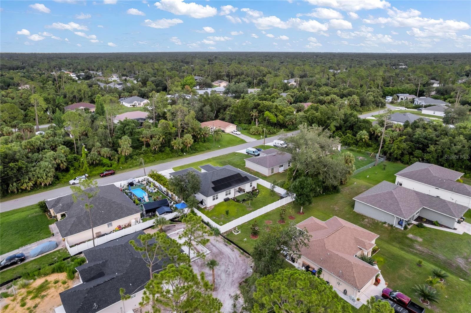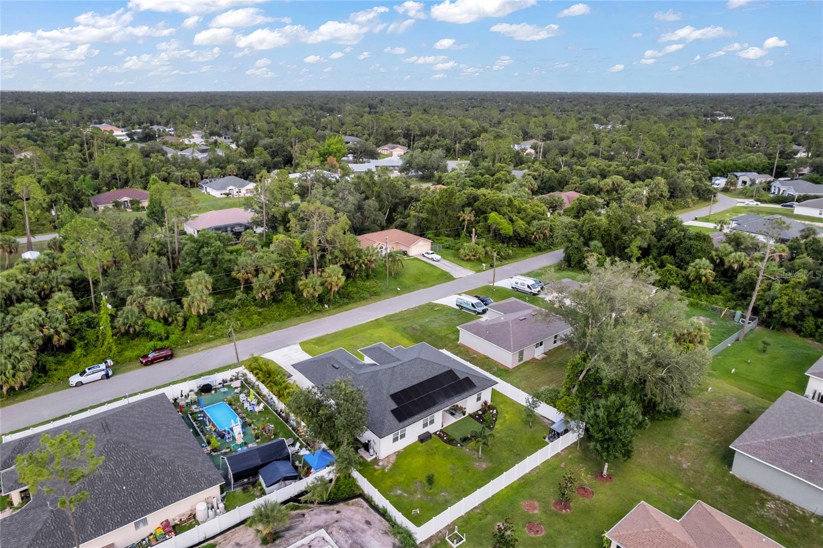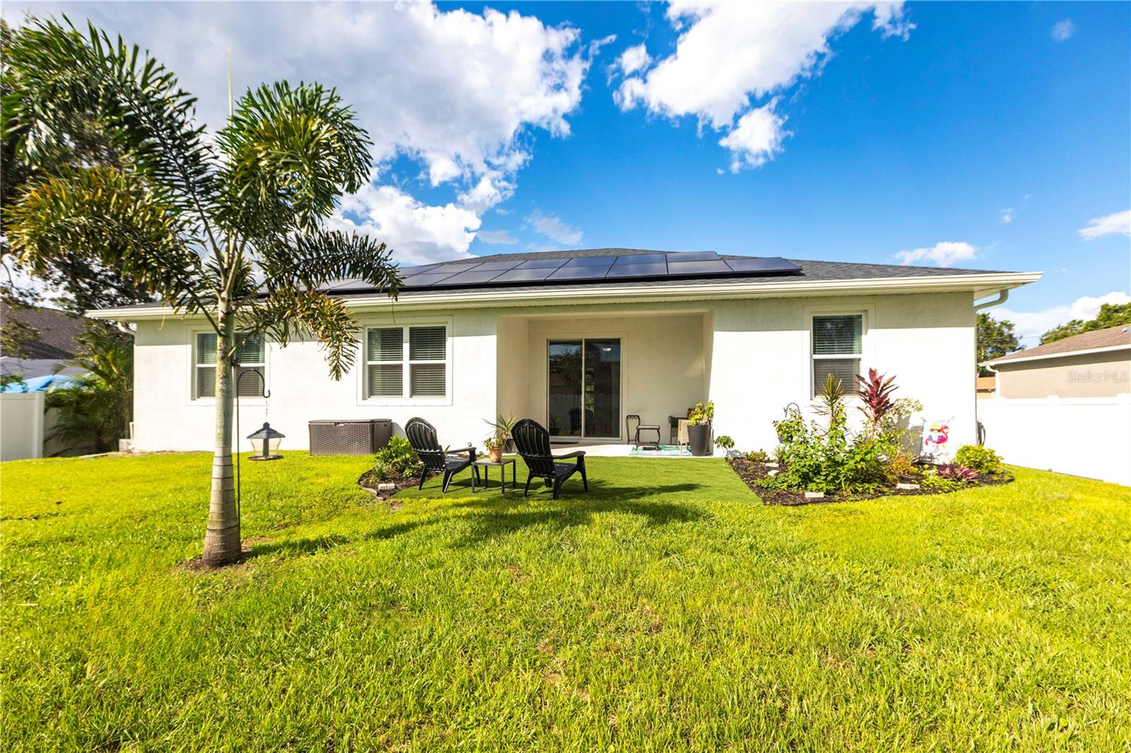 ENJOY A GENEROUS PRICE REDUCTION ON THIS METICULOUSLY MAINTAINED HOME in North Port, Florida. Built in 2022 on a spacious 10,000 sq ft lot, this energy-efficient home offers a stylish open-concept layout with ceramic tile flooring throughout, elegant tray ceilings, and beautiful finishes. The kitchen is a chef’s dream, featuring quartz countertops, a large island for prep and seating, stainless steel Energy Star appliances, soft-close cabinets, and ample storage perfect for cooking and entertaining. The home is equipped with a fully paid solar system, spray foam insulation to enhance energy efficiency, hurricane panels, and additional energy-saving upgrades, providing year-round comfort and peace of mind. Step outside to enjoy the fully fenced backyard, beautifully landscaped with plenty of space for outdoor activities, along with gutters all around the home and a convenient lawn sprinkler system. With no HOA and no CDD, this property offers freedom and flexibility. Conveniently located near I-75, shopping, dining, and parks, this TURNKEY gem is ready for you—schedule your private showing today! BRING ALL OFFERS!
