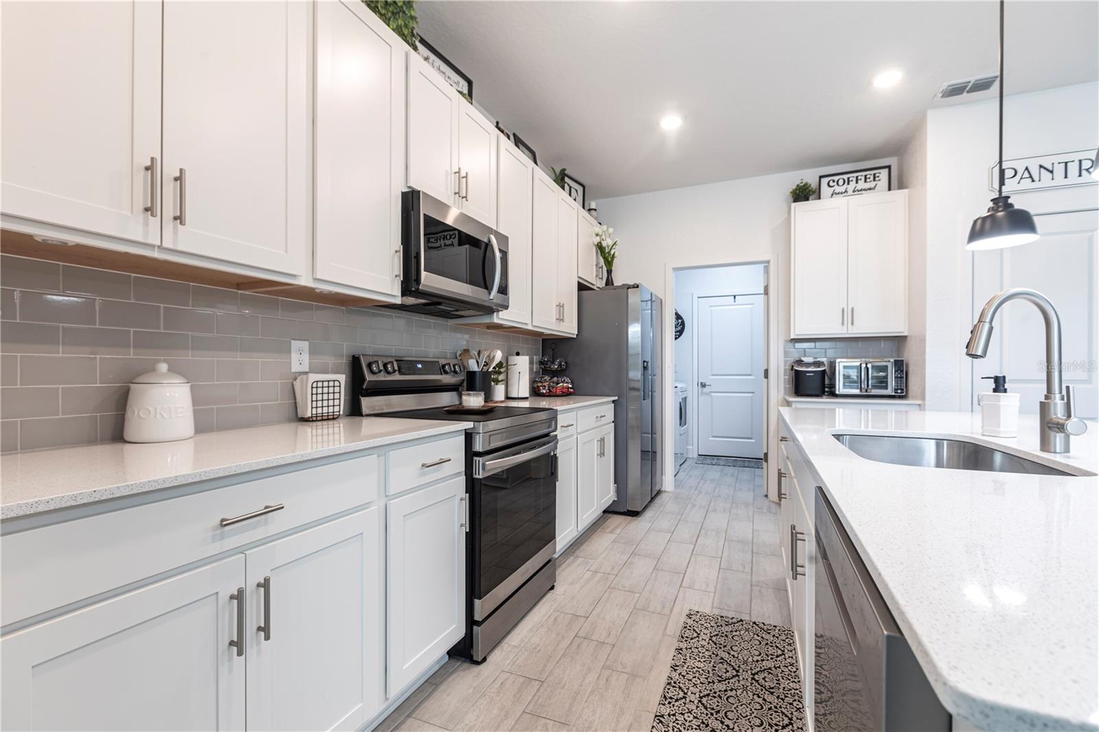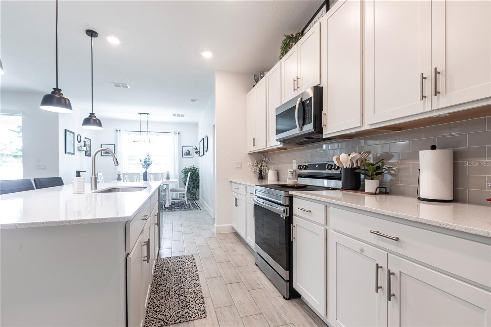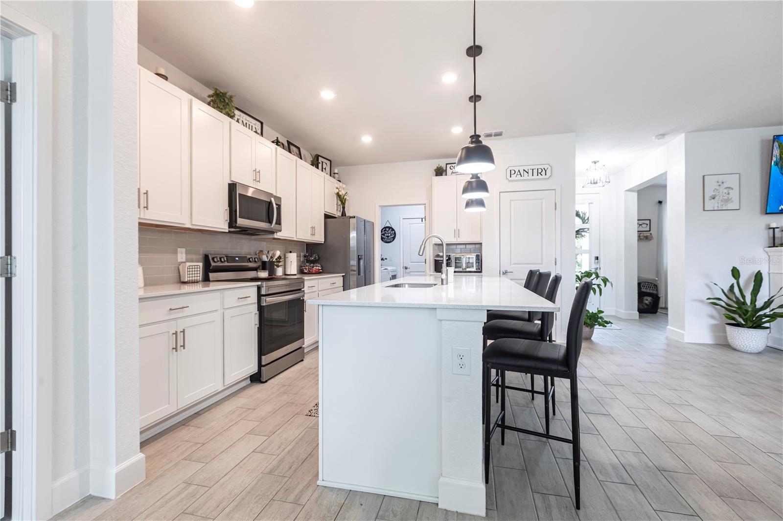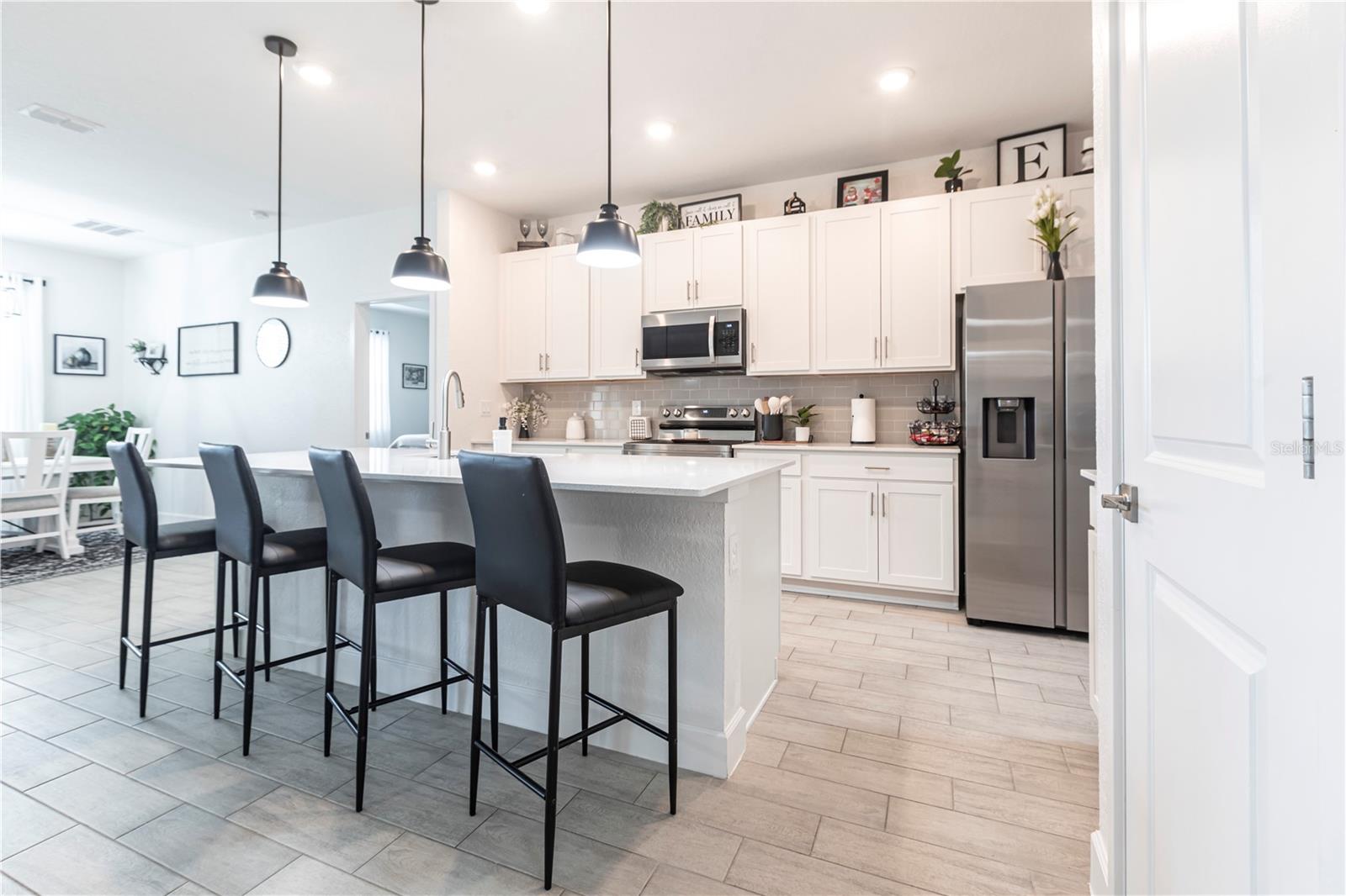 ENJOY A GENEROUS PRICE REDUCTION ON THIS METICULOUSLY MAINTAINED HOME in North Port, Florida. Built in 2022 on a spacious 10,000 sq ft lot, this energy-efficient home offers a stylish open-concept layout with ceramic tile flooring throughout, elegant tray ceilings, and beautiful finishes. The kitchen is a chef’s dream, featuring quartz countertops, a large island for prep and seating, stainless steel Energy Star appliances, soft-close cabinets, and ample storage perfect for cooking and entertaining. The home is equipped with a fully paid solar system, spray foam insulation to enhance energy efficiency, hurricane panels, and additional energy-saving upgrades, providing year-round comfort and peace of mind. Step outside to enjoy the fully fenced backyard, beautifully landscaped with plenty of space for outdoor activities, along with gutters all around the home and a convenient lawn sprinkler system. With no HOA and no CDD, this property offers freedom and flexibility. Conveniently located near I-75, shopping, dining, and parks, this TURNKEY gem is ready for you—schedule your private showing today! BRING ALL OFFERS!