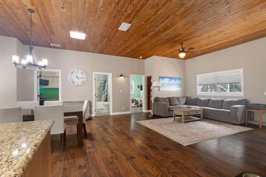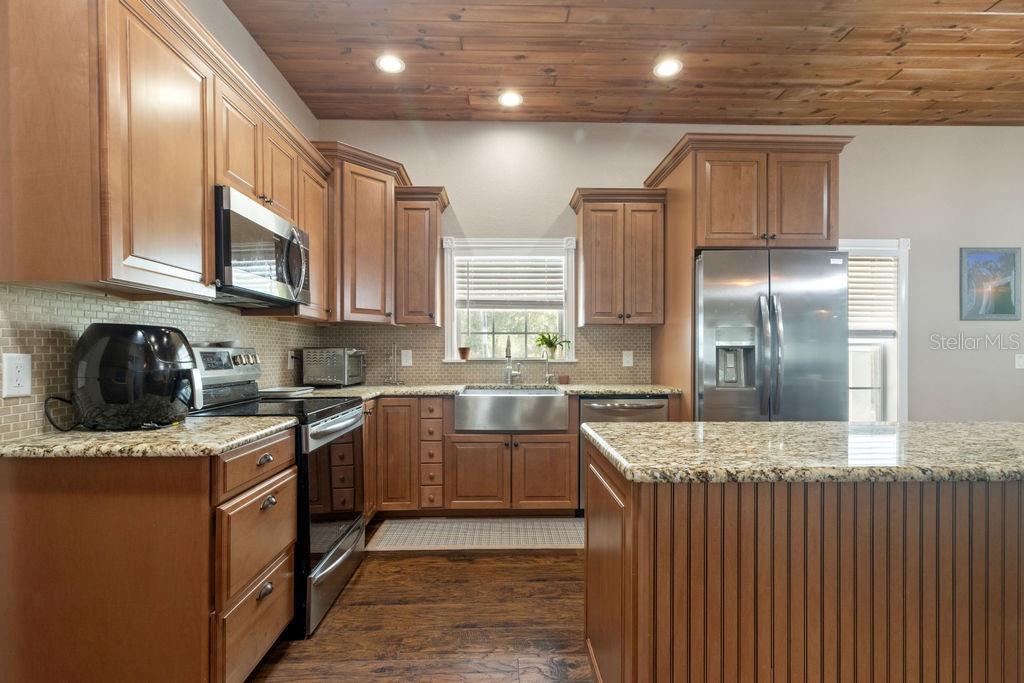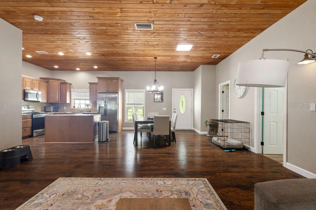 This awesome home on 3.1 fenced acres is waiting for YOU! As soon as you pass through the electric gate you truly will be thinking of all the possibilities. You will enjoy the cleared land for planting a flower or vegetable garden. This non-restricted deed area also allows for animals. No more egg shortages when you raise your own chickens. The animal preference is up to you. If you are into horses or ponies you totally have found a perfect location. There are several parks in the area perfect for walks and horse back riding. The edge of the Myakkahatchee Creek Environmental Park is only 1 mile from this location. The Master Bedroom En suite comes complete with double bowl sinks and shower as well as a spacious closet. Bedroom two & three are on the opposite side of the house and share a Tub/Shower bathroom combo. Having company? That is no problem. Attached to the main house is an in-law suite. This private large room has its own entry and exit door out onto the pool area. I overlooked the gorgeous tongue and groove ceilings and new vinyl wood look floors. Many extras such as a RV garage, chicken coop, and a 30 x 50 workshop. BUT WAIT there's more! Large two story open air barn which you can tailor to your animals needs. You will love the privacy of the North Port Estates with the city amenities. Hope to see you soon!