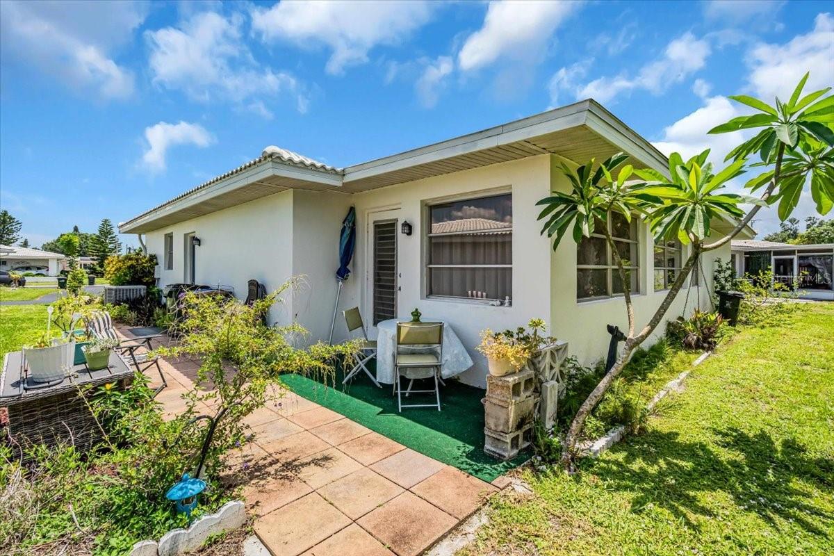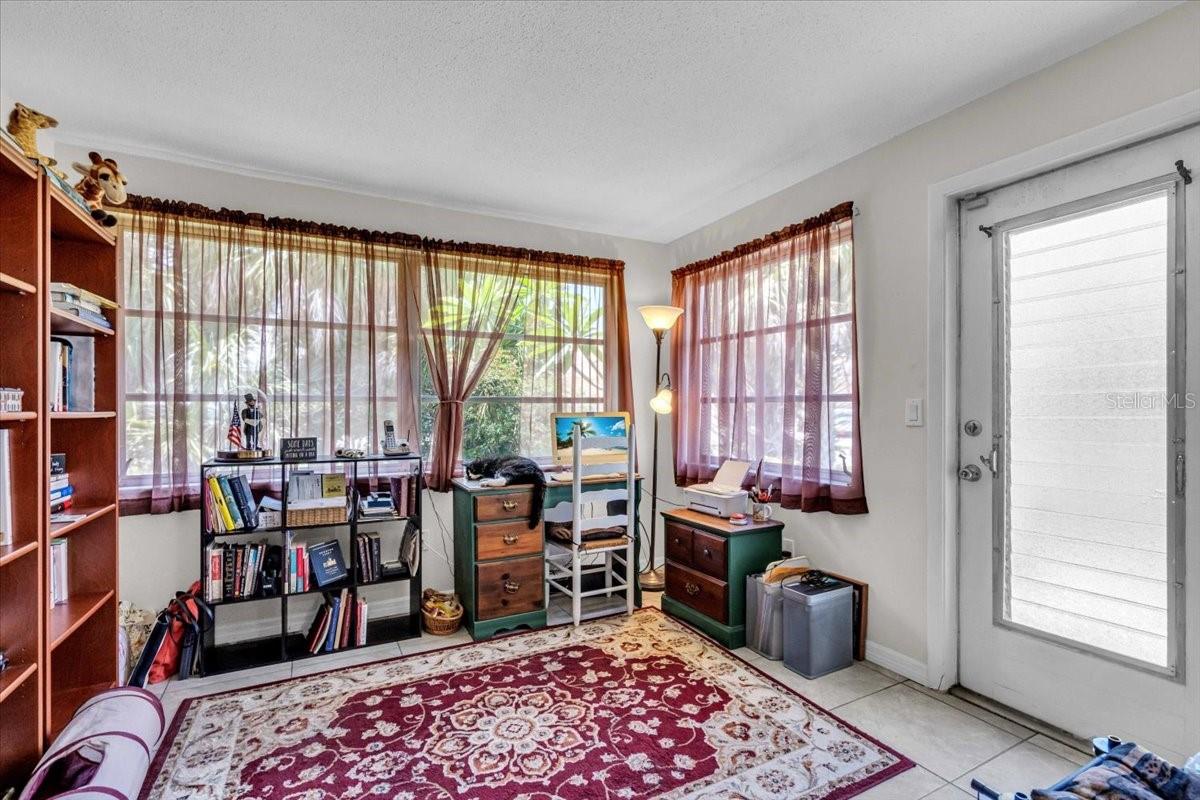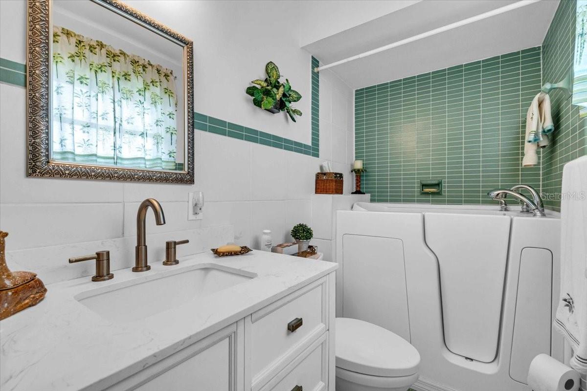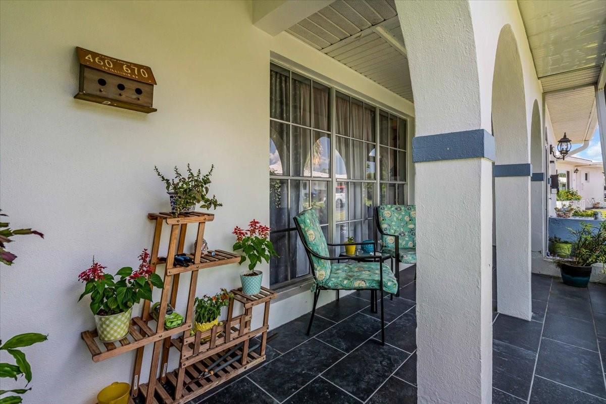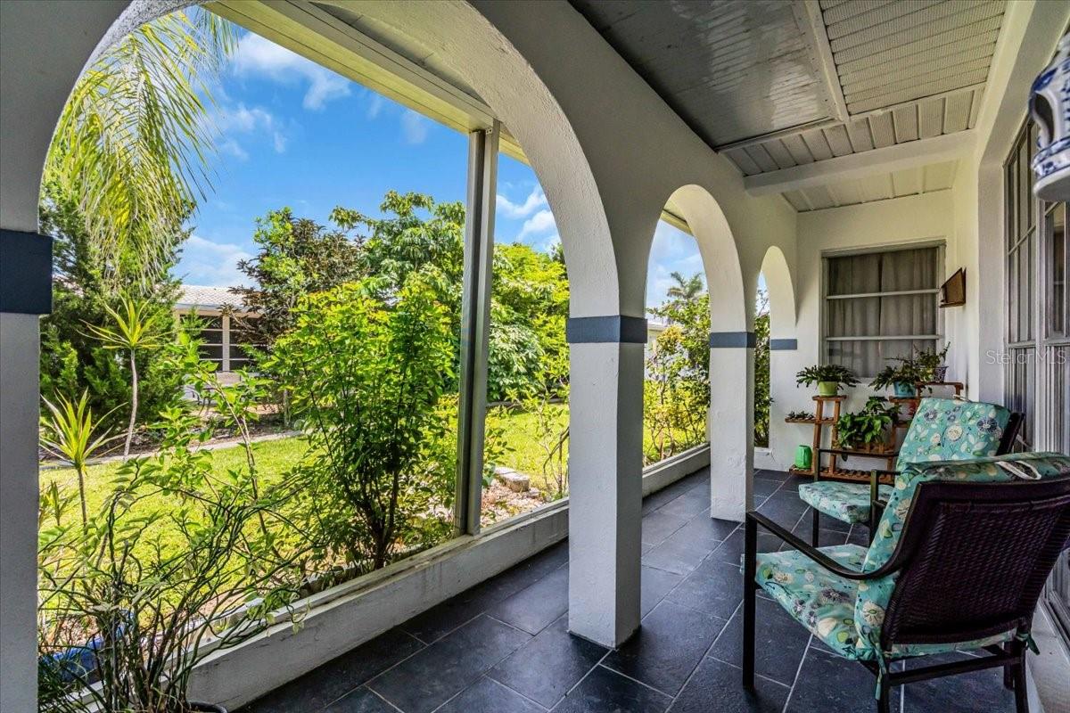 Welcome to one of the largest homes in Leisure Villas West! This home is located on a dead end street and the roads in the community are Private. This home is beautifully maintained and updated, featuring consistent tile flooring throughout. Upon entering, You'll find a spacious screened-in front porch, adorned with arched walls that showcase unique architecture. The home boasts an updated eat-in kitchen, complete with quartz countertops, a stunning glass backsplash, and stainless steel appliances that are included. The refrigerator comes equipped with an ice maker and a filtered water system, along with a deep farmhouse sink and a pantry closet for added convenience. The master bedroom is generously sized, able to accommodate a king-size bed, and includes a large walk-in closet and a jetted tub with shower in the bathroom. At the rear of the home, you'll discover a fully enclosed area that provides additional living space. There is also an outdoor patio area. If you want more privacy the community does allow fences on the property line. Leisure Villas West is a 55+ community located on a private road that is minutes to the world famous Warm Mineral Springs, shopping, gas, restaurants and more. The beaches are within 20-30 min drive. The community features amenities such as a shuffleboard court and a park/picnic area. The HOA fee is only $80 a month, which covers some exterior maintenance, lawn care, common area taxes and insurance, and road maintenance. Utilities are underground and owner states in the last 23 years she has only lost power twice. Unlike other homes in this community this updated home gives you extra living space, a garage, and 2 bathrooms. Schedule a viewing today.