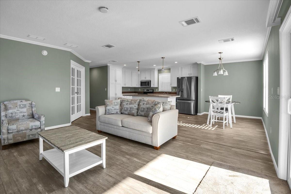 Welcome to this stunning brand-new 2024 Jacobson home, move-in ready and designed with modern comfort in mind. Offering 2 bedrooms, 2 bathrooms, and a versatile den, this thoughtfully crafted home features 1,372 sq. ft. of living space. The inviting front porch adds to its charm, while inside you'll find a bright open layout with wood cabinetry, luxury stainless steel appliances, double pane insulated windows, and a hidden walk-in pantry. Built with today's hurricane codes in mind, the home has 2x6 exterior walls for added durability, plus interior washer and dryer hookups for convenience. Additional highlights include a 12' x 12' golf cart shed with access doors and plenty of storage, along with peace of mind from multiple warranties: 1 year full-service on the home and AC (with 5-year parts), 10-year structural, 20-year shingles, and 1 year on appliances. Financing options are available for qualified buyers. Why settle for used when you can own brand new with warranties included? Located in La Casa, a quiet 55+ community nestled between Sarasota and Fort Myers, residents enjoy a serene lifestyle with natural beauty all around. The neighborhood is filled with mature trees, spacious green spaces, and eight picturesque lakes. Community amenities include two clubhouses, two heated pools, a boat ramp with access to the Gulf of Mexico, a recreation center, and a wide variety of social activities and events. Whether you're looking for an active lifestyle or a peaceful place to relax, La Casa offers the best of both.