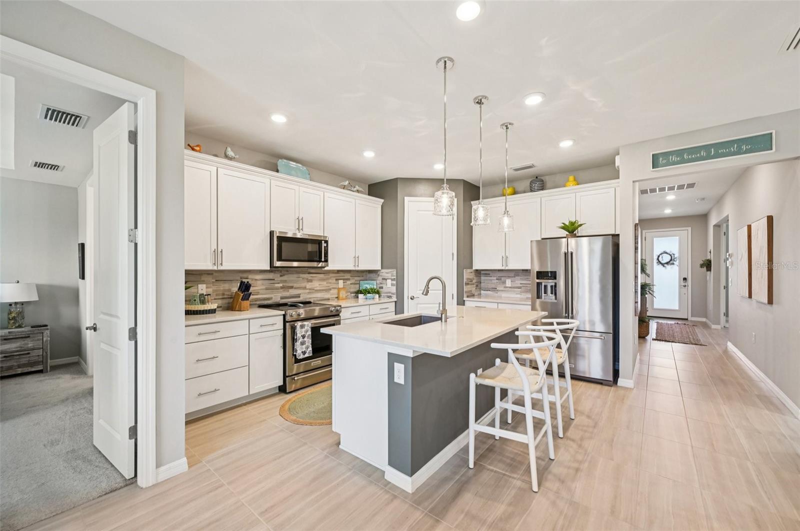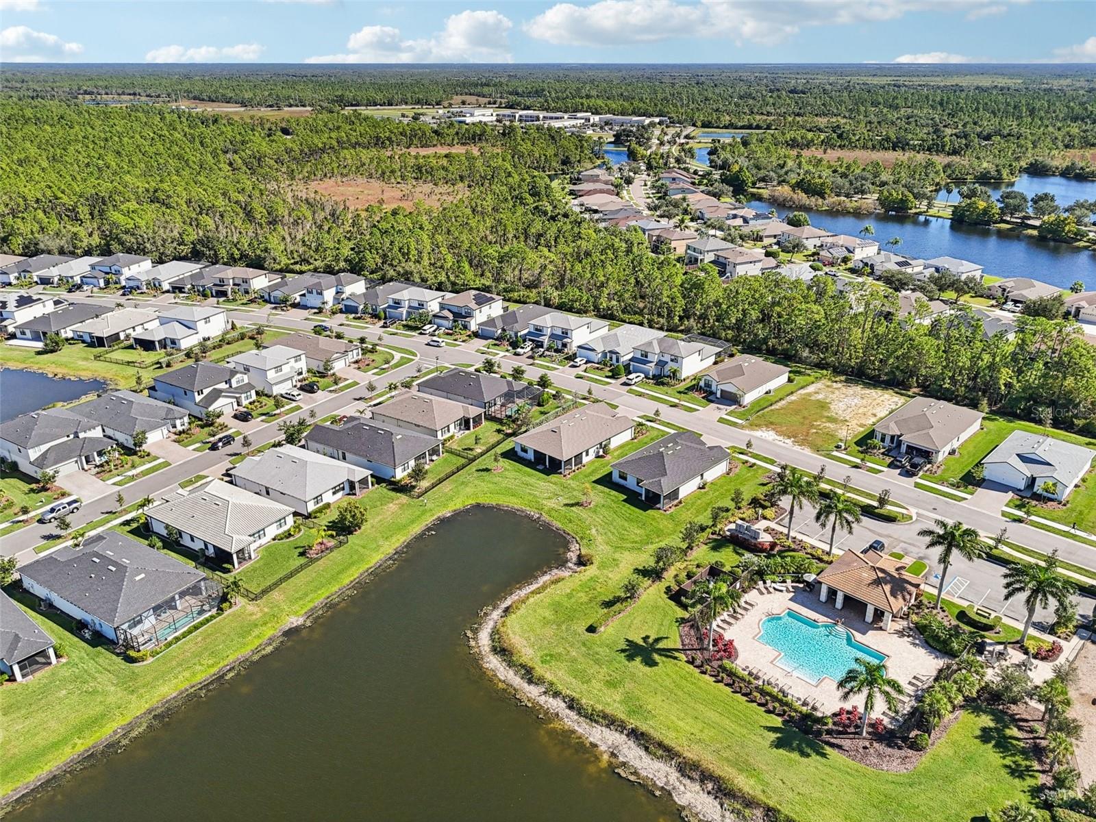 Stunning 3-Bed, 2-Bath 2023 Pool Home on Corner Lot with Water View & Custom Upgrades, ideally situated on a spacious corner lot in a serene, sought-after Cedar Grove Community. Enjoy true Florida living with breathtaking water views right from your backyard, complemented by a sparkling private pool—perfect for relaxing or entertaining year-round. Enjoy no maintenance landscaping, This home features custom Elite Hurricane remote controlled ballistic screens for the lanai area, remote controlled accordion shutter for the front door, and mounted bronze colored accordion shutters for the windows. Home is WIRED for Smart Home application if desired, for ultimate peace of mind and convenience. Zebra custom electric blinds on sliders and dining room windows. The open-concept layout offers abundant natural light, a spacious living area, tray ceilings in living area and master suite and a well-appointed kitchen with modern finishes and ample storage. Attached extended 2-car garage with epoxy floor. Step outside to your private oasis with a screened lanai and pool area—ideal for morning coffee or evening sunsets. Lanai area has water, electric, and vent installed for future outdoor kitchen. Conveniently located near Interstate 75, shopping, restaurants, parks, schools, medical, Cool Today Park, Tampa Bay Rays ballpark, downtown Wellen Park and the beautiful pristine beaches of the Gulf of Mexico! Don’t miss this rare opportunity to own a move-in-ready home with premium features, upgrades and views in North Port, Florida! Schedule your private tour today and experience Florida living at its finest!