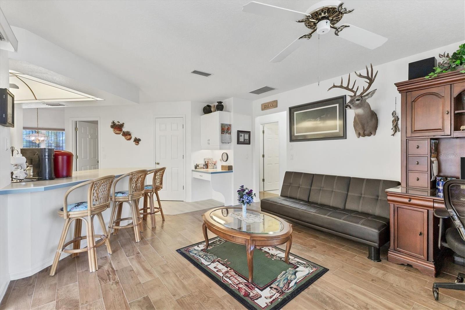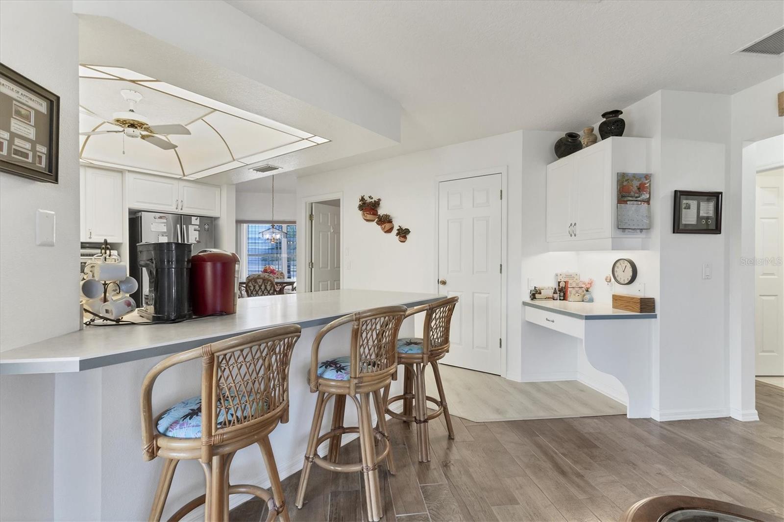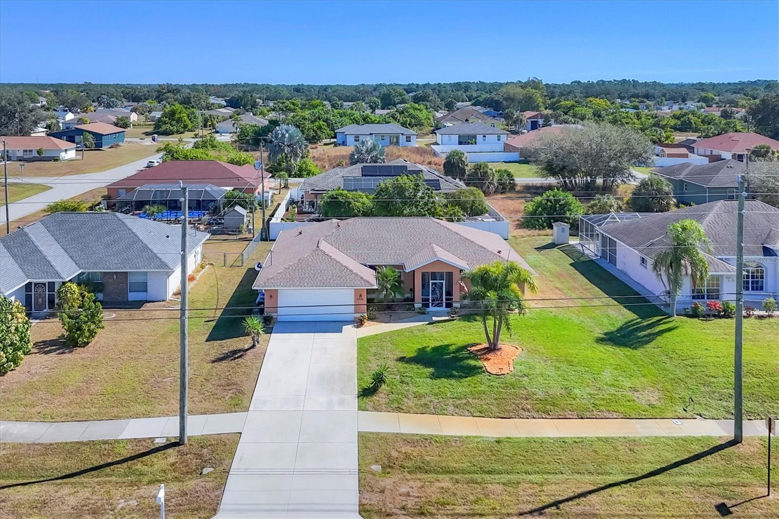 A lovingly maintained 3-bedroom 2-bathroom home in North Port just minutes from Wellen Park activities and shopping without all the fees. Being in an X flood zone will help with insurance costs since this is one of the lowest risk flood zones in Florida and you also have Lexan hurricane shutters for protection on all the windows. You will also benefit from the major items having already been replaced: the roof was replaced in 2021, HVAC in 2018 and the exterior was painted in 2024. The kitchen is white with stainless steel appliances that have been updated: refrigerator 2020, dishwasher 2021, and range and microwave in 2024. The home has public water and sewer and there is a reverse osmosis system in the kitchen for really delicious water. There is hard surface flooring throughout except the primary and 2nd bedrooms. The sellers recently installed Luxury Vinyl Plank flooring in the living room, dining room and kitchen. The large lot is just under a quarter of an acre with plenty of room for pets and toys in the backyard. The front porch is screened as well as the back lanai, so you can leave your doors wide open when the weather allows. You should see this property today to get a total feeling for the benefits it offers.