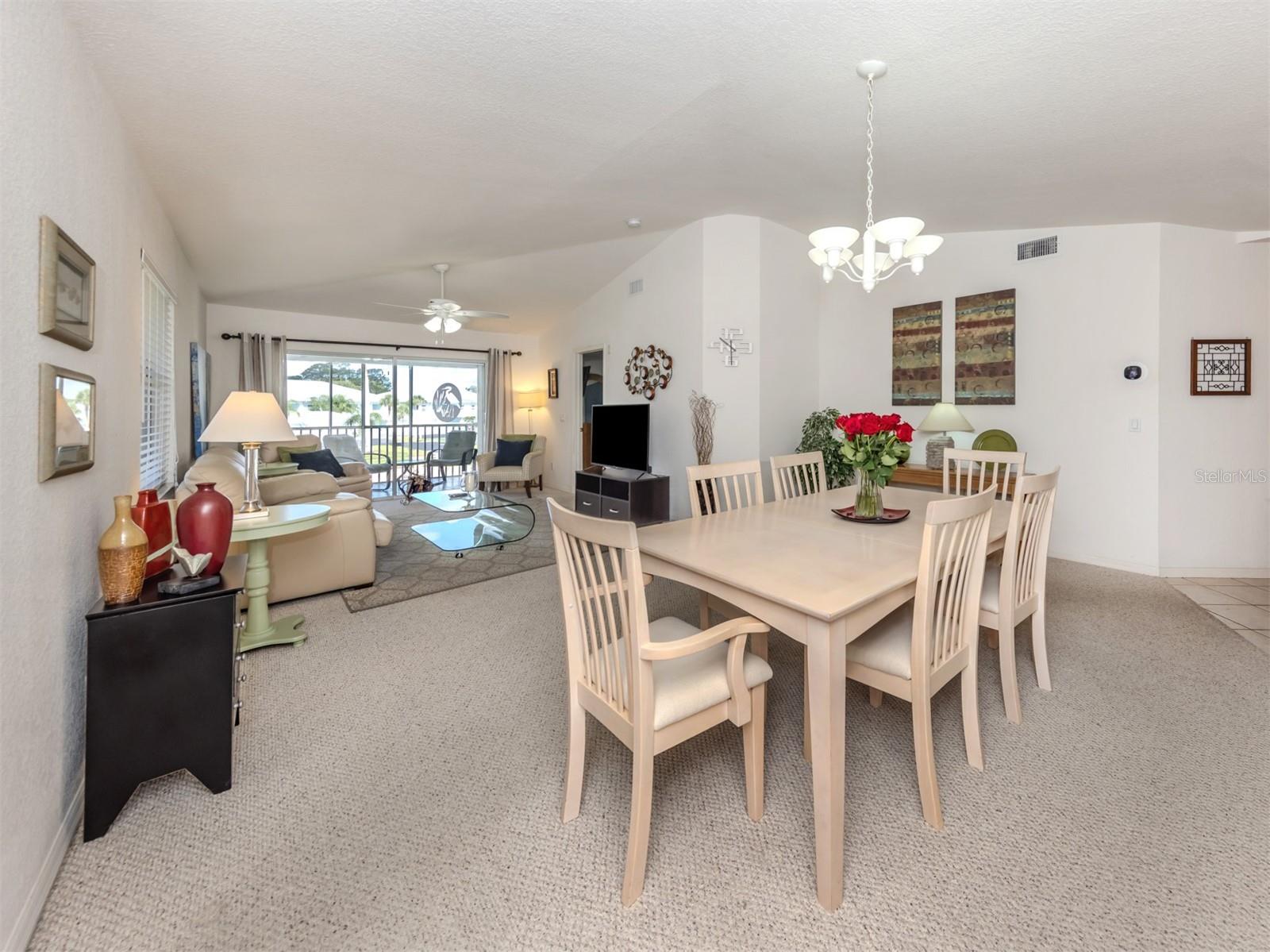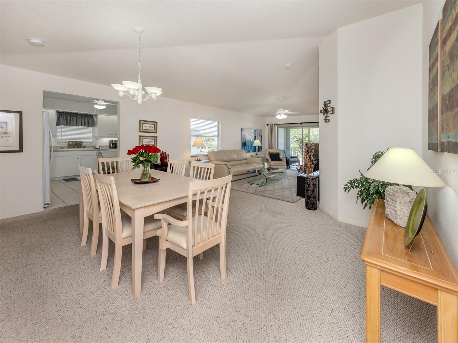 Rarely Available Turn-Key Furnished 3-Bedroom Condo in Gated Linkside at Sabal Trace, an exclusive gated community within Sabal Trace. This 3-bedroom, 2-bath condo offers a bright, open layout that invites easy living and relaxed Florida charm. The large eat-in kitchen provides plenty of space for everyday meals, while the formal living and dining room combination creates an ideal setting for hosting family and friends. An enclosed back lanai offers a peaceful place to unwind, complete with power hurricane shutters for added security and comfort. The spacious primary suite features an ensuite bath with dual sinks, a walk-in shower, and two closets—including a generous walk-in. The guest bedroom comfortably accommodates twin or king-sized beds, and the third bedroom is currently arranged as an office or den. A separate laundry room with a full-size washer and dryer provides additional storage, complemented by multiple indoor and outdoor storage closets perfect for beach gear, bikes, and more. Additional conveniences include an assigned carport parking space directly in front of the unit, with extra parking available for guests. Residents also enjoy access to the community pool and cabana, offering an ideal spot to relax and soak up the Florida sunshine. This prime location places you close to restaurants, shopping, medical facilities, a fire station, the Atlanta Braves Spring Training facility, parks, Warm Mineral Springs, golf courses, and stunning Gulf beaches. Ideal for seasonal or year-round living.