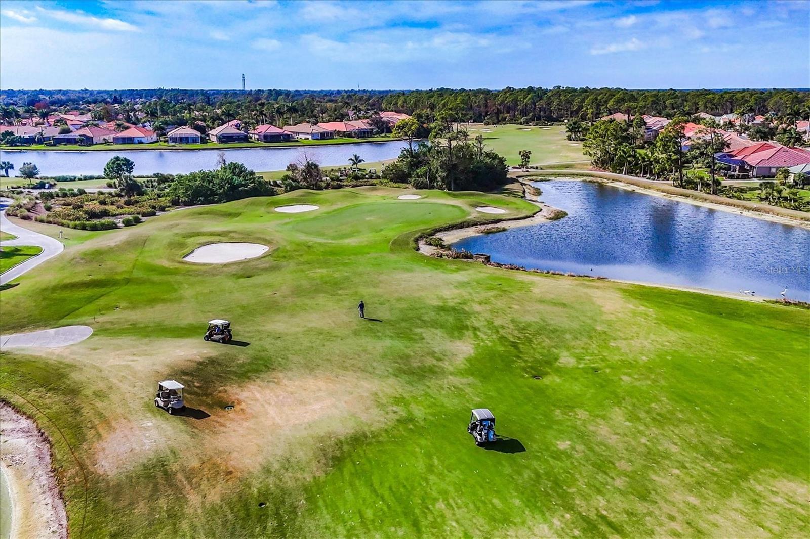Rarely available IBIS STRAND PAIRED VILLA in Heron Creek Golf & Country Club 2 BED/2BATH+ DEN / 2 CAR GARAGE / TURNKEY FURNISHED! With just under 1,800 sq ft of living space— the thoughtfully designed floorplan was crafted to live more like a single-family home.. just envision wide open spaces with lots of elbow room. If you score this one, you may just feel like you hit a hole-in-one! A welcoming front entry (not the typical side entry) with leaded-glass double doors sets the tone for this beautifully maintained one-owner Whitehall villa, delightfully decorated in a casually elegant coastal cottage stylet his home is ready for IMMEDIATE OCCUPANCY. The open, airy floor plan delivers instant “wow” showcasing classic Old Florida views that boast lush tropical landscaping, sweeping sights of the #9 fairway of the Marsh Course, a majestic lake fountain, and the clubhouse beyond. Interior spaces include a spacious great room, formal dining area, and a cozy den/home office with French doors and triple bay windows at the front of the home—ideal as a third bedroom option if desired. The well-designed kitchen anchors the home, connecting seamlessly to the dining room, sun-filled breakfast nook, and great room so the chef is always part of the gathering, and offers abundant cabinetry with back-saving pull-out drawers, classic solid-surface counters, NATURAL GAS is piped to the home so if you prefer to cook with gas that can be a dream come true ! Cascading sliders open to an expansive lanai that blurs indoor and outdoor living and provides room to relax as-is or create your own oasis, envisioning space for a cocktail pool or spa. Guests enjoy a private suite with adjacent full bath, while the primary suite features dual closets including a deep walk-in and an ensuite bath with walk-in shower with glass block detail, dual sink vanity with makeup niche, and linen storage. Peace-of-mind updates include a newer tile roof (2023), gas water heater, and FULL PLUMBING RE_PIPE. She's been gently lived in, meticulously maintained, and filled with warmth, this beautiful villa invites you to move in, relax, and enjoy the legacy of good times and memories made here—now its your your turn to write the next chapter. Super location within the community just a short golf-cart or bike ride from Heron Creek’s 21,000 sq ft clubhouse, 27 holes of Arthur Hills-designed golf, tennis, fitness center, and resort-style pool. .Heron Creek offers exceptional amenities, a robust social activity calendar, & formal & casual dining option! Club Membership is required with 3 membership levels offered beginning at $276/month *NO CDD FEES * LOW HOA FEES include lawn care, trimmings, mulching, irrigation, FIBER OPTIC/ TV/ HIGH-SPEED INTERNET & Gated entry, conveniently located w/easy access to I-75 & US-41, Cocoa Plum Shopping, Myakkahatchee Creek trails, WELLEN PARK, Braves Stadium, COSTCO & will be just 3 miles to the new 507 Million SMH Hospital Coming to I-75 and Sumter Blvd!