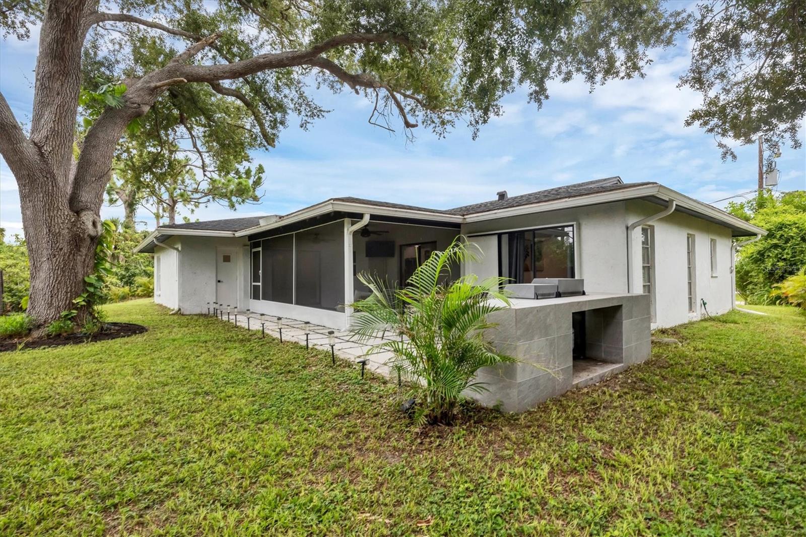 Welcome to your beautifully Luxury remodeled North Port retreat! NO FLOOD ZONE/BLOCK This move-in ready home is loaded with upgrades, featuring BRAND NEW WELL SYSTEM AND BRAND NEW 2023 ROOF brand-new luxury vinyl plank flooring, fresh interior and exterior paint, and a newer 2019 A/C for year-round comfort and peace of mind With updated well pumps. Step into your luxurious bathrooms with beautiful porcelain tile all the way up to the ceilings. Your beautiful one of a kind fire place for year round comfort. Step outside and enjoy true Florida living with a stunning outdoor grill and kitchen setup, perfect for entertaining, weekend BBQs, and relaxing in your own space. The large backyard offers plenty of room to spread out—and with no neighbors behind you, you’ll love the added privacy and quiet this property provides. Even better, this home is NOT located in a flood zone, making it an even more attractive option for buyers. Stylish updates, major improvements, and a private setting—this one won’t last. Schedule your showing today!