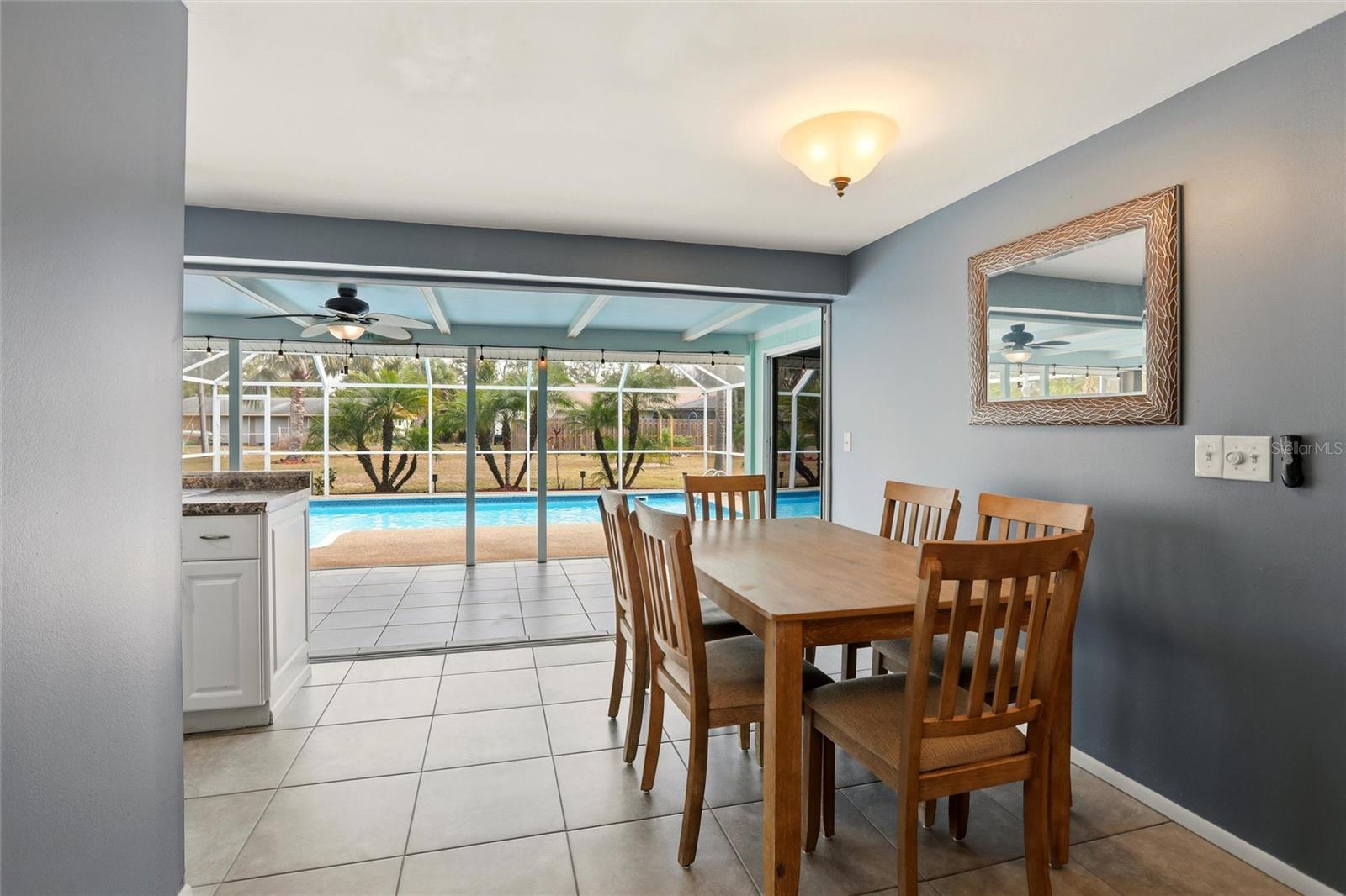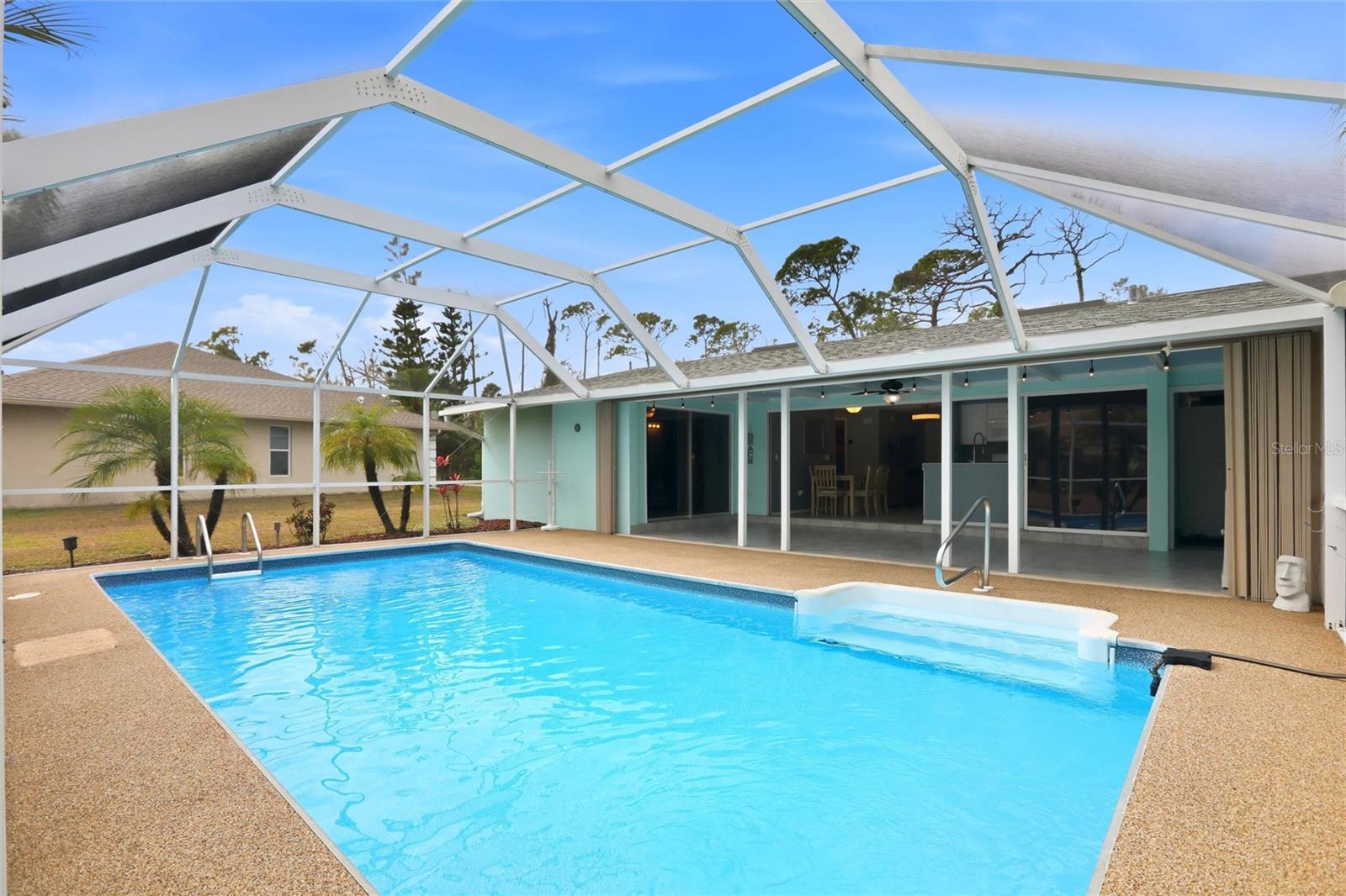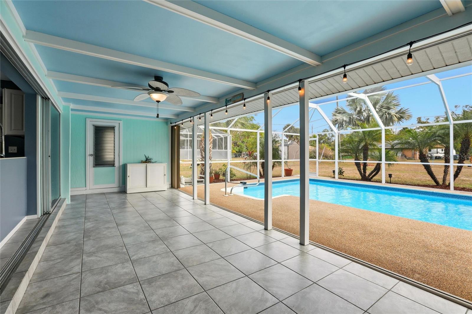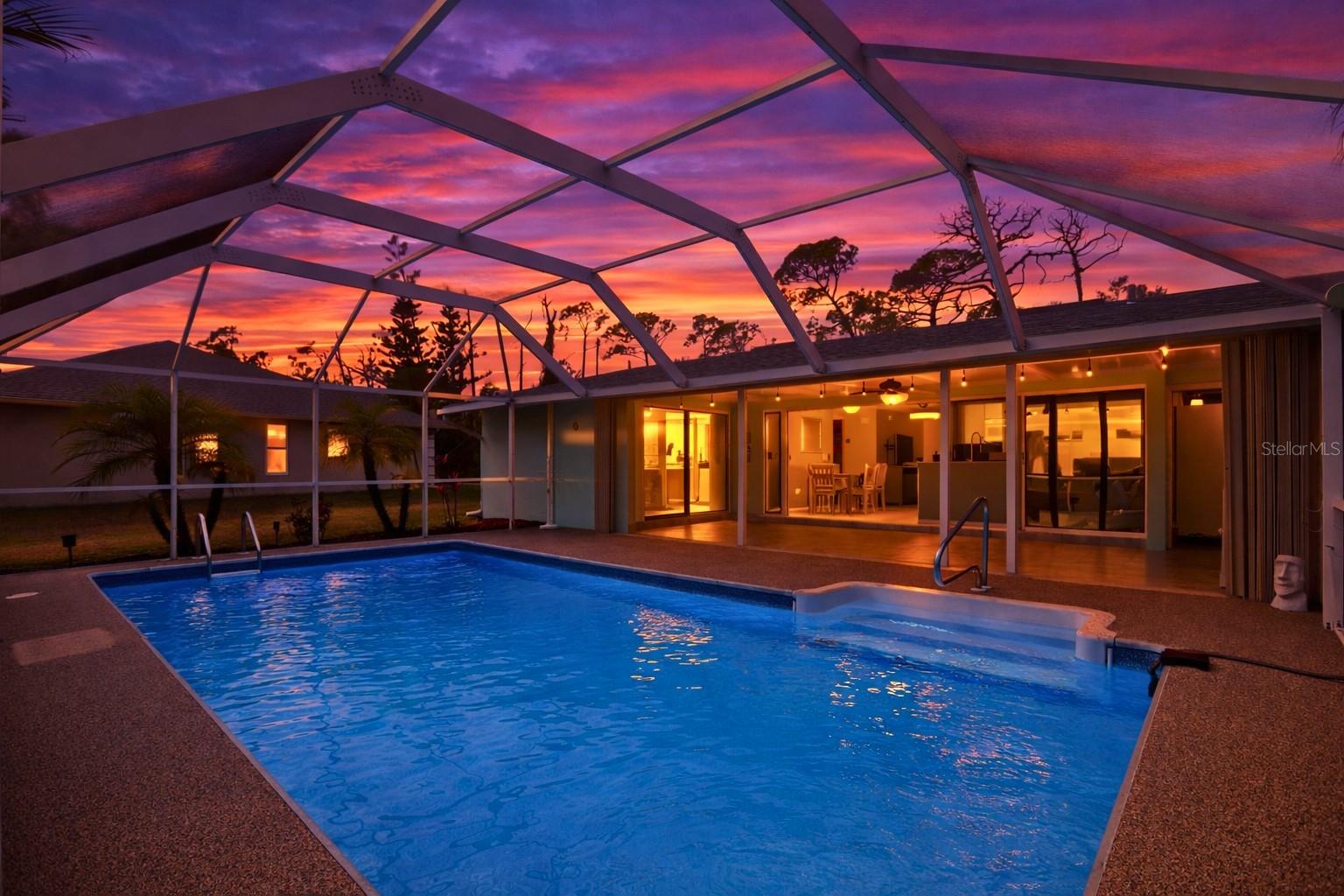 In the heart of North Port, Florida, this clean and attractively turn key furnished 2-bedroom, 2-bath POOL home is an ideal fit for a seasonal getaway, starter home or a retiree ready to make the full time move to Florida. <br /> <br /> This manageable 918 square foot home truly lives much larger thanks to its seamless connection to the large outdoor living areas. Daily living expands with an additional 312 square foot covered lanai and an impressive 30' x 15' screened pool lanai, delivering the indoor/outdoor lifestyle people flock to Florida for. That sense of openness is created by large triple pocketing sliders that span the entire southeast wall of the dining room and kitchen. Open them fully and the doors tuck neatly away, creating an effortless flow from inside to outside for relaxed entertaining or breezy afternoons at home. With the lanai functioning as a true extension of the interior, it’s easy to picture morning coffee, casual dinners, or welcoming neighbors after a day at the beach or on the golf course. <br /> <br /> Inside, the home features an inviting layout with easy-to-clean tile flooring throughout and plenty of ceiling fans for year-round comfort. The updated galley kitchen is conveniently positioned between the main living spaces and offers ample cabinets and drawers along with all appliances, while the adjacent dining area is perfectly sized for everyday meals or casual hosting. The spacious primary bedroom, tucked quietly at the rear of the home, easily accommodates a king bed and additional furniture, with a nearby full bath for added convenience. A second bedroom works beautifully as a guest room or home office and is located close to the second bath, creating a functional split-style feel. Rounding out the interior is a dedicated laundry room with extra utility and storage space. There’s an attached carport to the home that has been converted into a screened storage space, a flexible bonus area that can easily be converted back to a carport if desired. This creates great flexibility for owners who want space for bikes, beach gear, a workshop setup, or to keep their vehicle out of the sun. <br /> <br /> Outside, the screened pool enclosure, hosting a sparkling keeps pool days low-maintenance and enjoyable, and recent improvements make it even more turnkey, including new pool screens (2025) and a newer pool liner. While the recently painted exterior and lanai adds beautiful curb appeal. Practical upgrades support easy-living, including kitchen updates (2015), new roof (2022), A/C (2018), water heater (2017), pool pump (2019), interior paint (2020–2021). Add to it easy to use attached accordion hurricane shutters, an installed Arlo security system, city water and sewer, and the freedom of no HOA or CDD fees, and you’ve got a simple, comfortable home base designed for the Florida lifestyle—whether you’re here for the season or here to stay.