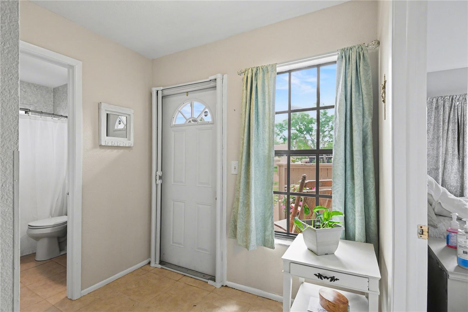Welcome to this beautifully updated, freshly painted, 2-bedroom, 2-bath villa in the desirable Fairway Villas community of North Port, conveniently located just off Sumpter Boulevard near Coco Plum Village Shops and Publix at Heron Creek. Lovingly owned and thoughtfully updated by the same family for generations, this home blends timeless care with modern style. Designed with both comfort and functionality in mind, this main-floor residence offers effortless living with no stairs, an open-concept layout, and features that support ease of mobility. The heart of the home is a stunning nautical blue designer kitchen featuring soft-close cabinetry, custom slide-outs for spices, cookware, and baking essentials, a full pantry, granite countertops, stainless steel appliances, and a charming serving bar that opens to a cozy dinette area, perfect for both everyday living and entertaining. Step into the inviting living room where vaulted, beamed ceilings create a sense of openness, while barn doors and soft neutral finishes add character and warmth. Natural light fills the space, enhancing the airy feel and making everyday living both comfortable and accessible. This thoughtfully designed layout offers two primary suites, ideal for multi-generational living or hosting guests with ease. Both bathrooms feature walk-in showers for added convenience and accessibility. The main suite is a true retreat, boasting a custom-designed closet worthy of any fashion enthusiast and a spa-inspired bathroom complete with a tiled walk-in shower and smart toilet. One of the standout features is the expansive 300-square-foot tiled lanai, an incredibly versatile space that can serve as a home office, den, or peaceful sanctuary to relax, unwind, and enjoy birdwatching with your favorite evening drink. Additional highlights include a reserved parking space just steps from your front door and the peace of mind that comes with no damage from recent hurricanes Hurricane Ian or Hurricane Milton. Recent upgrades include a new electric panel (2022), water heater (2022), and a fully remodeled kitchen with updated lighting and appliances. This is more than just a home,it’s a thoughtfully designed space offering comfort, accessibility, and easy Florida living.