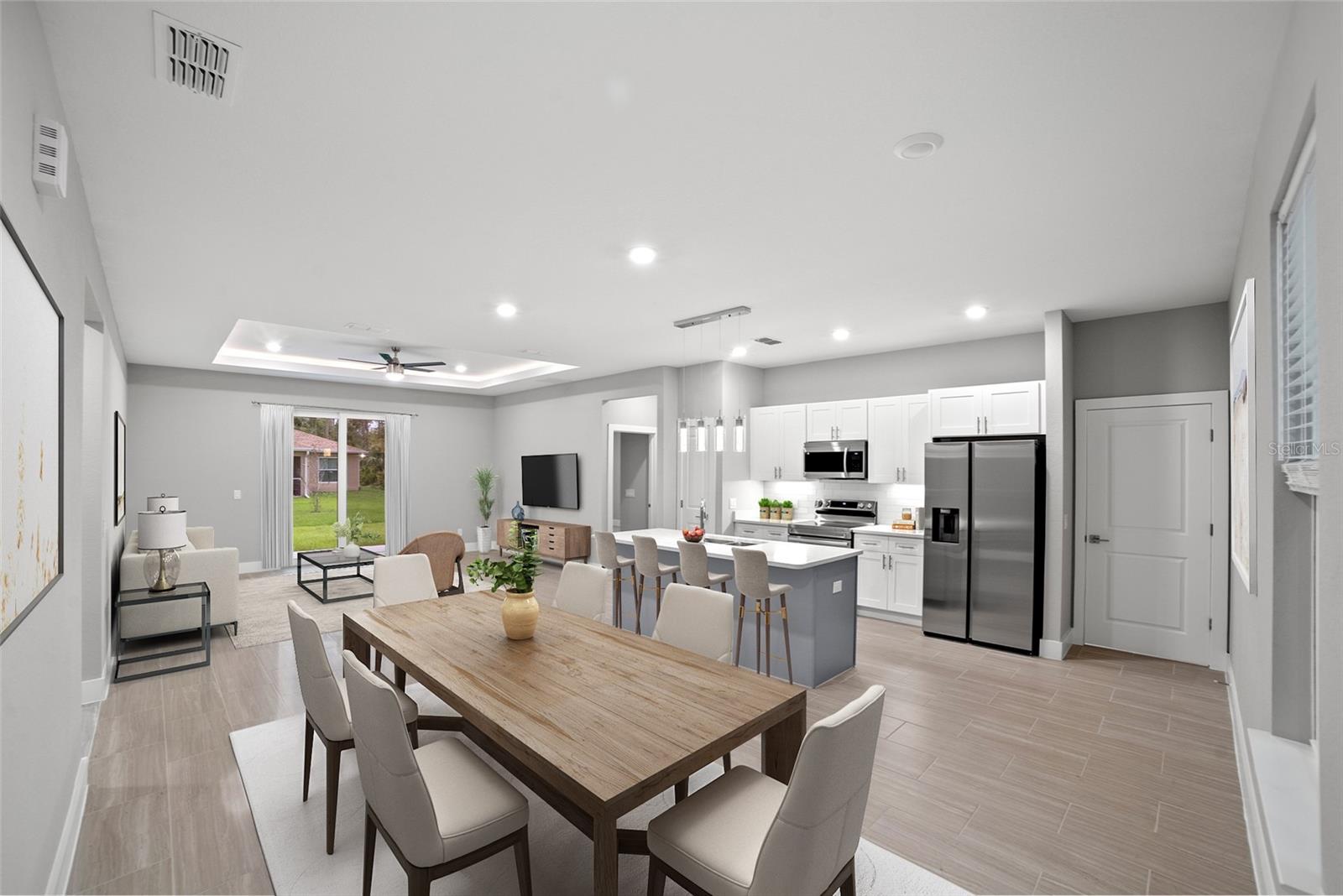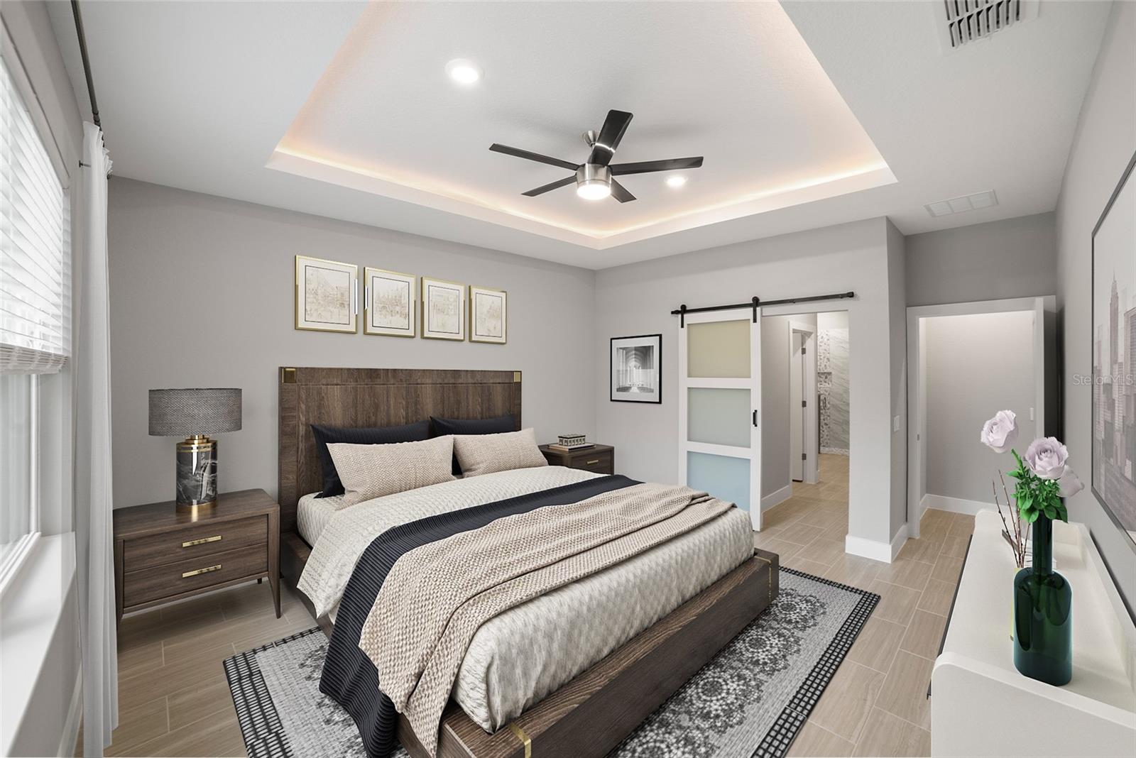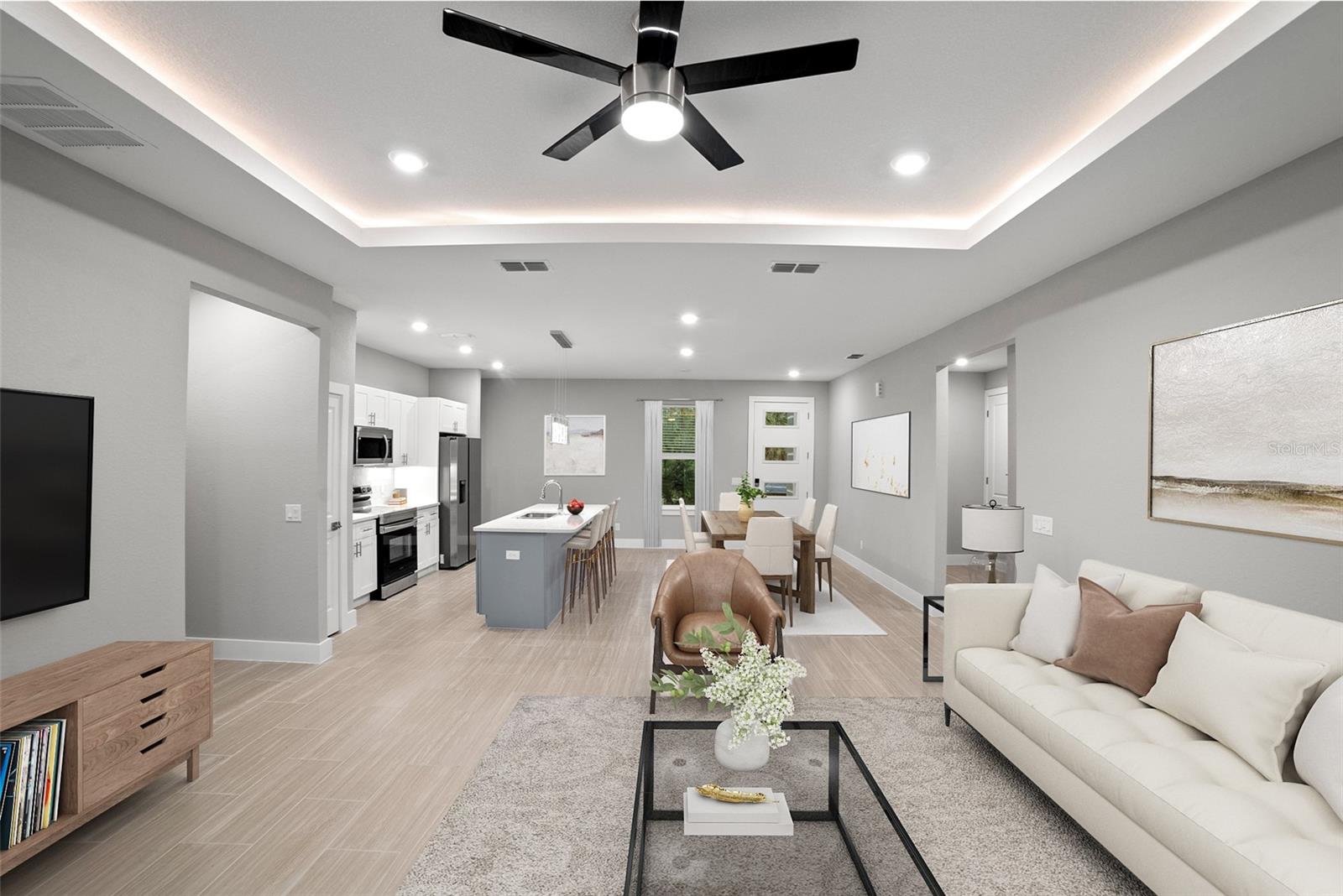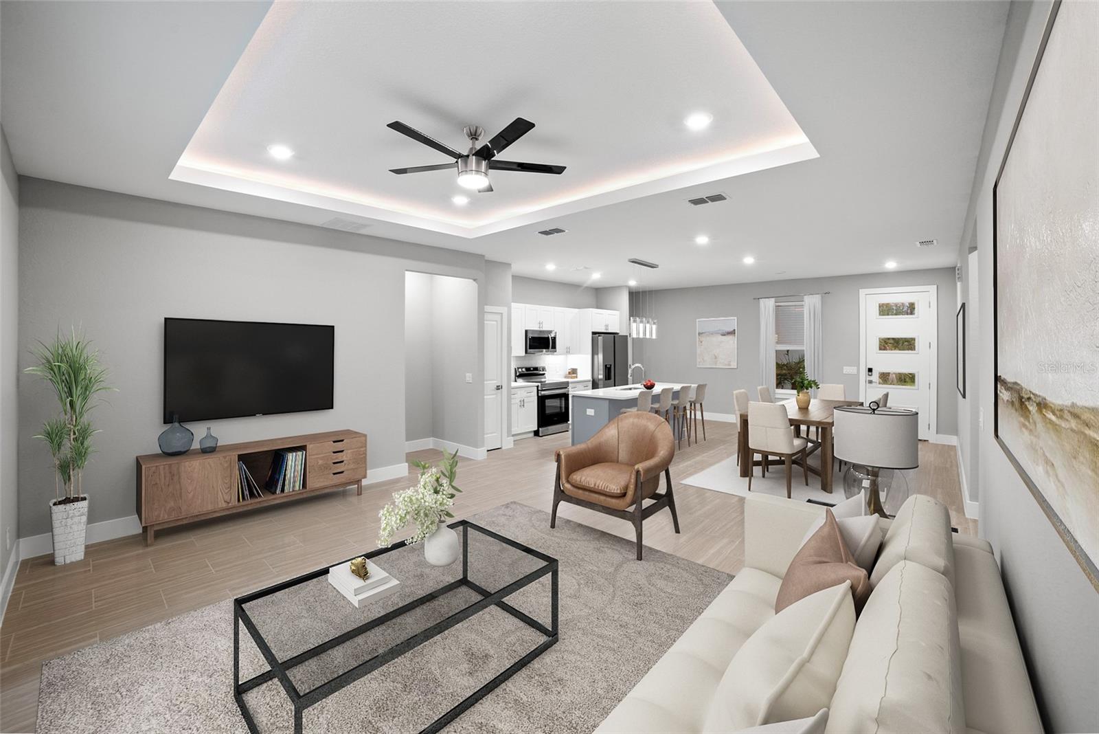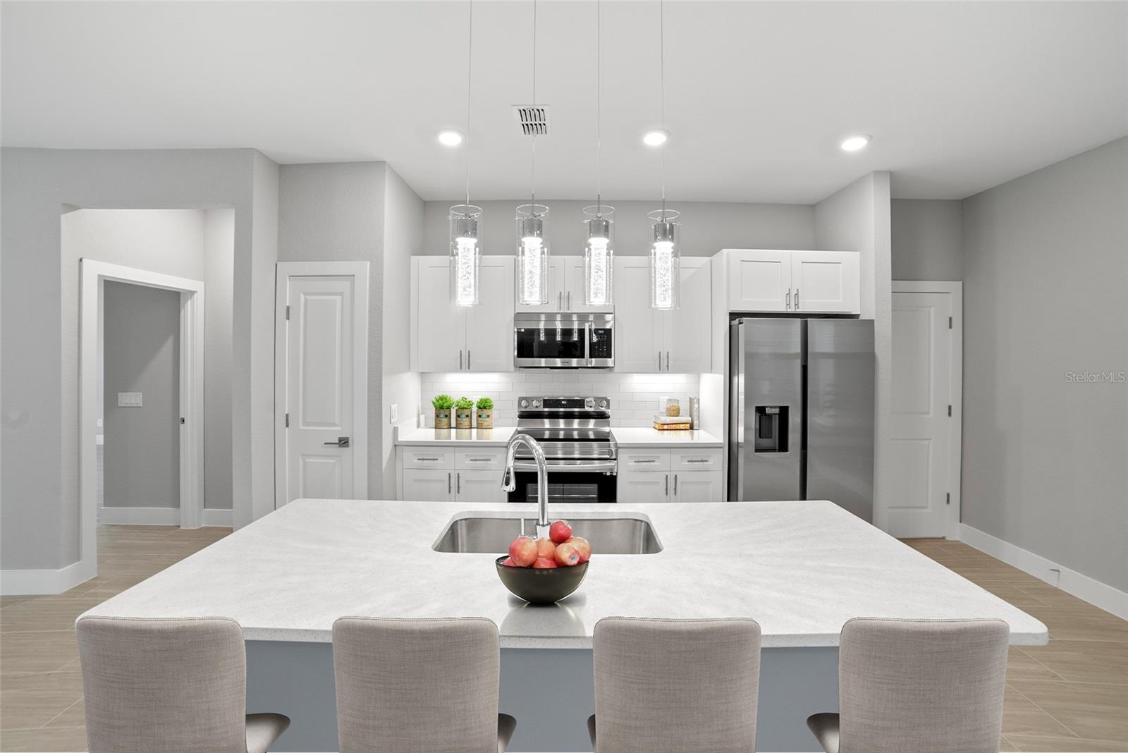 Pre-Construction. To be built. Welcome to the epitome of modern living in our stunning 2000 Model! We invite you to experience unparalleled sophistication from the moment you step through the impressive 8 ft front door. Revel in the seamless flow of this open-concept, split bedroom floor plan. Indulge your culinary senses in the kitchen, where quartz countertops topped with a flawless glass backsplash cover the solid wood cabinets with soft-close doors and drawers. The expansive, two-toned gray island steals the spotlight, complemented by designer LED pendant lights and under cabinet lighting that add an extra layer of sophistication. A full stainless steel appliance package and ample counter space make this kitchen a haven for culinary enthusiasts. Get ready to be captivated by the master suite, featuring a spacious bedroom with an inviting LED-illuminated tray ceiling, a walk-in shower, and a double vanity with quartz countertops. Every detail in this home exudes luxury, with all the extras already included. No need to worry about upgrades – they're all here, sparing you the hassle and cost. Showings are available by appointment only, ensuring a personalized experience. Contact our call center today to schedule your private tour. Please note that the photos provided are for illustrative purposes, offering a glimpse into the exemplary finishes and floor plan of this remarkable home. Your dream home awaits – make it yours! (photos may not be exact - only an example of finishes and floor plan)