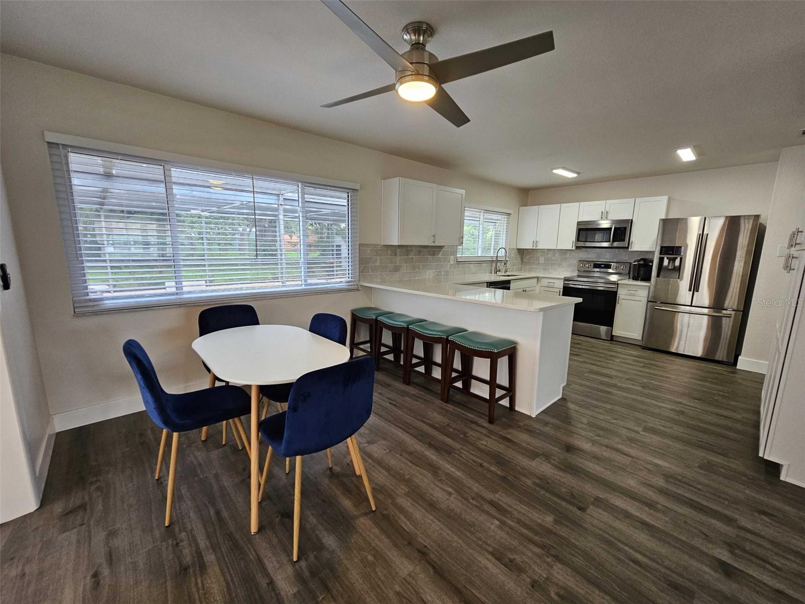 Move-in ready beautifully renovated and furnished home in the heart of North Port and minutes from everything! This 3bd/2ba/1car garage large/light/bright house has a spacious living room area and a nice sized BRAND NEW modern kitchen with countertop seating. This house has been renovated throughout including NEW screening pool cage, NEW pool pump/filter(2023), NEW roof (2023) NEW air conditioner (2024)and brand NEW interior updates, including shaker style kitchen cabinets, newer stainless appliances, quartz countertops, updated bathrooms, LVP flooring throughout, garage door opener, freshly painted garage floors, freshly painted interior and many other updates. This property, which is sold furnished, is ideal for those looking for a comfortable and well-maintained home in a peaceful neighborhood. Do not let this gem away!
