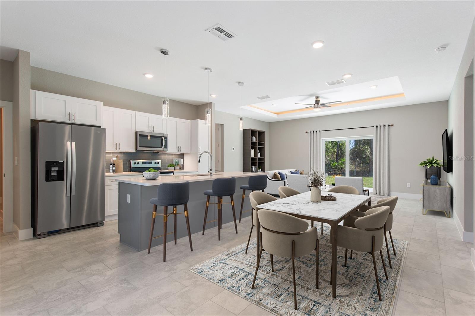 One or more photo(s) has been virtually staged. Introducing the stunning 1717 Model- a modern 4-bedroom, 2-bathroom home designed for comfort and style. With high ceilings and an expansive living area, the 1717 Model offers a bright, inviting atmosphere perfect for both relaxation and entertaining. The home features sleek tile flooring throughout, along with ceiling fans in every bedroom for added comfort. Built with hurricane rated, impact windows and doors, you can enjoy peace of mind in any weather. The contemporary roofline and stylish window design set this home apart, making it as unique as it is affordable. Experience a lifestyle that fulfills all your desires while becoming the envy of your neighborhood. This home is new construction and will be complete in February 2025.