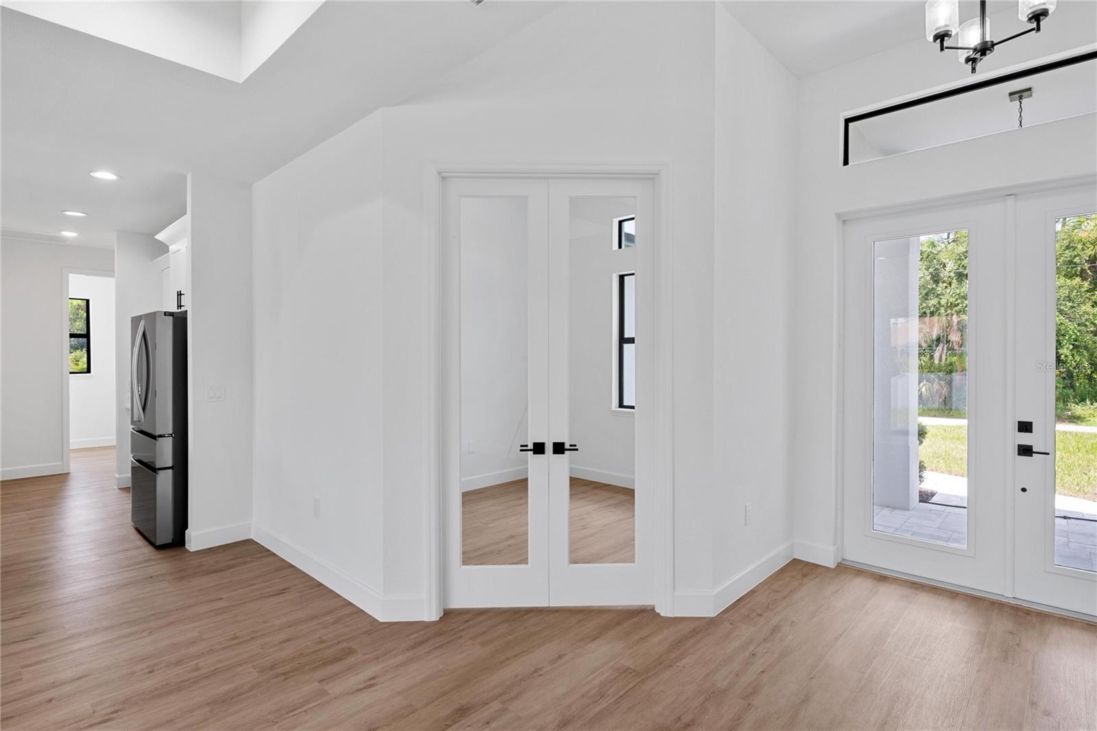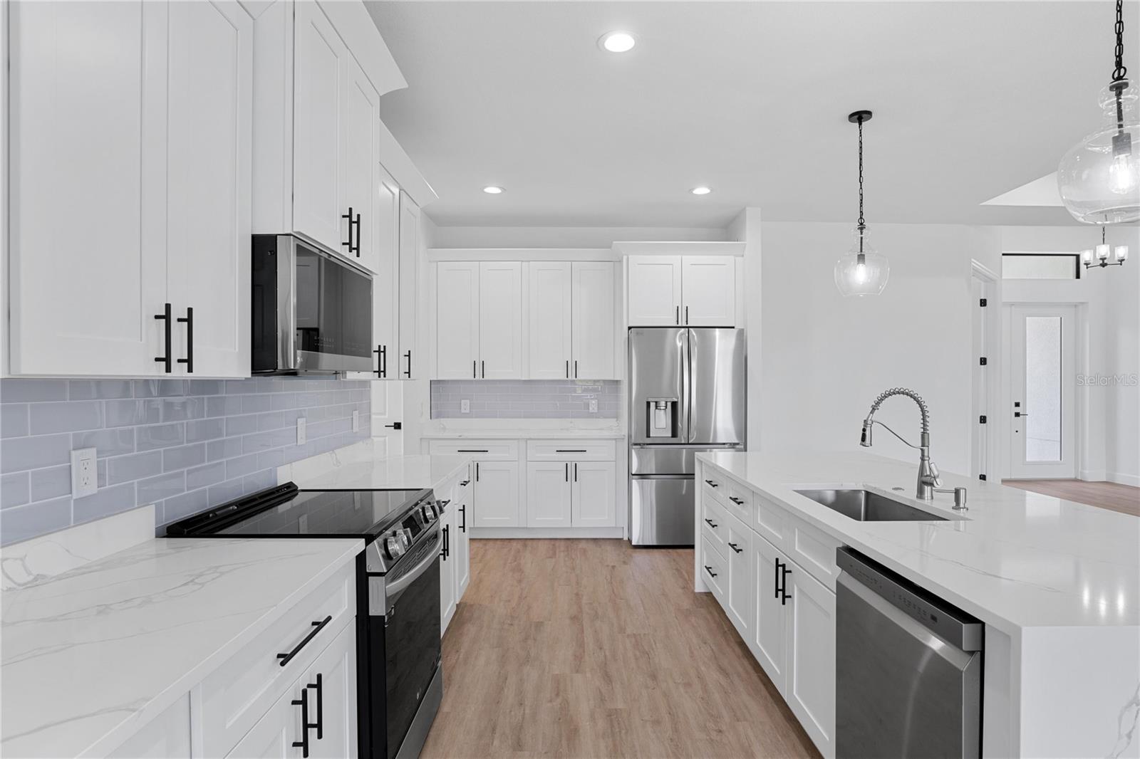 MOVE-IN-READY, NEW CONSTRUCTION" Corner Lot with 3 bedroom, 2 bathroom ( office!) You're going to love all of the high-end finishes that were chosen with luxury in mind. From paver driveway to ALL IMPACT doors and windows. As you enter the home you're immediately greeted by High Ceilings and a large triple Impact Slider that draws your attention to the oversized lanai featuring a large backyard. You'll love the oversized 10ft island in your beautiful kitchen with upgraded stainless-steel appliances and a pantry for all your culinary needs. Your main bedroom features high ceilings and walk-in closet with a master bath featuring double showers with glass and two modern vanities. Of course, we have to mention the upgrades that make this home unique: upgraded appliances package, expanded hall ways, trey ceilings, plumbing for outdoor kitchen, recessed A/C unit in garage, extended garage to fit any size car / truck, glass doors in den, Nest thermostat are just a few of the luxurious features and the list goes on and on.