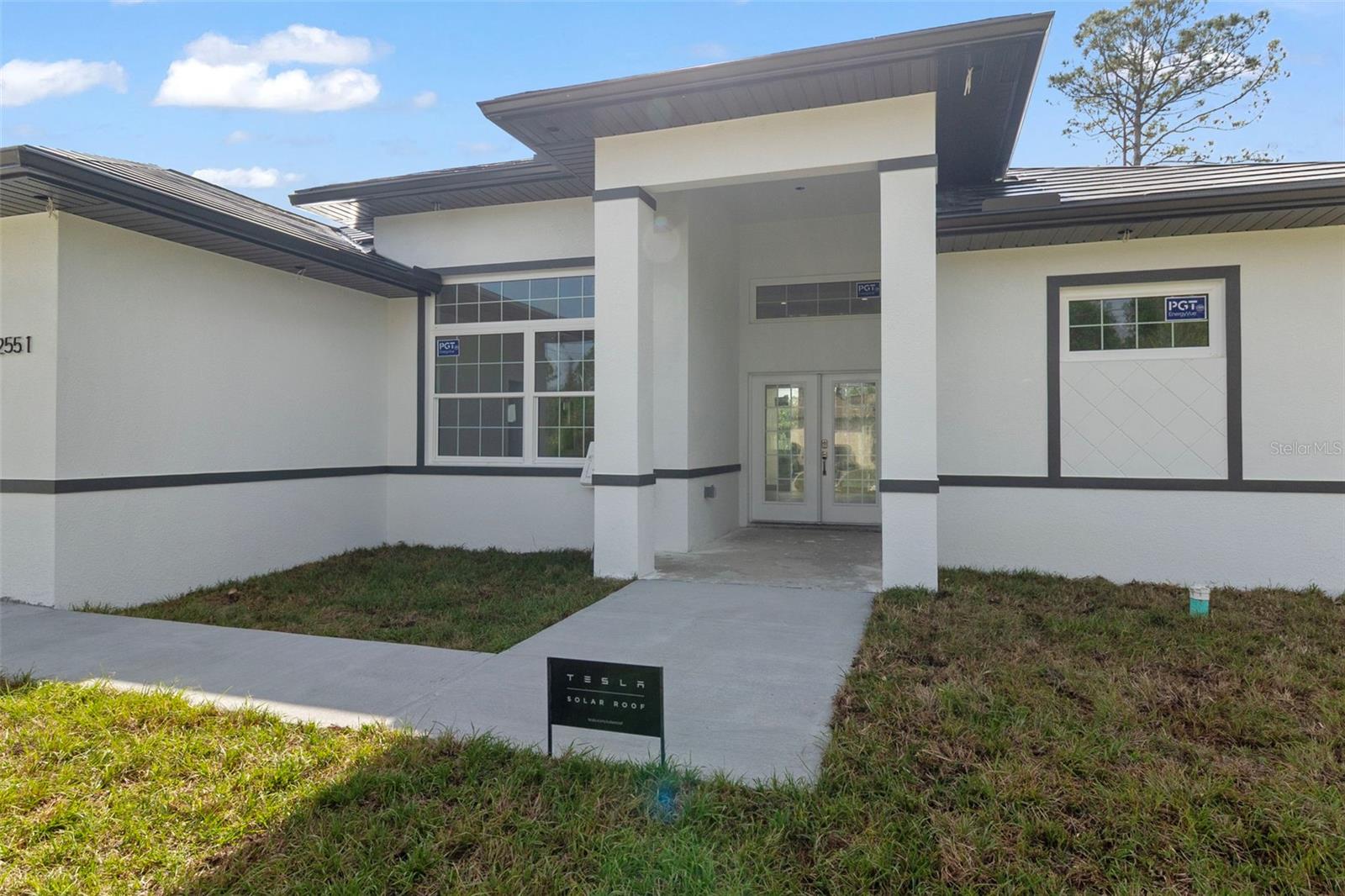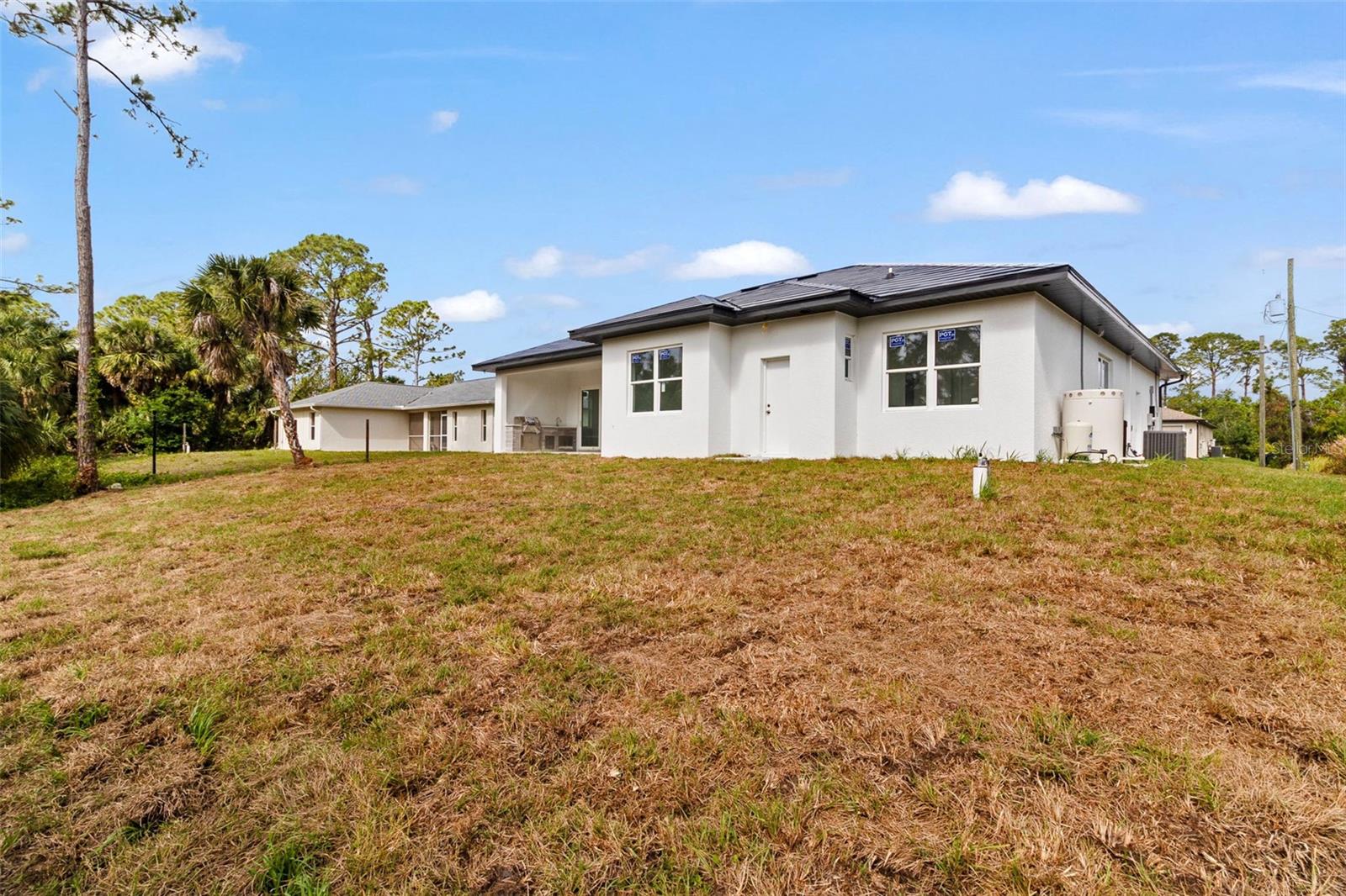 Under Construction. Great incentives - Seller credit up to 12,000 to be used towards closing cost or rate buy down. Beautiful home for sale in North Port, FL, featuring 4 bedrooms, 2 bathrooms, a gourmet outdoor area, and cutting-edge technology that offers savings and an exceptional lifestyle. This property includes an 8kW Tesla solar roof, providing an average of $200 monthly savings on electricity bills, with integrated solar tiles backed by a 25-year warranty. It also features a private well for water, eliminating water bills, and a smart energy panel that allows real-time monitoring and remote control of energy usage via smartphone, offering greater safety and efficiency. Located in one of the fastest-growing cities in Florida, known for its outstanding quality of life, proximity to Gulf Coast beaches, natural parks, and warm mineral springs. Best of all: no HOA and no CDD, giving you more freedom and lower monthly costs. A unique opportunity for those seeking comfort, technology, and savings in a highly desirable area**Ask about our preferred lender program