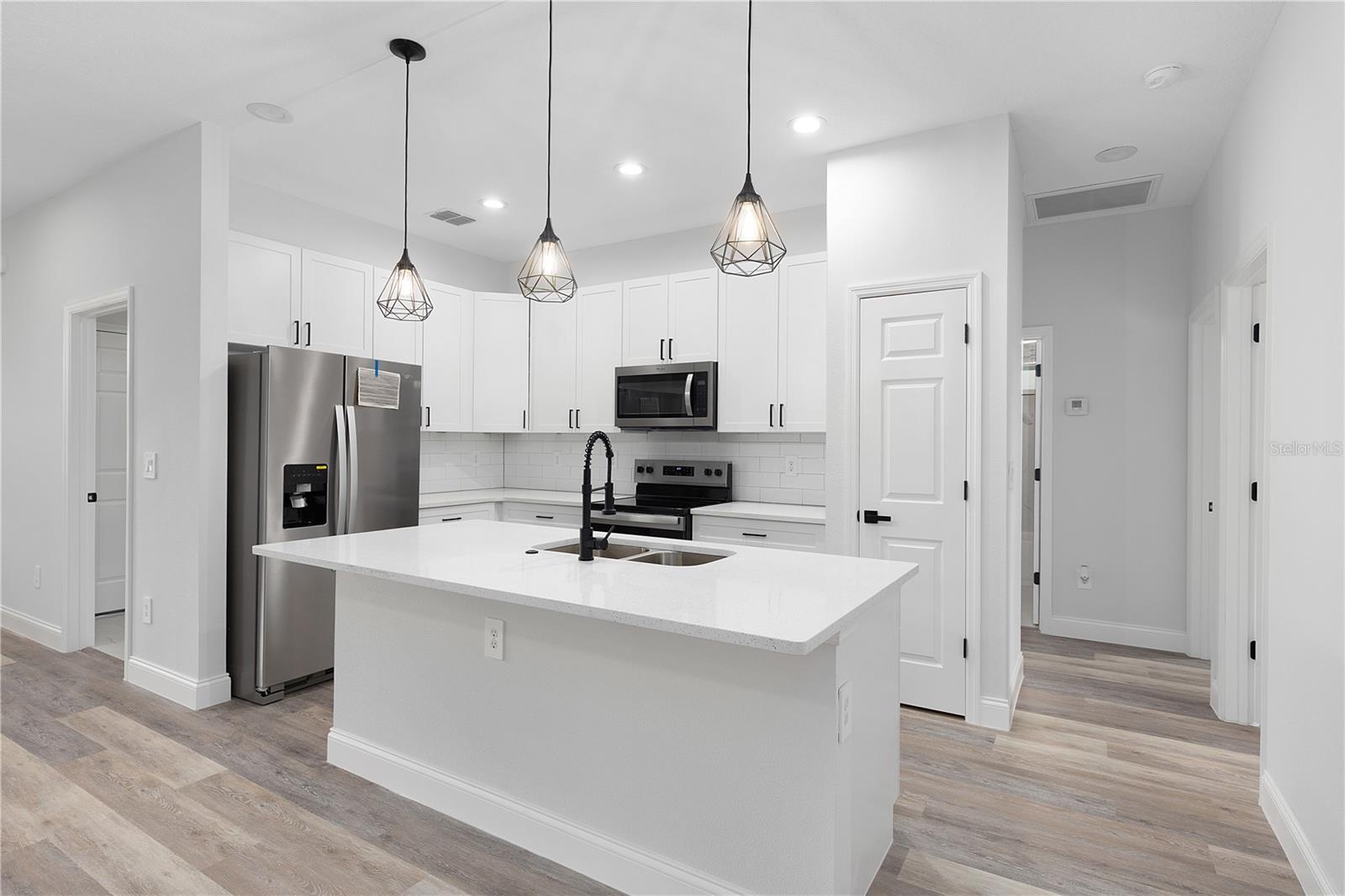 MOVE IN READY! Welcome to your new home in the heart of North Port! This spacious 4-bedroom, 3-bathroom residence offers a smart and stylish layout perfect for everyday living. You’ll find durable vinyl flooring throughout the main areas and ceramic tile in the bathrooms and laundry room for added convenience. The open floor-plan features high ceilings that create a light and airy feel, and French doors lead out to a large 243 sq ft covered lanai, ideal for relaxing or entertaining. The kitchen is thoughtfully designed with quartz countertops, ample cabinet space, and a functional layout that opens to the living and dining areas—great for both cooking and connection. This home also features a split-bedroom floor-plan, offering privacy for family members or guests. The 2-car garage provides secure parking and additional storage space. Situated in a growing area of North Port, this home is close to everything you need. Enjoy nearby Cocoplum Village Shops, Warm Mineral Springs, and a variety of dining and entertainment options. Outdoor enthusiasts will appreciate the proximity to Myakkahatchee Creek Environmental Park, Blue Ridge Park, and scenic trails for hiking, biking, and kayaking. Plus, you’re just a short drive from beautiful Gulf Coast beaches and the vibrant Downtown Wellen Park community. Don’t miss this opportunity to own a modern, move-in ready home in one of Florida’s fastest-growing cities!