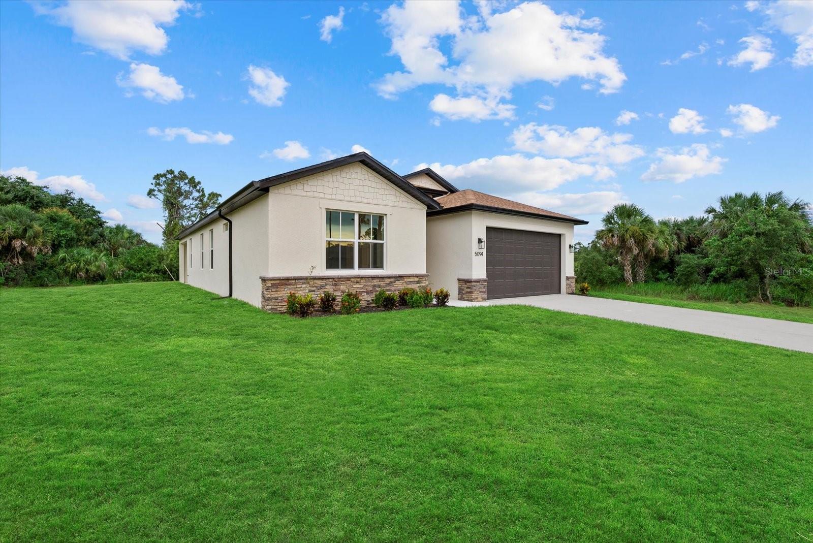 New Construction! Move-in Ready! This beautiful 4-bedroom, 3-bathroom home with a 2-car garage is ready for you to call home. Step inside and be greeted by the spacious great room with soaring 9'4'' ceilings and elegant 8' doors throughout. The modern kitchen INCLUDES a stainless-steel Samsung appliance package, beautiful quartz countertops, and an open layout perfect for entertaining. The Primary bedroom comes complete with a tray ceiling, dual walk-in closets, and a spa-like ensuite with double vanities. The fourth bedroom, located at the front of the house, offers privacy with its own ensuite bathroom, perfect for guests or extended family. This home is packed with high-end finishes, including hurricane-impact windows, tiled showers, stylish and durable flooring, irrigtion system, and a Ring doorbell. Enjoy Florida living year-round on the covered lanai, ideal for outdoor relaxation. Selling concessions are available to make your move even easier! No HOA fees, no CDD. Interior photos are from a another home with the same floorplan and finishes. Schedule your showing today!