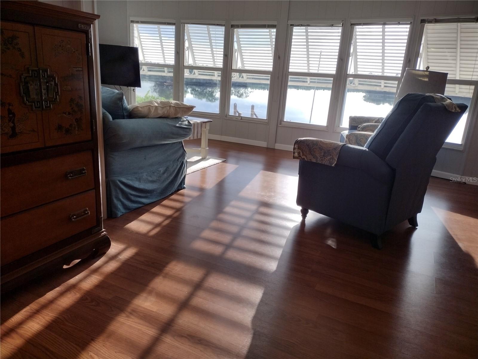 Waterfront property located on the Myakka River in the premier community of Lazy River Village. About 1500 sq ft manufactured home with spectacular sunset views. It includes two bedrooms, two baths, living room, dining area. Updated kitchen with with view of the river from the kitchen. Walk in closets with ceiling fans in all rooms. Private boat dock. Enjoy resort living with many activities and clubs. Fully equipped wood shop, along with a community pool, tennis and pickleball courts, workout center and other amenities. HOA dues include internet and cable TV, weekly garbage pickup, lawn cutting, upkeep of all amenities, pool, hot tub, fitness room, clubhouse, etc. This home is part of Lazy River Village, a 55 and over active community. Tons of activities to keep you busy. Never boring if that's your choice. The water view is very calming from your Lazy boy chair in the Living room.