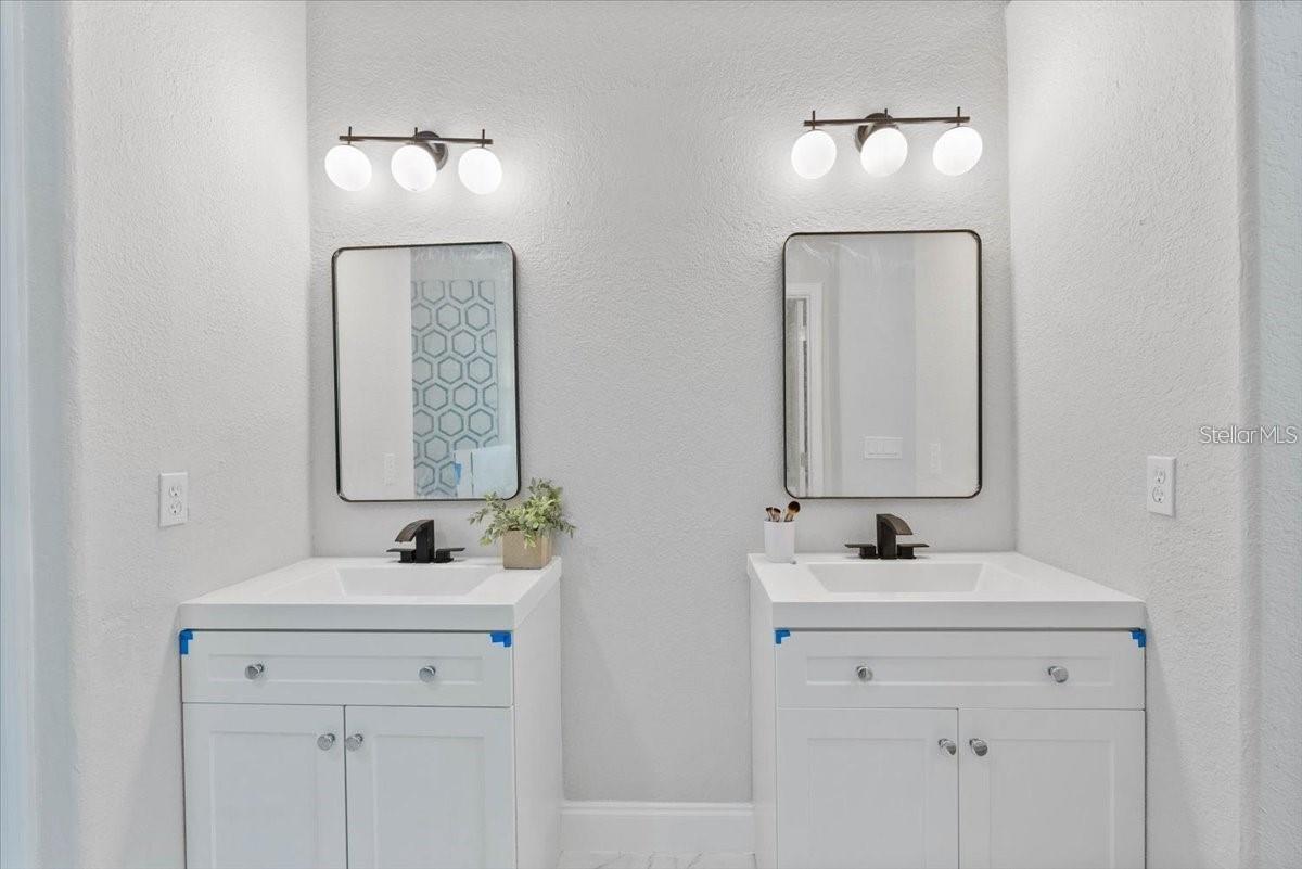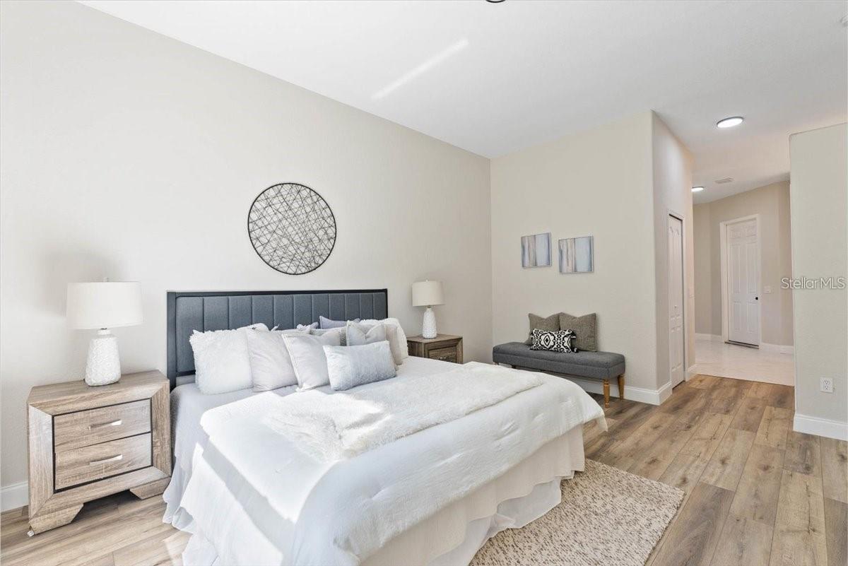 Located in the sought-after North Port area, this fully renovated 3-bedroom, 2-bathroom home is a standout. It features a new roof, A/C, garage doors, fresh paint inside and out, and new luxury vinyl flooring throughout. The stunning kitchen boasts a blue island with radiant quartz counter- tops, 26-inch shaker-style cabinets, and a beautiful glass backsplash. The spacious family and dining rooms are filled with natural light. The primary bedroom accommodates a king-size bed with ample space. The updated bathrooms feature mosaic-tiled showers, a freestanding clawfoot tub, and new mirrors, light fixtures, and vanities.