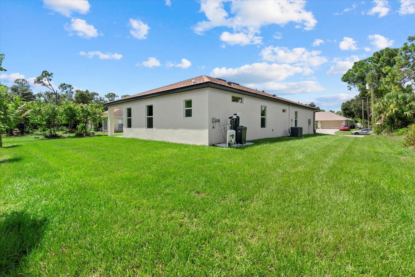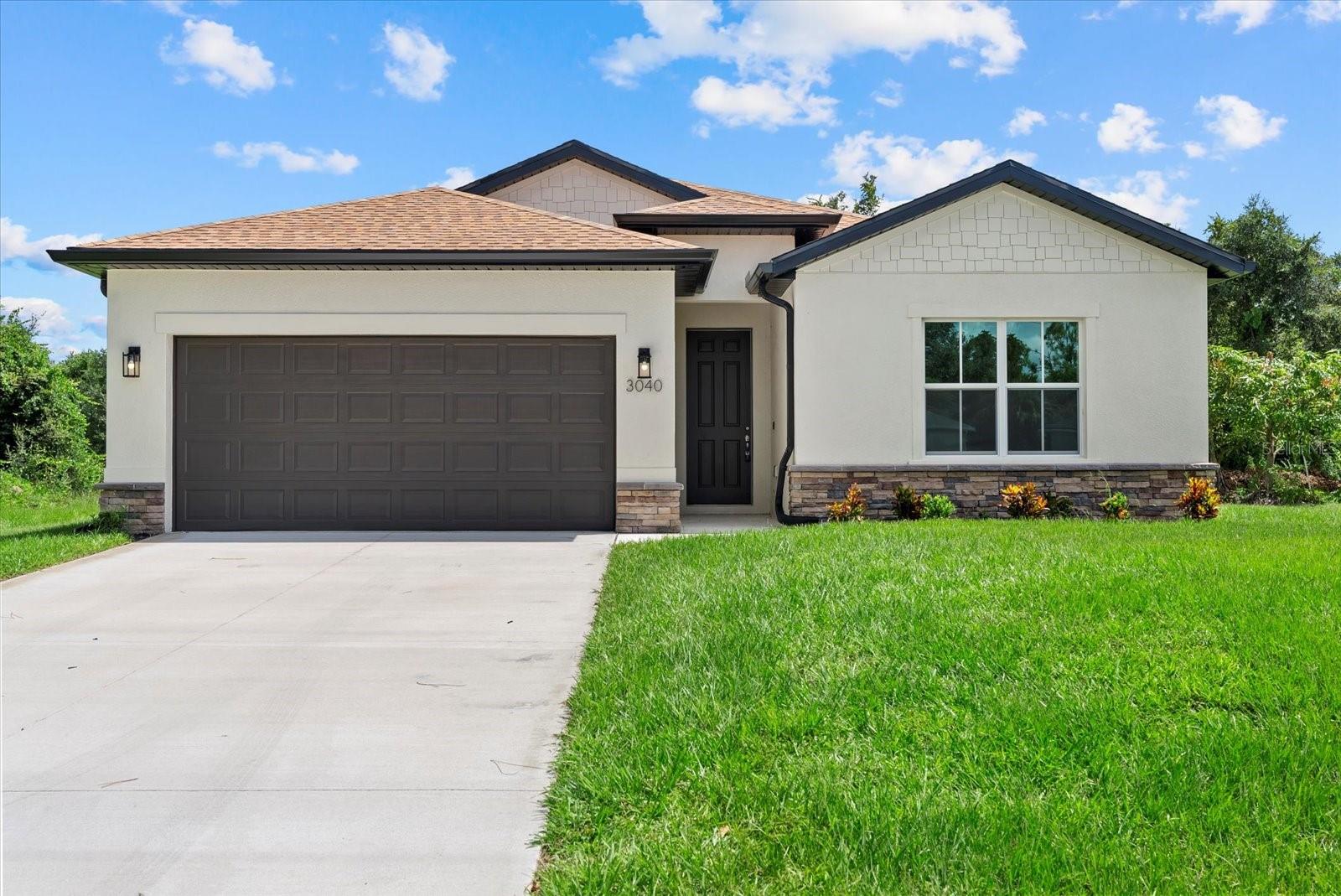 New Construction! Move-in Ready! Seller Concessions avaliable for closing costs or Interest Rate Buy-Down. This beautiful 4-bedroom, 3-bathroom home on a corner lot with a 2-car garage is ready for you to call home. Step inside and be greeted by the spacious great room with soaring 9'4'' ceilings and elegant 8' doors throughout. The modern kitchen INCLUDES a stainless-steel Samsung appliance package, beautiful quartz countertops, and an open layout perfect for entertaining. The Primary bedroom comes complete with a tray ceiling, dual walk-in closets, and a spa-like ensuite with double vanities. The fourth bedroom, located at the front of the house, offers privacy with its own ensuite bathroom, perfect for guests or extended family. This home is packed with high-end finishes, including hurricane-impact windows, tiled showers, stylish and durable flooring, irrigtion system, and a Ring doorbell. Enjoy Florida living year-round on the covered lanai, ideal for outdoor relaxation. Selling concessions are available to make your move even easier! No HOA fees, no CDD. Schedule your showing today!
