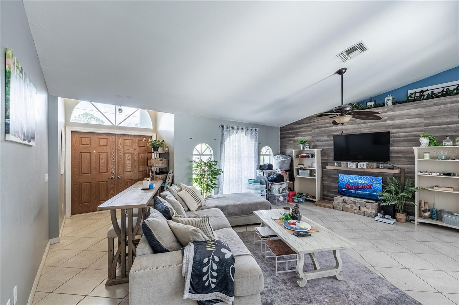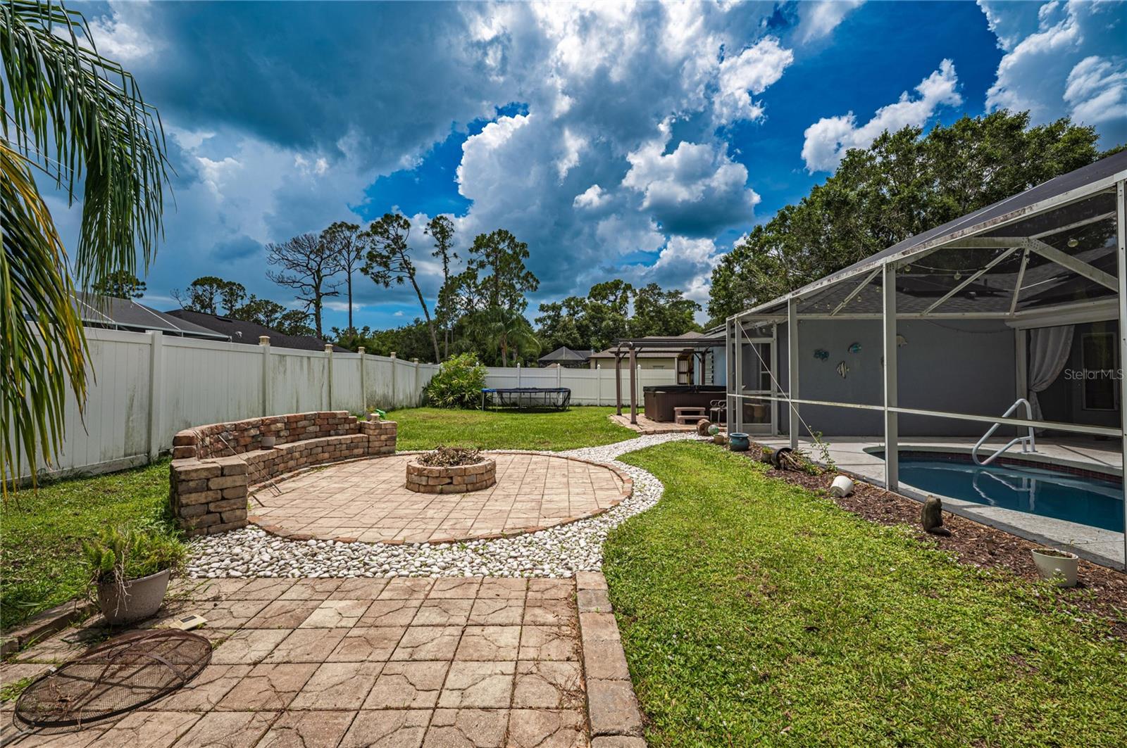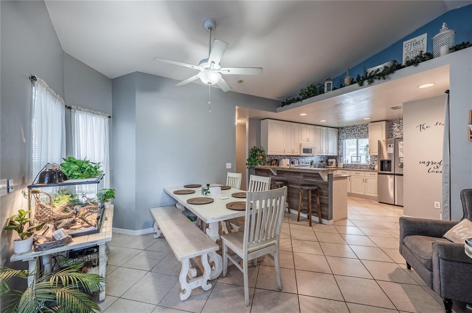 This beautifully maintained 3-bedroom, 2-bathroom pool home has the blend of comfort, style, and outdoor living. Located in a quiet North Port neighborhood this move-in ready home sits on a spacious lot with a beautiful pool and backyard—fully fenced and for relaxing or entertaining year-round. Step inside to an open-concept layout with vaulted ceilings, tile flooring throughout, and tons of natural light. The kitchen features solid wood cabinetry, ample counter space, and a breakfast bar that opens to the main living area. The split floor plan has a private primary suite with a walk-in closet and en-suite bath, while two additional bedrooms share a full bath on the opposite side of the home. Conveniently located near schools, parks, shopping, dining.