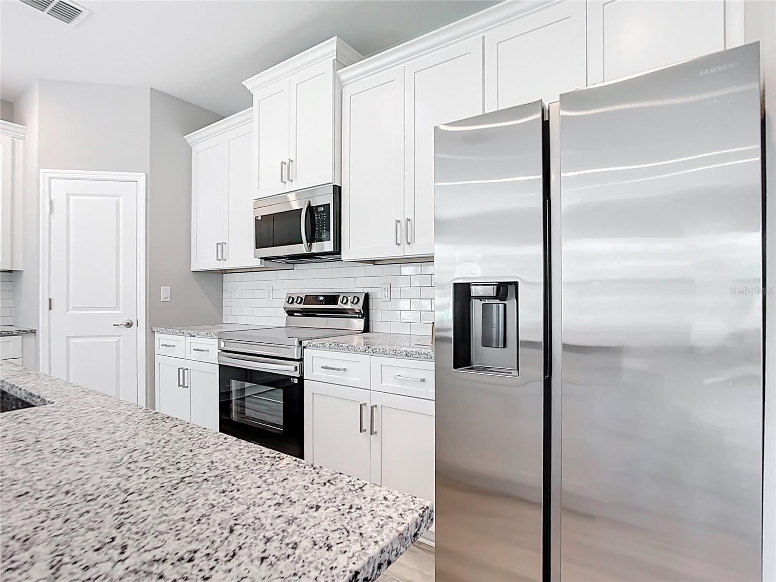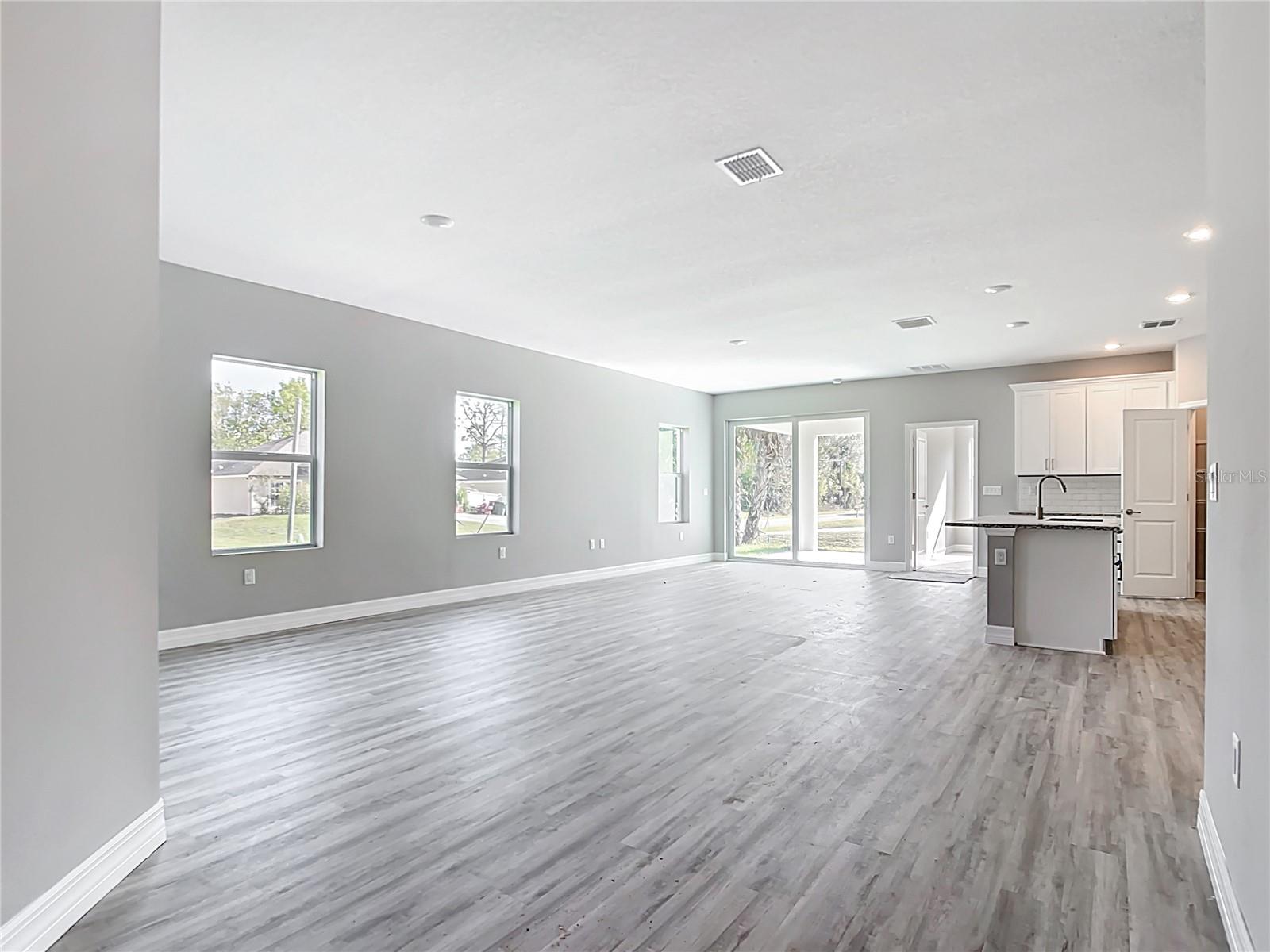 NEW CONSTRUCTION - BUILDER INCENTIVES AVAILABLE. Completed, move-in ready!This concrete block 4-bedroom 3-bathroom 2 car garage home boast a modern design with high ceilings and features an open spacious floorplan design. With an awesome gourmet-inspired kitchen that features white cabinets with a large center island and subway backsplash and upgrades that include Stainless-steel Samsung appliance package with washer and dryer. Water and scratch resistant luxury wood-vinyl flooring throughout the common areas. A spacious master bedroom with tray ceilings, two walk-in closets, a private bathroom with dual vanity area, and large open walk-in shower. Front bedroom with bathroom is perfect for a guest room, mother in-law suite, or office. Home also features indoor laundry room connecting the attached garage, double pane windows, and sliding glass door that lead out to the open lanai. This brand new home is a must see!