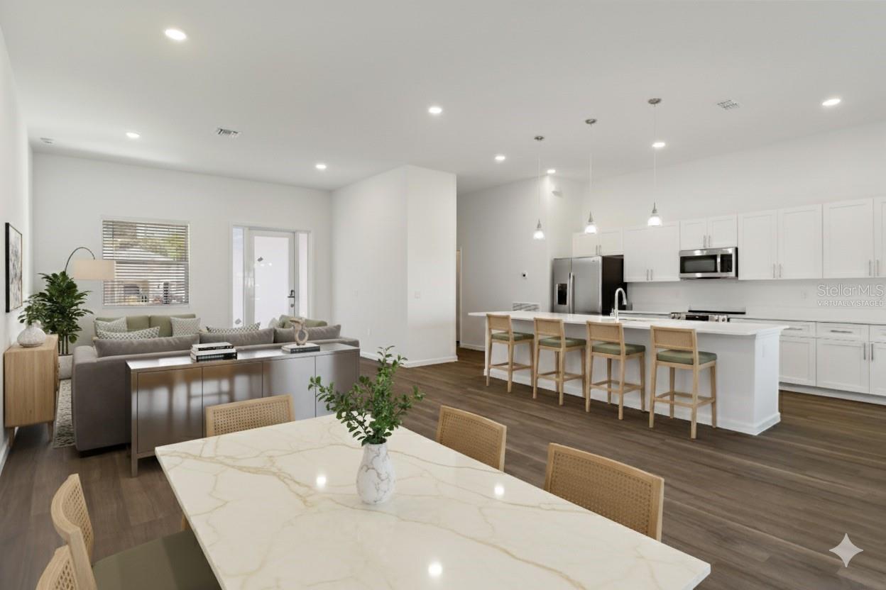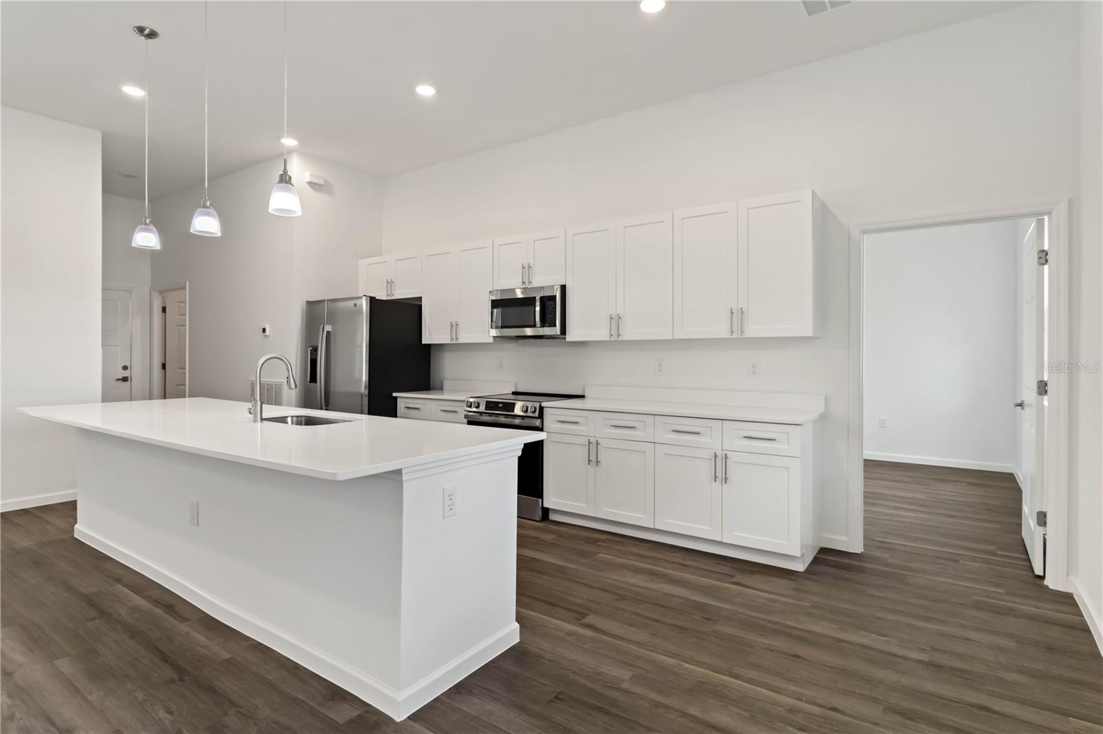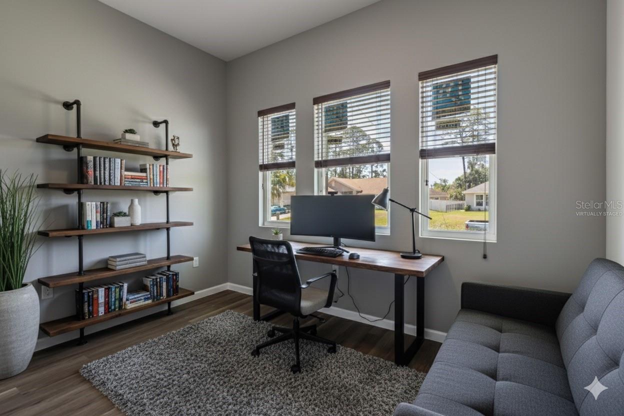 One or more photo(s) has been virtually staged. Step into your dream home in the vibrant heart of North Port, Florida! This brand-new construction features 3 generously sized bedrooms, 3 elegant bathrooms, and a dedicated home office—all nestled on nearly a quarter-acre lot with a beautiful newly installed fence. From the moment you walk through the door, you’ll notice the refined finishes throughout, including Luxury Vinyl Plank flooring, recessed lighting, and an abundance of natural light from well-placed windows. The open-concept layout flows effortlessly into a modern kitchen showcasing sleek shaker-style cabinets with soft-close hinges, high-end fixtures, and gorgeous Port White Quartz countertops—perfect for everyday living and entertaining alike. Designed for both comfort and efficiency, this home offers a serene, private setting with the benefit of well and septic, helping keep monthly utility costs in check. In the FULLY FENCED IN backyard, there’s plenty of space for outdoor living, a garden, or even a future pool. The builder includes a 2/10 Home Warranty for added peace of mind. Located in a rapidly growing area of North Port, you’ll be close to parks, shopping, dining, and top-rated schools—while still enjoying the quiet charm of a residential neighborhood. Stylish, functional, and full of Florida warmth, this home is move-in ready and waiting for you to make it your own.