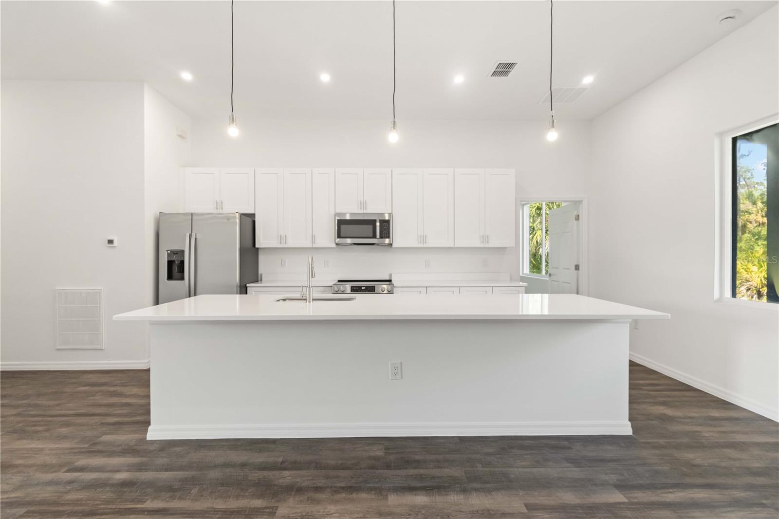 One or more photo(s) has been virtually staged. Welcome to your ideal Florida retreat in the thriving community of North Port! This newly built home offers a perfect blend of style, space, and modern comfort. Boasting 3 spacious bedrooms, 3 beautifully appointed bathrooms, and a separate home office, this residence sits on nearly a quarter-acre lot—providing the room and privacy you’ve been looking for. Step inside to discover refined finishes throughout, including luxury vinyl plank flooring, recessed lighting, and abundant natural light pouring in from thoughtfully placed windows. The open-concept living space seamlessly connects to a chef-inspired kitchen, complete with soft-close shaker cabinets, premium fixtures, and eye-catching Port White Quartz countertops—ideal for both entertaining and everyday meals. Energy-efficient and cost-conscious, the home is equipped with well and septic systems, helping to keep monthly expenses manageable. The outdoor space offers endless possibilities: envision a lush garden, custom patio, or future pool to make the most of Florida’s sunshine. Additional perks include up to $7,500 in closing cost assistance for qualified buyers through an approved lender, and peace of mind with a 2/10 Home Warranty from the builder. Nestled in a fast-growing area near top-rated schools, parks, shops, and restaurants, this home combines the convenience of city amenities with the tranquility of a quiet residential neighborhood. Thoughtfully designed and move-in ready, this North Port gem is waiting for you to call it home.