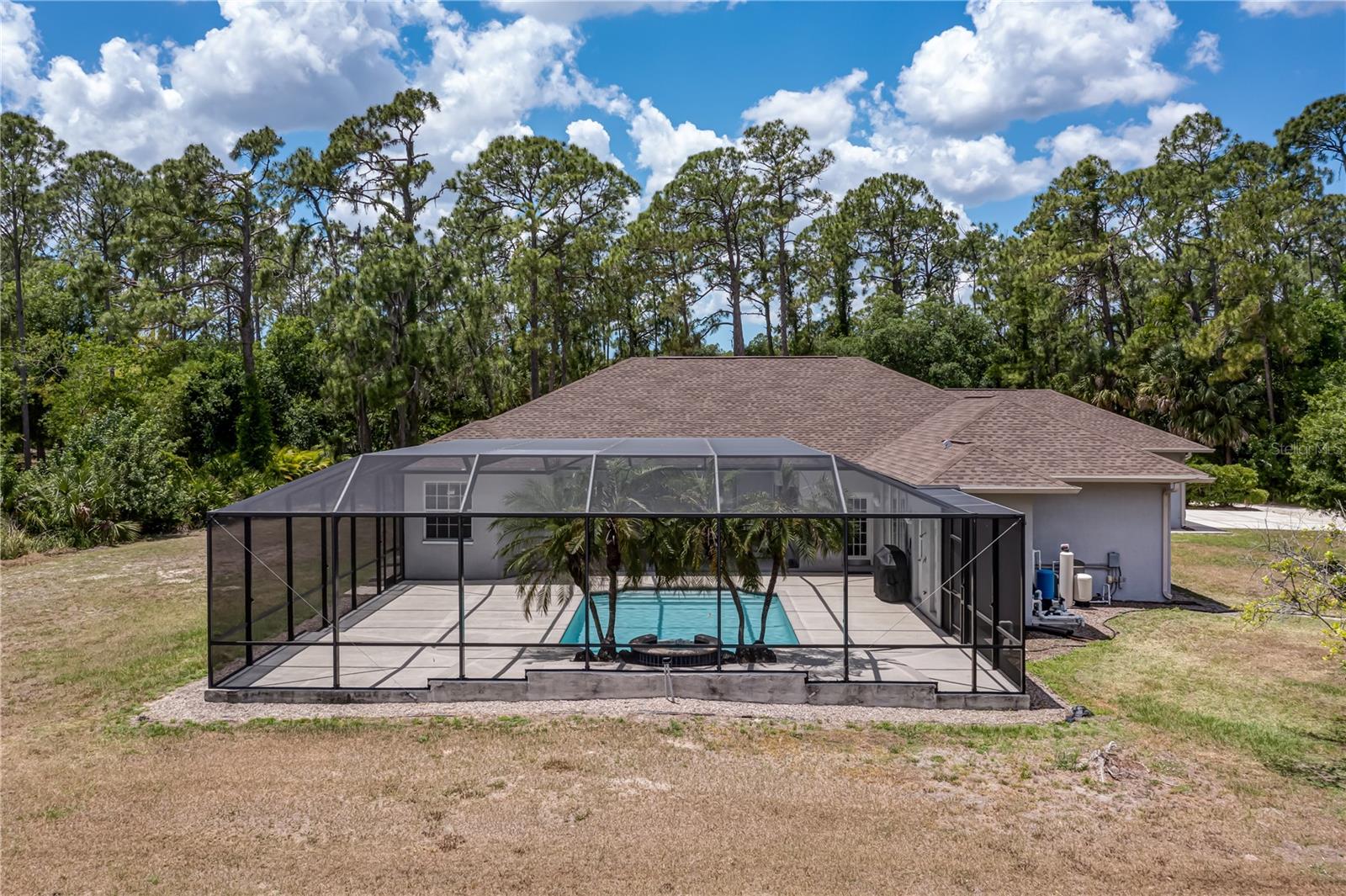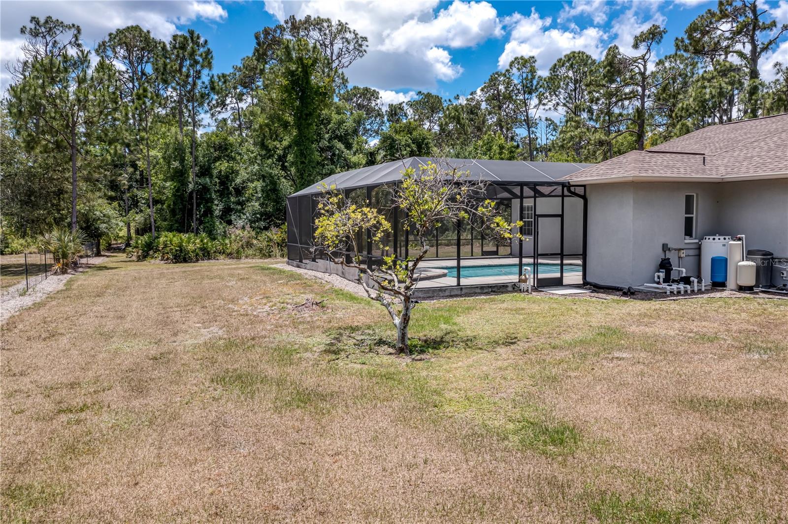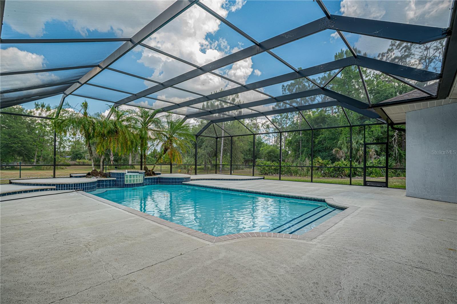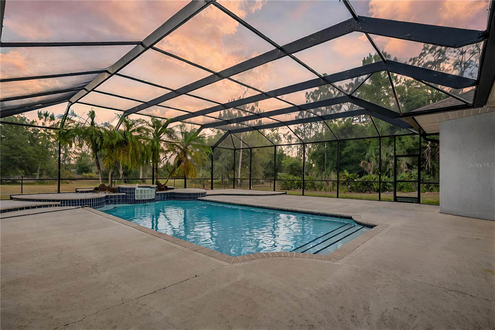 One or more photo(s) has been virtually staged. Envision Luxurious Estate Living in North Port Estates! Unlock the door to elegant living with this sprawling 4-bedroom, 2.5-bath estate, set on over 3 gated acres of serene landscapes. The grandeur begins at the double door entry, framing a stunning view of the expansive resort-style pool complete with a cascading waterfall and newly screened enclosure. NEW ROOF 2023! As you step inside, the opulent details capture your eye, from the 14' double tray ceilings with crown molding in the living room to the gleaming tiled floors stretching throughout. The updated kitchen is a chef’s paradise, featuring custom cabinetry with sparkling jeweled pulls, a grand island, and granite countertops. Top-of-the-line GE appliances and a stylish farmhouse sink add both function and flair. The breakfast nook, with its unique aquarium window, is a perfect spot for morning coffee. The family room, seamlessly connected to the kitchen, provides a relaxing retreat with direct access to the pool. The office/den, conveniently linked to the master suite, offers French doors and elegant chair rail details. The master suite itself is a private haven with a tray ceiling, efficient mini split A/C, and dual walk-in closets, leading to a luxurious bath with a Roman shower and garden tub. Entertainment is effortless in the versatile game room/man cave, ideal for hosting or relaxing. Additional features enhancing this home’s allure include hideaway ceiling fans, dazzling crystal chandeliers, and an outdoor shower for ultimate convenience. The estate is not just about the indoors; the outdoor area is divided by a livestock fence, featuring a tranquil pond and vast spaces ideal for additional outbuildings or horse stalls. With a three-car garage equipped with electric retractable screens and ample storage, this home is as practical as it is stunning. Embrace the possibility of this majestic estate, where every detail adds to an atmosphere of unmatched luxury and comfort.