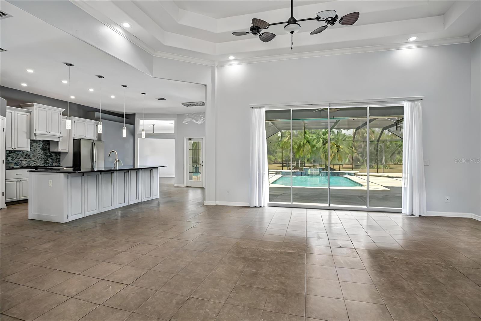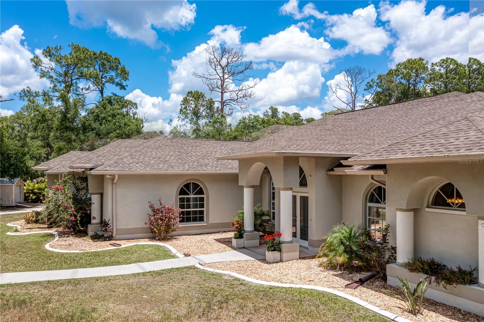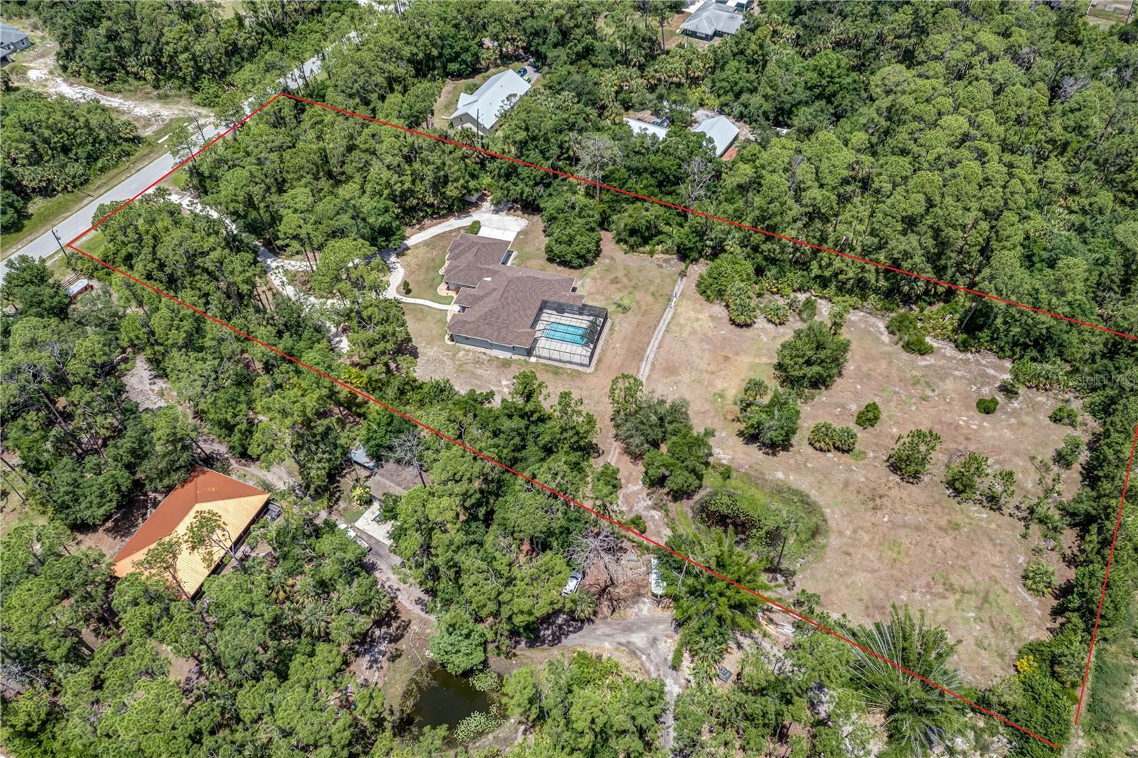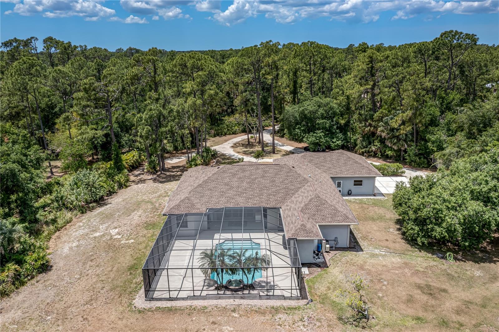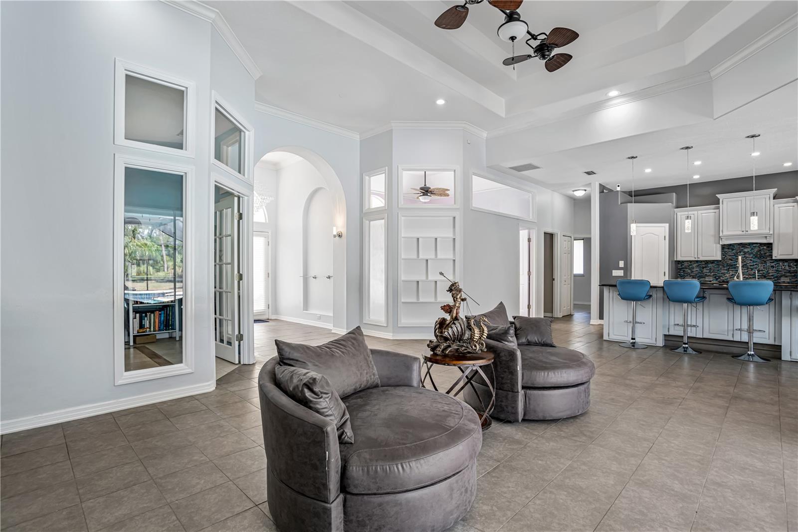 One or more photo(s) has been virtually staged. Envision Luxurious Estate Living in North Port Estates! Unlock the door to elegant living with this sprawling 4-bedroom, 2.5-bath estate, set on over 3 gated acres of serene landscapes. The grandeur begins at the double door entry, framing a stunning view of the expansive resort-style pool complete with a cascading waterfall and newly screened enclosure. NEW ROOF 2023! As you step inside, the opulent details capture your eye, from the 14' double tray ceilings with crown molding in the living room to the gleaming tiled floors stretching throughout. The updated kitchen is a chef’s paradise, featuring custom cabinetry with sparkling jeweled pulls, a grand island, and granite countertops. Top-of-the-line GE appliances and a stylish farmhouse sink add both function and flair. The breakfast nook, with its unique aquarium window, is a perfect spot for morning coffee. The family room, seamlessly connected to the kitchen, provides a relaxing retreat with direct access to the pool. The office/den, conveniently linked to the master suite, offers French doors and elegant chair rail details. The master suite itself is a private haven with a tray ceiling, efficient mini split A/C, and dual walk-in closets, leading to a luxurious bath with a Roman shower and garden tub. Entertainment is effortless in the versatile game room/man cave, ideal for hosting or relaxing. Additional features enhancing this home’s allure include hideaway ceiling fans, dazzling crystal chandeliers, and an outdoor shower for ultimate convenience. The estate is not just about the indoors; the outdoor area is divided by a livestock fence, featuring a tranquil pond and vast spaces ideal for additional outbuildings or horse stalls. With a three-car garage equipped with electric retractable screens and ample storage, this home is as practical as it is stunning. Embrace the possibility of this majestic estate, where every detail adds to an atmosphere of unmatched luxury and comfort.