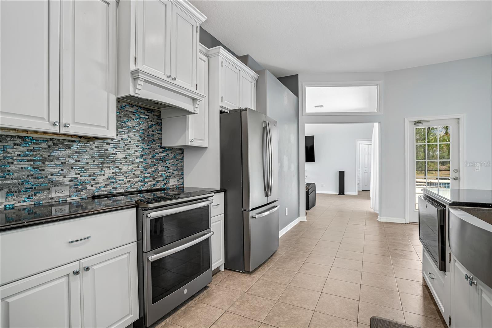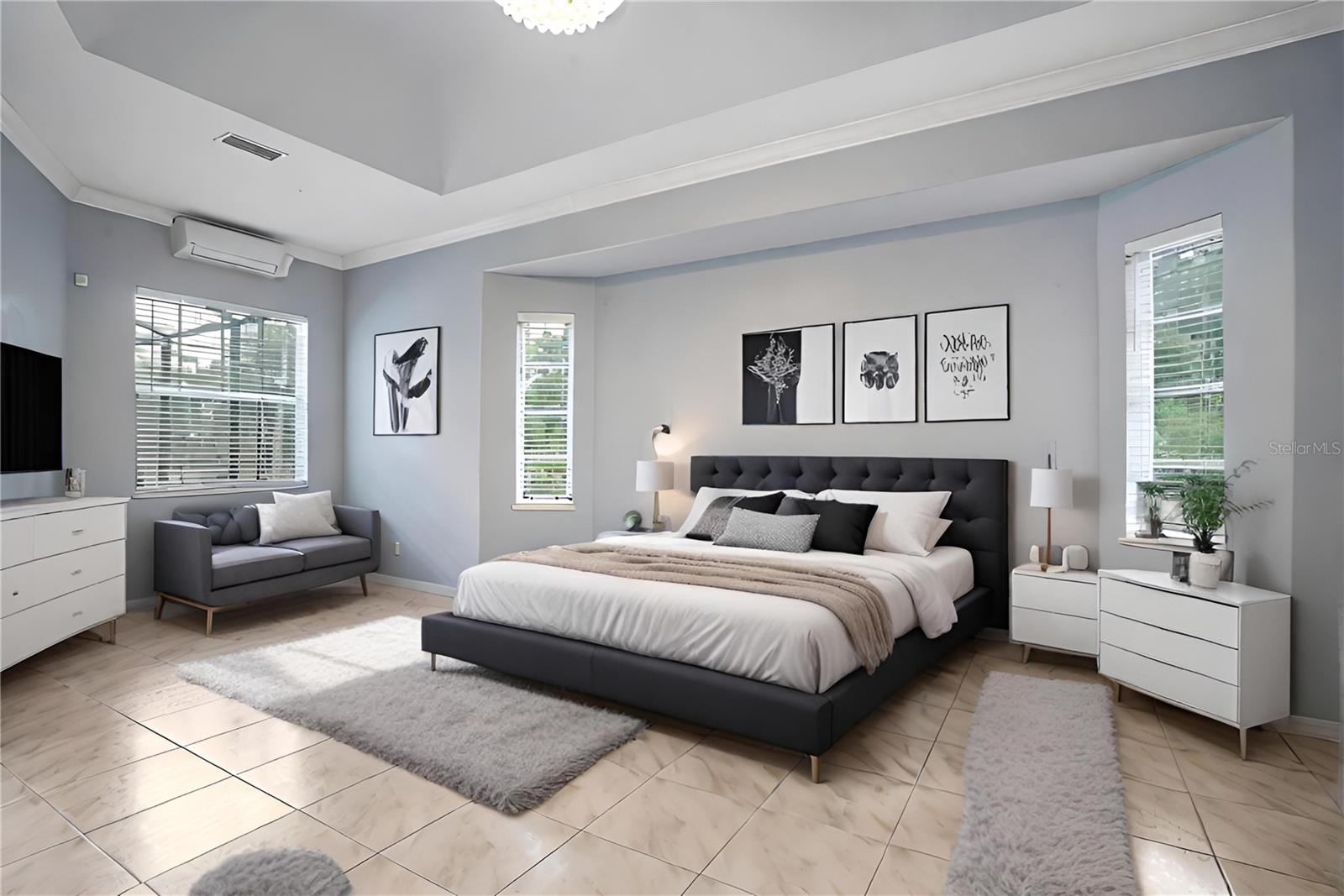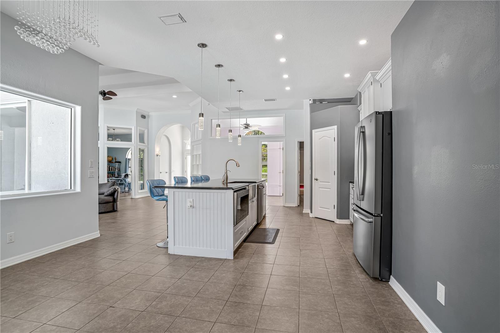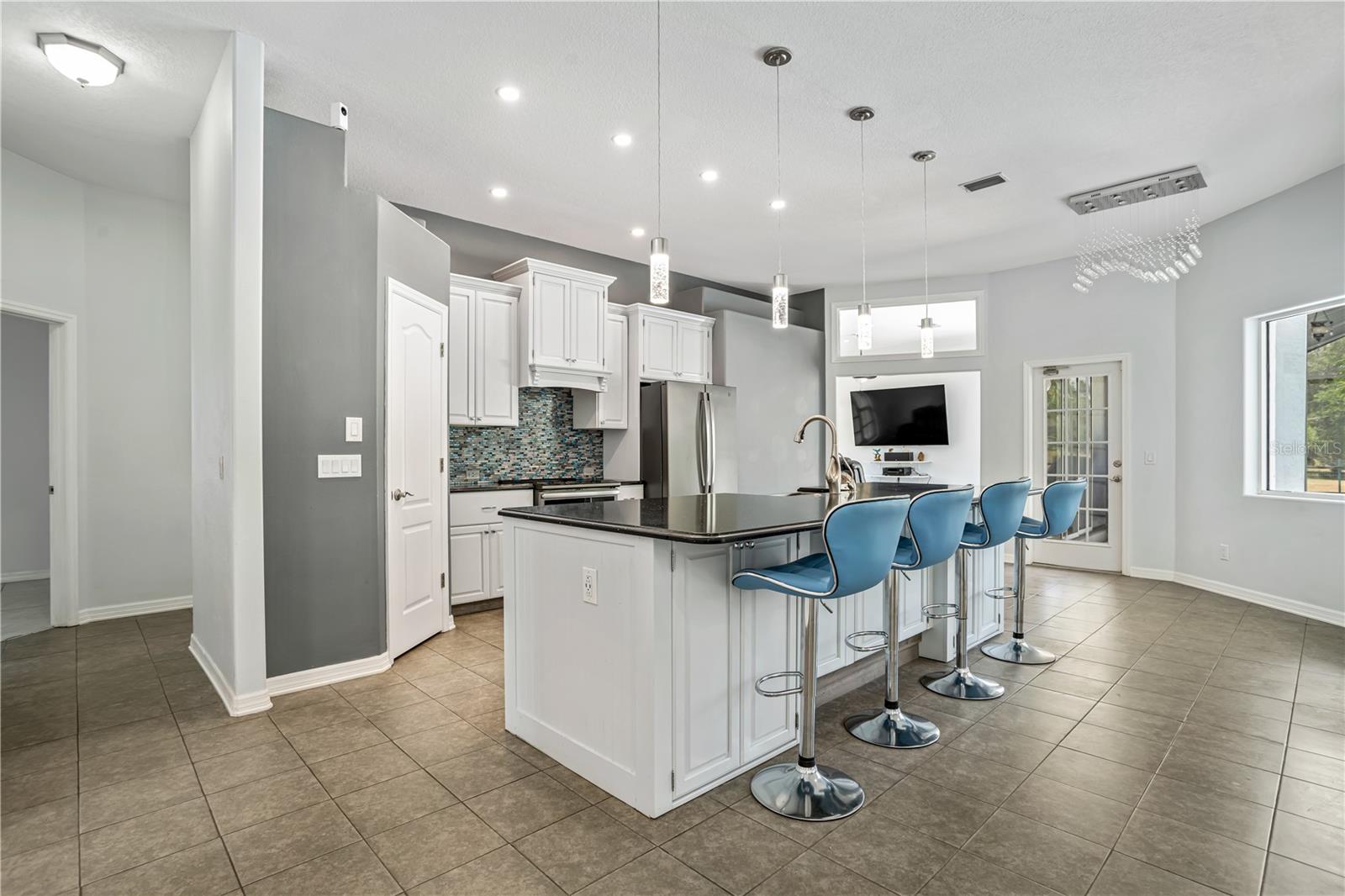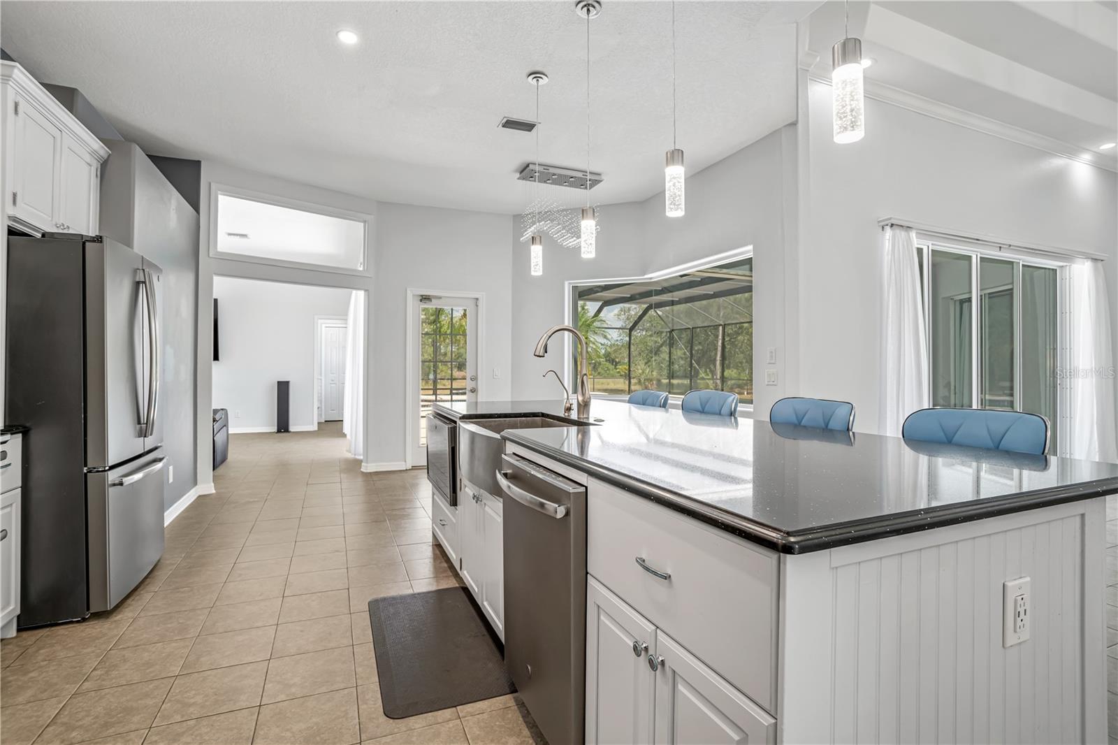 One or more photo(s) has been virtually staged. Envision Luxurious Estate Living in North Port Estates! Unlock the door to elegant living with this sprawling 4-bedroom, 2.5-bath estate, set on over 3 gated acres of serene landscapes. The grandeur begins at the double door entry, framing a stunning view of the expansive resort-style pool complete with a cascading waterfall and newly screened enclosure. NEW ROOF 2023! As you step inside, the opulent details capture your eye, from the 14' double tray ceilings with crown molding in the living room to the gleaming tiled floors stretching throughout. The updated kitchen is a chef’s paradise, featuring custom cabinetry with sparkling jeweled pulls, a grand island, and granite countertops. Top-of-the-line GE appliances and a stylish farmhouse sink add both function and flair. The breakfast nook, with its unique aquarium window, is a perfect spot for morning coffee. The family room, seamlessly connected to the kitchen, provides a relaxing retreat with direct access to the pool. The office/den, conveniently linked to the master suite, offers French doors and elegant chair rail details. The master suite itself is a private haven with a tray ceiling, efficient mini split A/C, and dual walk-in closets, leading to a luxurious bath with a Roman shower and garden tub. Entertainment is effortless in the versatile game room/man cave, ideal for hosting or relaxing. Additional features enhancing this home’s allure include hideaway ceiling fans, dazzling crystal chandeliers, and an outdoor shower for ultimate convenience. The estate is not just about the indoors; the outdoor area is divided by a livestock fence, featuring a tranquil pond and vast spaces ideal for additional outbuildings or horse stalls. With a three-car garage equipped with electric retractable screens and ample storage, this home is as practical as it is stunning. Embrace the possibility of this majestic estate, where every detail adds to an atmosphere of unmatched luxury and comfort.