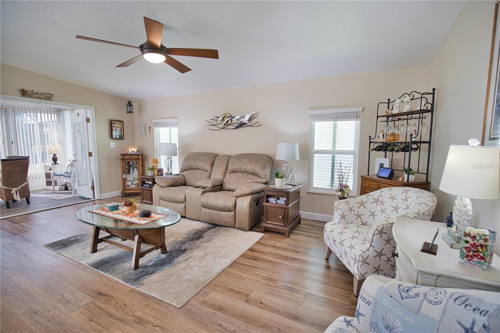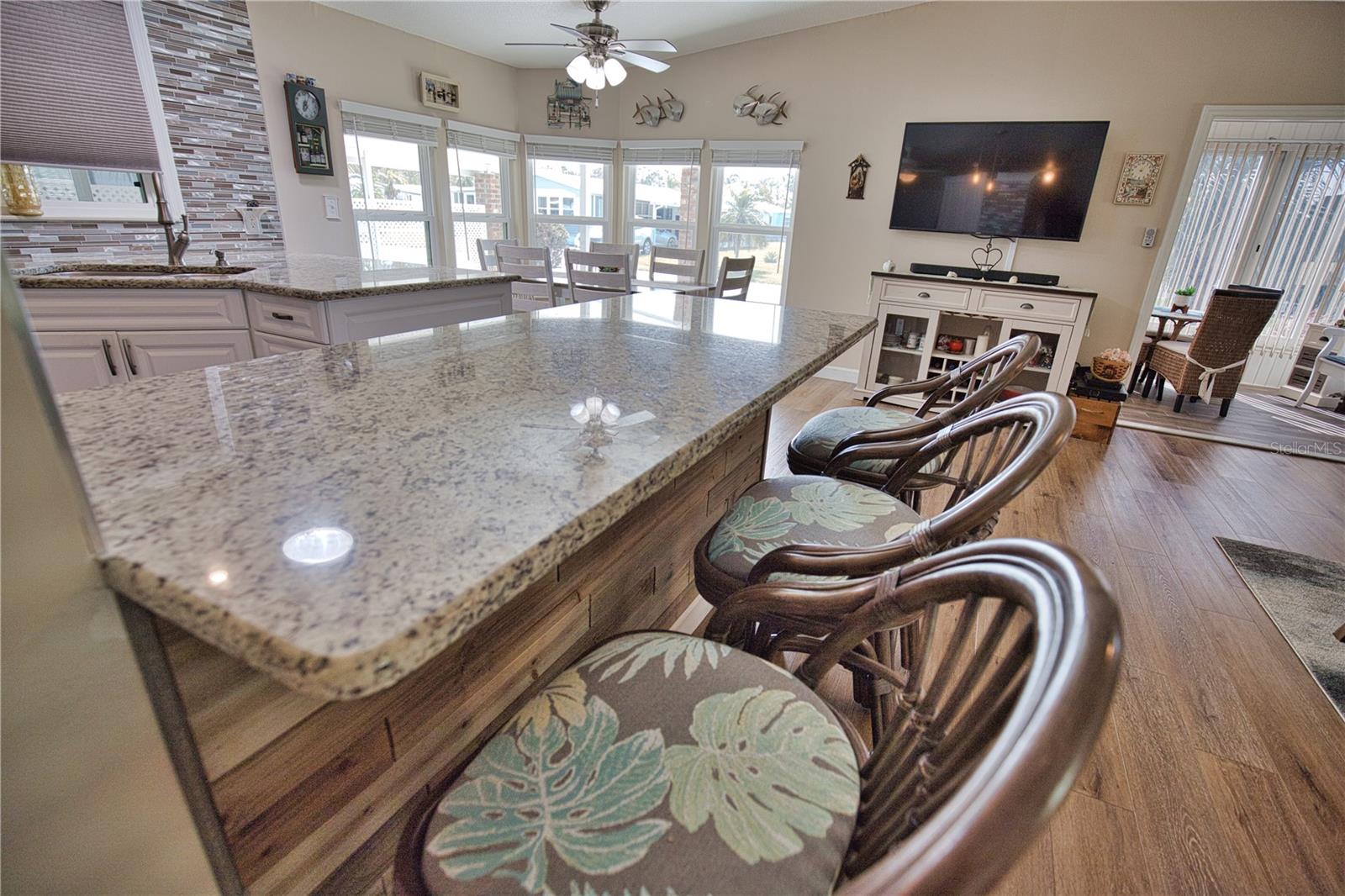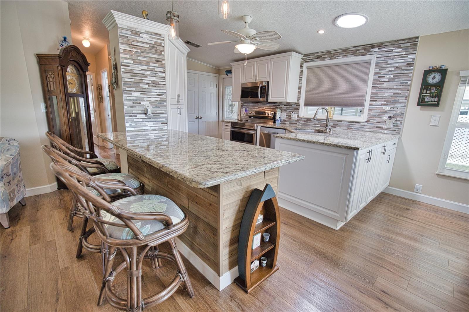 Grab your piece of paradise in this vibrant 55+ community. This must-see home has been completely renovated and is loaded with surprises and upgrades! The kitchen has granite countertops including on the island, a sizable pantry, newer stove, refrigerator, microwave, dishwasher, and disposal. The dining room can also be used as an office with a custom built-in desk and cabinets. There is crown molding and luxury vinyl throughout. The primary and guest rooms are substantial in size with completely updated bathrooms featuring granite countertops and bowl sinks. You’ll love the convenience of having the washer/dryer located inside the home. There is also lots of storage provided in the home with a linen closet in the hallway and an oversized storage closet in the primary bathroom. Outside has even more storage with an oversized shed. Roof 2018, A/C 2022, newer windows and hurricane shutters. Don’t miss out on seeing this one-of-a-kind home! La Casa boasts 974 homes nestled among a variety of native trees with spacious common grounds surrounding our eight lakes. Our lots average a generous 60' by 80'. The ultimate lifestyle on Florida’s Gulf Coast is located between Sarasota and Fort Myers and is a boater's dream with access to the Gulf of Mexico. It is convenient for shopping, sightseeing, golfing, fishing, and boating, as well as all the culture and elegance the Southwest Florida area is noted for. Residents and visitors enjoy the warmth of Southwest Florida winters in a relaxed and unhurried environment far removed from the hustle of Florida’s east coast. You’ll be surrounded by mature lush landscaping which demonstrates the utmost level of care our property receives from residents and management. La Casa may have the best pools in the area. Our crown jewel is an extremely large, 40 X 60-foot swimming pool that is kept at a perfect 87 degrees. Our smaller 20 x 40 pool is quietly nestled between the clubhouse and the Activity Building. Both pools have adjacent hot tubs which are ideal for soaking muscles that are tired from golfing or tennis. Wireless Internet (Wi-Fi) is available at the Clubhouse, Activity Building, and Recreation Hall area where these pools & spas are located, so you can catch some rays while you catch up on your email! Sound enticing? La Casa is a friendly, family community. You will be away from the hustle and bustle except when you want to be part of it. Come for a visit to this self-contained oasis and see for yourself why La Casa is the ultimate destination for both snowbirds and year-round residents!